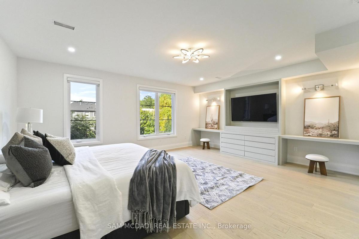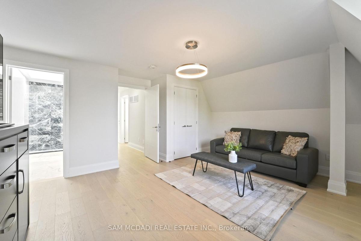 Offering over 4,400 sq. ft. of modern living for just under $500 per sq. ft.! Seldom found and rarely offered, 11B Maple Avenue N sits on a deep 149-foot lot in one of Mississauga's most prestigious lakeside communities. This expansive semi offers nearly 3,500 sq. ft. above grade and makes a striking impression from the moment you enter, with a private elevator providing access to all floors. You won't find another home like this in Port Credit.The sun-drenched main floor showcases soaring tray ceilings, wide-plank light oak hardwood floors, and expansive windows that fill the space with natural light. A stunning marble fireplace anchors the living room, setting the tone for both cozy nights in and refined entertaining. The charismatic kitchen is effortlessly functional and designed for connection. Enjoy a large quartz island, high-end appliances, and seamless flow to the dining area. Oversized glass doors lead to a private, landscaped backyard with a wood deck and gas BBQ hookup, perfect for alfresco dining. Above, the primary suite is a true retreat with dual walk-in closets, a spa-like ensuite, and a skylit hallway. Each additional bedroom includes its own walk-in closet and ensuite, ideal for family and guests. The third level adds flexible living space with two more bedrooms and a bright home office. The fully finished lower level features oversized windows, a 3-piece bath, a Finnleo sauna, and rough-ins for a second kitchen and laundry, ideal for a media lounge, home gym, or future rental income suite. Additional highlights include a monitored smart home system, power blinds, EV-ready epoxy garage, and premium finishes throughout. This one-of-a-kind home is superbly located just steps from Port Credit's vibrant waterfront, boutique shopping, parks, dining, and effortless commuting via GO Transit or the QEW.