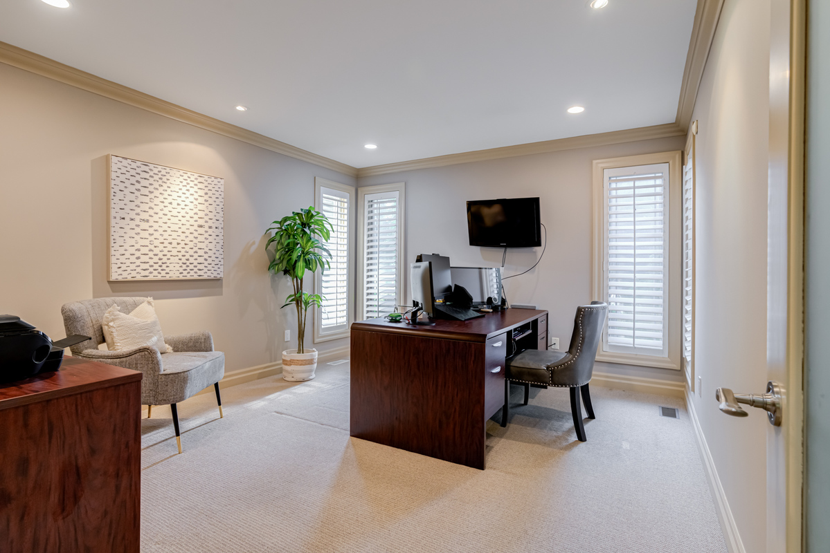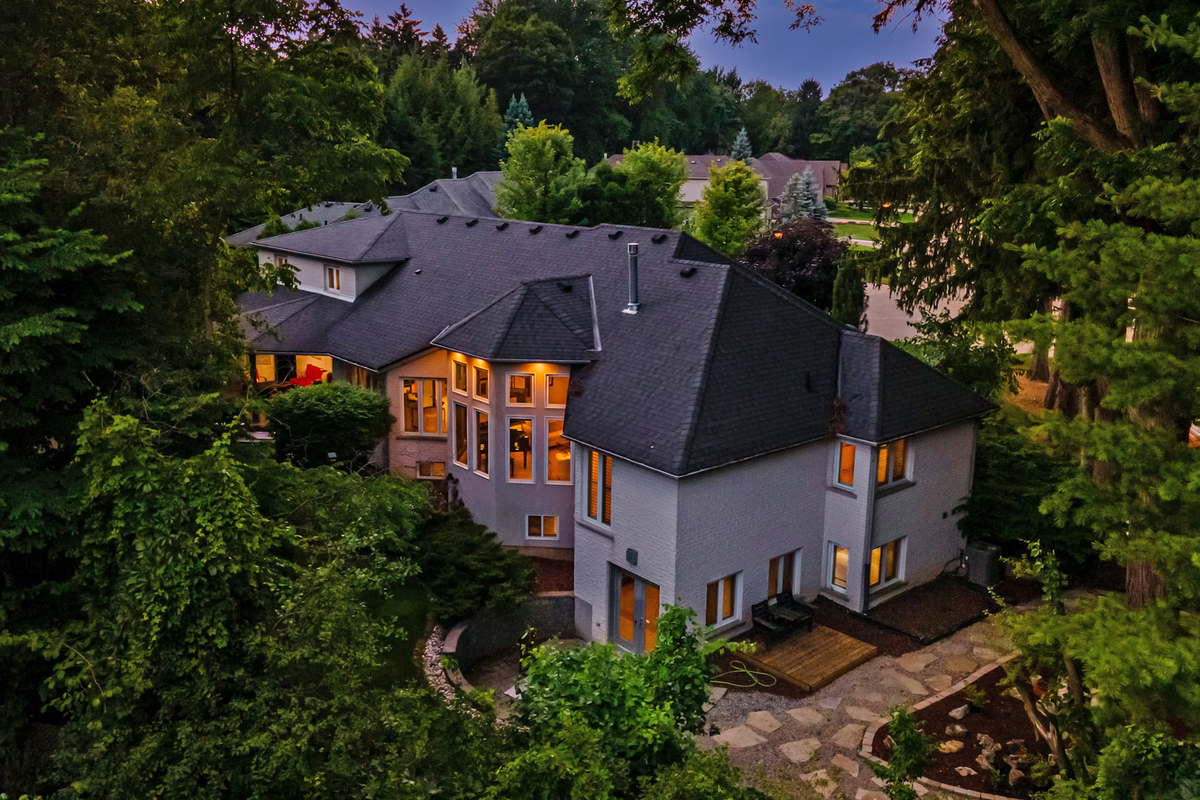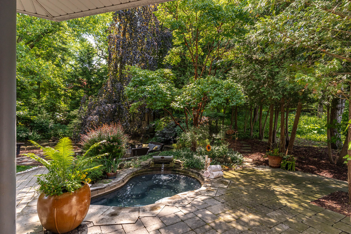 Located on a quiet court in Ancaster's prestigious Oakhill neighbourhood, 34 Harrington Place is a one-of-a-kind bungaloft designed for elegant living and unforgettable entertaining. Set on a pie-shaped, nearly half-acre lot with an impressive 217 ft across the rear, this custom-built Atherton home is surrounded by estate properties and award-winning Trillium gardens that elevate the curb appeal and outdoor experience. Boasting almost 5,000 sqft of impeccably finished living space, this home offers 3+1 bedrooms, 4 full baths, and a layout that perfectly blends everyday comfort with timeless sophistication. The main floor features a gourmet eat-in kitchen with custom cabinetry, cathedral ceiling, and access to a covered porch, flowing into a striking 12-ft great room with gas fireplace and floor-to-ceiling windows overlooking the oasis backyard. A formal dining room provides the ideal setting for hosting family gatherings and elegant dinner parties. The luxurious main-floor primary suite includes a cozy gas fireplace, an oversized walk-in dressing room, and a 5-pc spa-inspired ensuite. Also on the main level: a large private office, a full laundry room, and a stylish guest bath with direct outdoor access-perfect for rinsing off after a dip in the custom-designed hot and cold soaker pool spa or post-garden clean-up. Upstairs, two well-appointed bedrooms, a full bath, and a versatile loft area offer space for teens, guests, or a second home office. The bright walk-out basement features a 3-sided gas fireplace, spacious recreation room, kitchenette/bar, 4th bedroom, full spa bath, gym area, and abundant storage-ideal for in-laws or extended family. The backyard is a showstopper: private, lush, and tailored for gatherings large or small. Multiple seating and dining areas, a covered porch, and the signature pool spa create an outdoor sanctuary you'll enjoy in every season. This is more than a home-it's a statement of lifestyle in one of Ancaster's most exclusive enclaves.