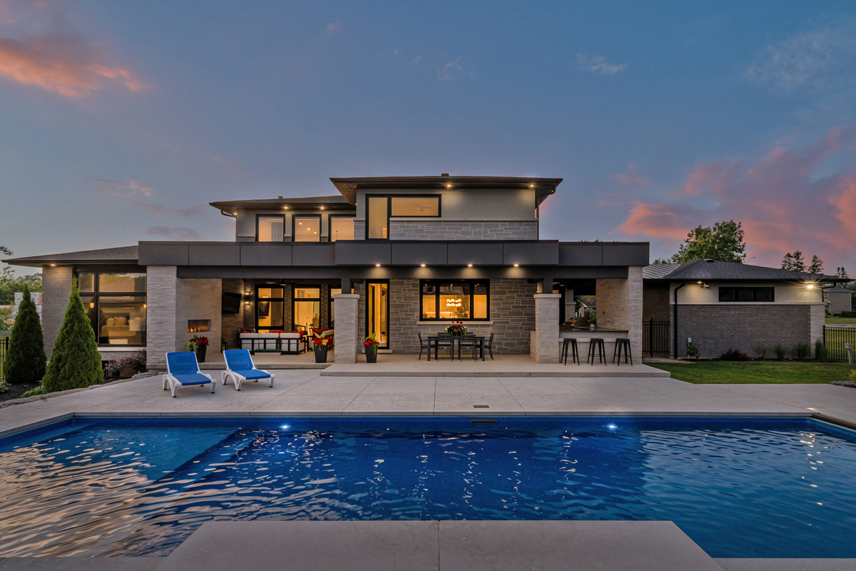 Discover unparalleled luxury in this custom-built modern masterpiece on a sprawling 1.6-acre estate in one of Flamborough's most exclusive neighbourhoods. Enjoy the tranquility of a private country retreat just minutes from downtown Dundas and a short drive to Ancaster, Burlington, and McMaster. This stunning home offers over 6,000 sqft of exquisitely designed living space with 4+1 bedrooms and 7 bathrooms. From the striking architecture and custom millwork to the warm ambiance created by designer fixtures, soaring ceilings, 4-foot porcelain tiles, and *-inch engineered hardwood, every detail will impress. The dramatic 19-foot great room features floor-to-ceiling black frame windows with automated blinds and a sleek gas fireplace wrapped in 10-foot porcelain slabs. The chef's kitchen is a showstopper, equipped with top-tier appliances, quartz countertops, a waterfall island, built-in espresso bar, and a hidden walk-in pantry for a clean, streamlined look. The main-floor primary suite offers a spa-like retreat with a five-piece ensuite including heated floors, glass shower, freestanding tub, double vanity, and an oversized walk-in dressing room with custom organizers. Upstairs, three bedrooms each have unique ensuite baths and 9-foot ceilings, ensuring privacy and comfort. The finished lower level expands your living space with a full secondary kitchen, recreation room, gym or guest bedroom, full bathroom, and a soundproof home theatre-ideal for entertaining or multi-generational living. Car enthusiasts will value the 5-car garages with a car lift, alarm system, and heated bay for year-round comfort. Outside, relax in your resort-style oasis with a heated saltwater pool, outdoor family room & kitchen, and full bathroom. A custom garage-style shed and pool house enhance the property's sleek design. Additional features include a whole-home 20KW generator, Control4 smart home automation, and electric car rough-in. This estate is more than a home-it's a lifestyle!