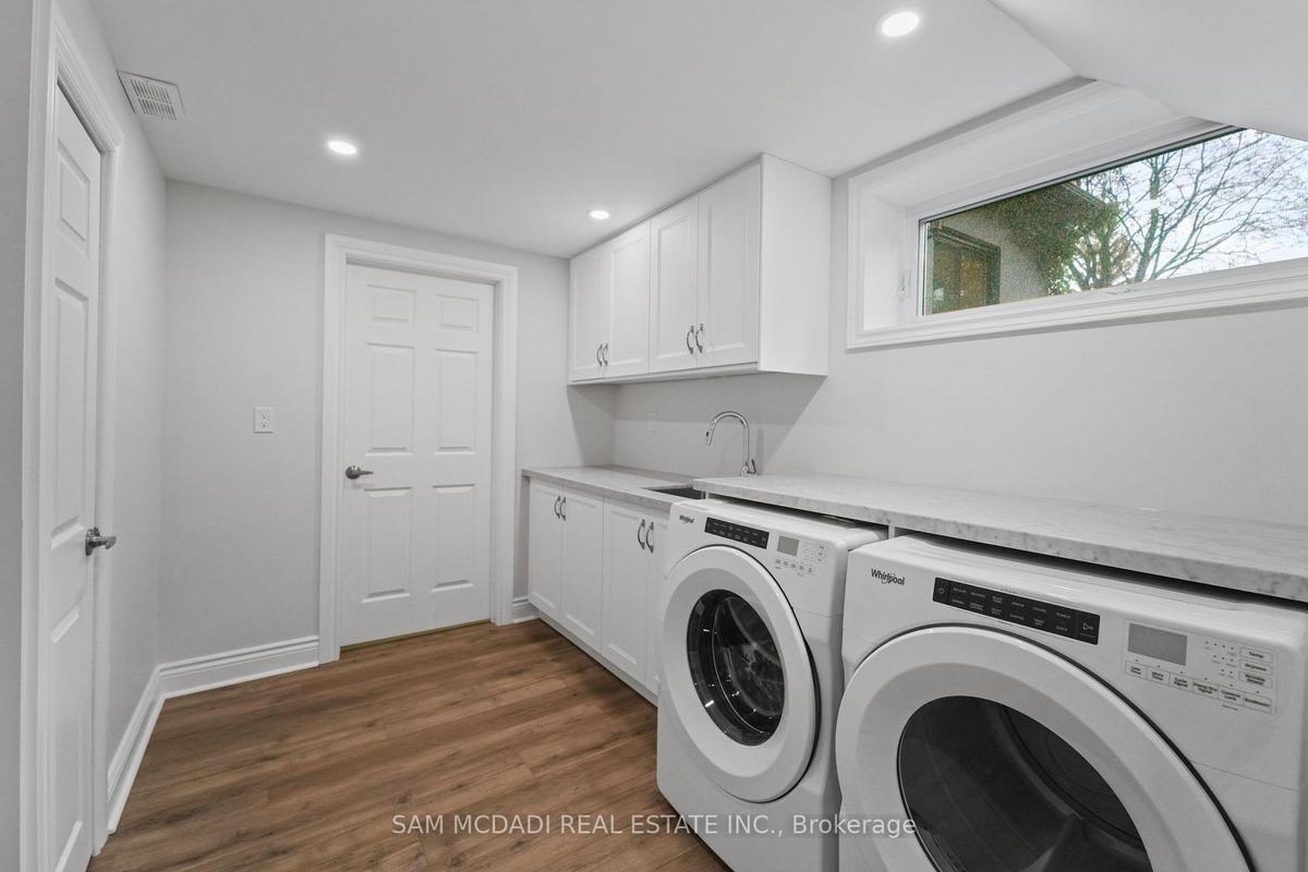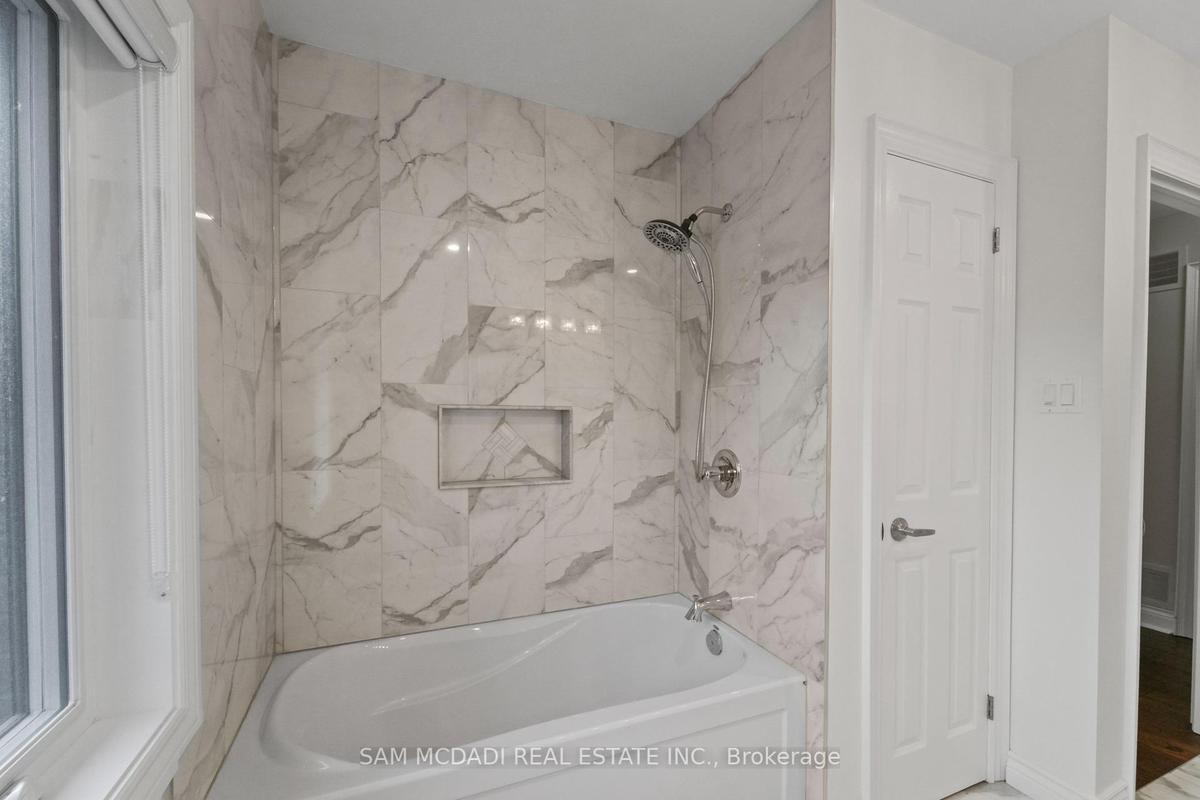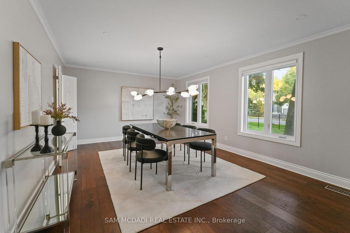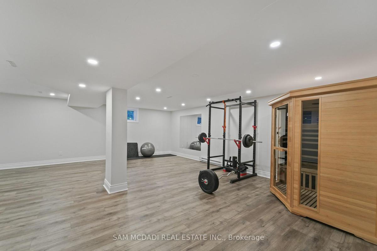 Rare offering of a home to lease with an electronic gate providing enhanced privacy and security! This completely redesigned family home in desirable Rattray Marsh neighbourhood known for its iconic scenery, well established streets and access to Lake Ontario! Inside you'll find beautiful designer finishes with prodigious principal rooms offering new wide plank hardwood floors, expansive windows and exceptional millwork throughout. The white bespoke kitchen with breakfast area offers ample storage space and features quartz countertops, large peninsula island, stainless steel appliances and provides direct access to the spacious dining room! Accompanying this level is the elegant living room with quartz fireplace, the office featuring built-in cabinetry and the sunken family room elevated by its dark and dramatic exposed ceiling beams, eye-catching chandelier, floor-to-ceiling stone fireplace and exceptional decorative wood paneling as well as a walk-out to the landscaped backyard. The second level hosts the romantic primary with built-in cabinetry, large walk-in closet and stunning 5-piece ensuite. Down the hall are 3 more bedrooms with their own captivating design details and a shared 5-piece bath. The finished basement features a large rec area with luxury vinyl floors, a 3-piece bath, a laundry room with ample counter and storage space, a 5th bedroom and an infrared sauna for the ultimate at-home spa experience. The stunning backyard completes this home with an inground pool, stone patio and green space!