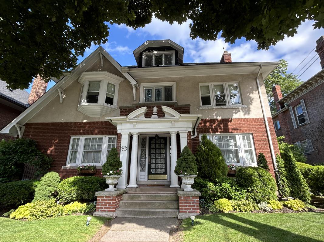 Circa 1922, this stately 2.5-storey is situated on a mature 46' x 85.33' property in the heart of the historic Durand neighbourhood, showcasing classic curb appeal with a front walkway leading to a covered porch framed by Doric columns. Gorg entry door adorned w/ original wrought-iron grillwork. Step inside to the elegant foyer w/ crown moulding & a sweeping staircase w/ ornate woodwork. French doors lead to the formal living room feat a gas FP, an intricate mantle, & windows overlooking the front/rear gardens. Formal din rm w/ built-in cab, leaded stained glass windows, & detailed millwork. The kitch feat limestone flrs, custom cabinetry w/ bevelled glass, pantry, marble counters, luxe S/S app incl a Miele dishwasher, Viking gas range & Sub-Zero fridge. Convenient mudroom w/ a dbl mirrored closet completes the main lvl. A landing of leaded stained glass windows leads to the 2nd lvl, feat a 25.9' x 13' primary w/ a sitting area, dual closets, & access to the den, 2 add bdrms, one w/ a bay window & ensuite, the other w/ garden views & den access, & a 4-pc bath w/ Jacuzzi tub, leaded stained glass windows, & hand-painted murals. The den is a serene retreat w/ custom shelving & garden views. 3rd lvl w/ 4th bdrm, 3-pc ensuite, skylights, gas FP, storage & 2 sitting nooks. The lower lvl feat laund facilities w/ custom cab, a 2-pc bath, ample storage, & workshop areas. Outside, enjoy the private, landscaped yard w/ an arched brick wall w/ iron gate, water fountain, covered composite porch, awning, gas BBQ, det 1-car grg w/ surf parking for 2 accessible via a laneway & more. This exceptional home feat hrdwd flrs, custom window coverings, c-air, alarm system, HEPA air purifier, rad heating w/ gas boiler, & stunning original features from trim to stained glass. Walkable access to Locke Street's mix of boutiques, cafes, & dining, art galleries, theatres, hospitals, & GO Transit. Minutes from MAC, parks, hiking trails, & several of the city's scenic escarpment accesses.