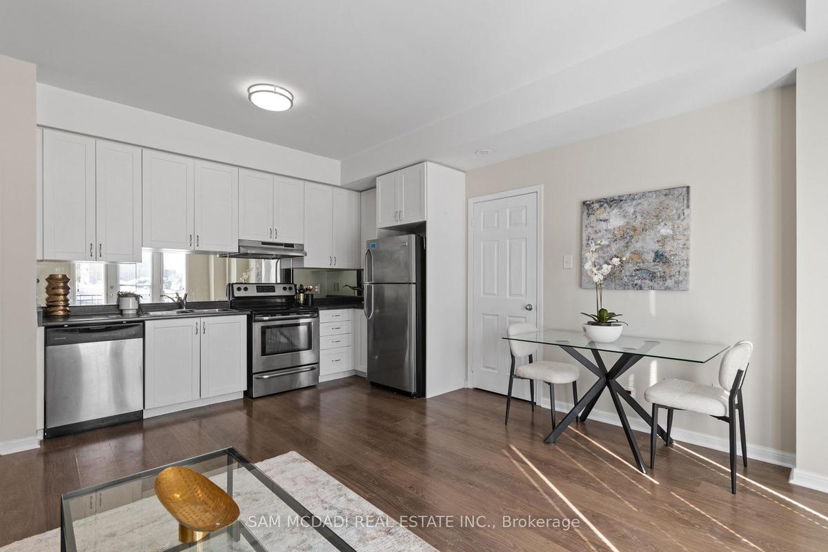 Welcome to this bright and spacious ground-floor stacked townhouse in Central Erin Mills, an ideal choice for first-time buyers, downsizers, or investors. This one-bedroom condo features 9-foot ceilings, laminate flooring throughout, and an open-concept kitchen with stainless steel appliances and ample counter space. The generous bedroom offers a large closet, while the modern 4-piece bathroom provides added comfort. Enjoy the convenience of an attached garage with direct access to the unit and visitor parking right behind. A terrace offers the perfect spot for outdoor relaxation, and plenty of storage ensures your space stays organized. Located in the highly sought-after school district, this home is steps away from Erin Mills Town Centre, grocery stores, a community centre, and parks. With easy access to Hwy 403, commuting is a breeze. Low maintenance. Making this a hassle-free, turn-key living experience. Don't miss out on this fantastic opportunity.