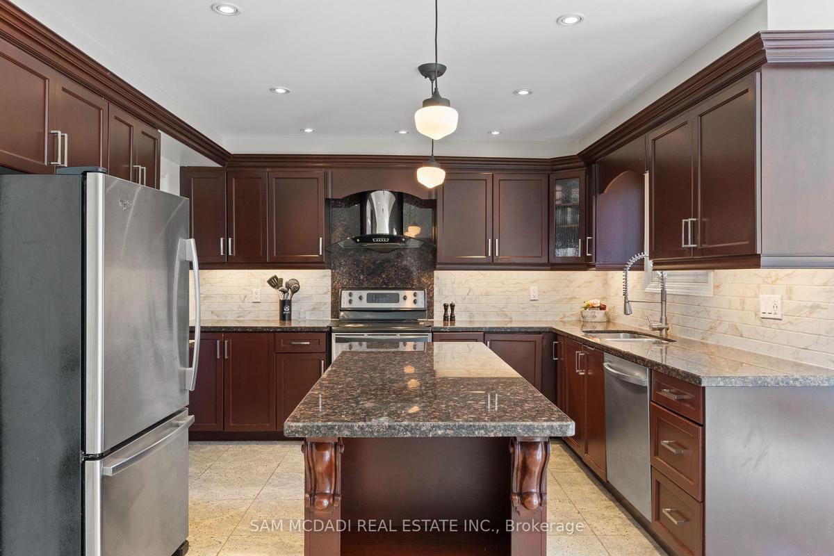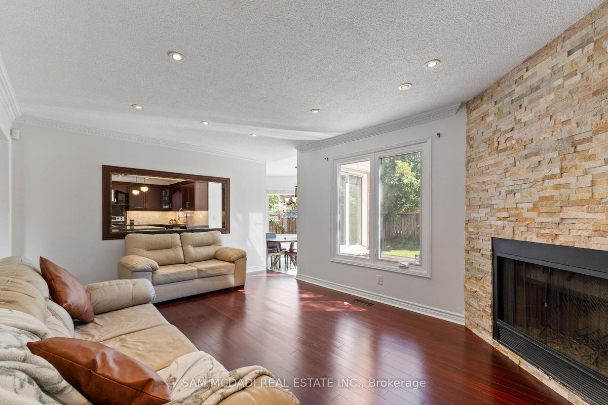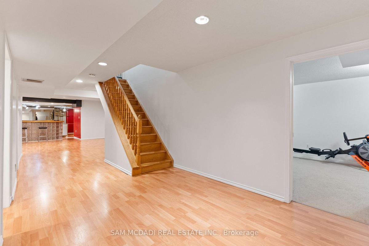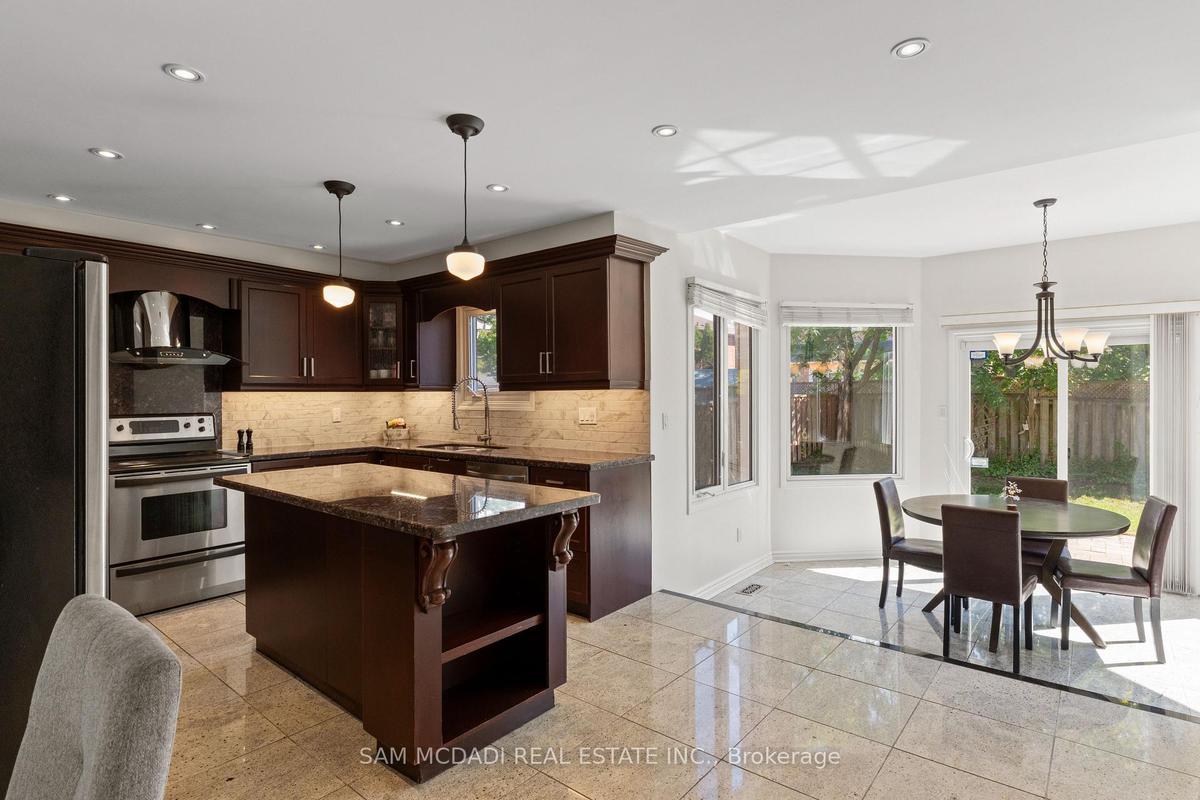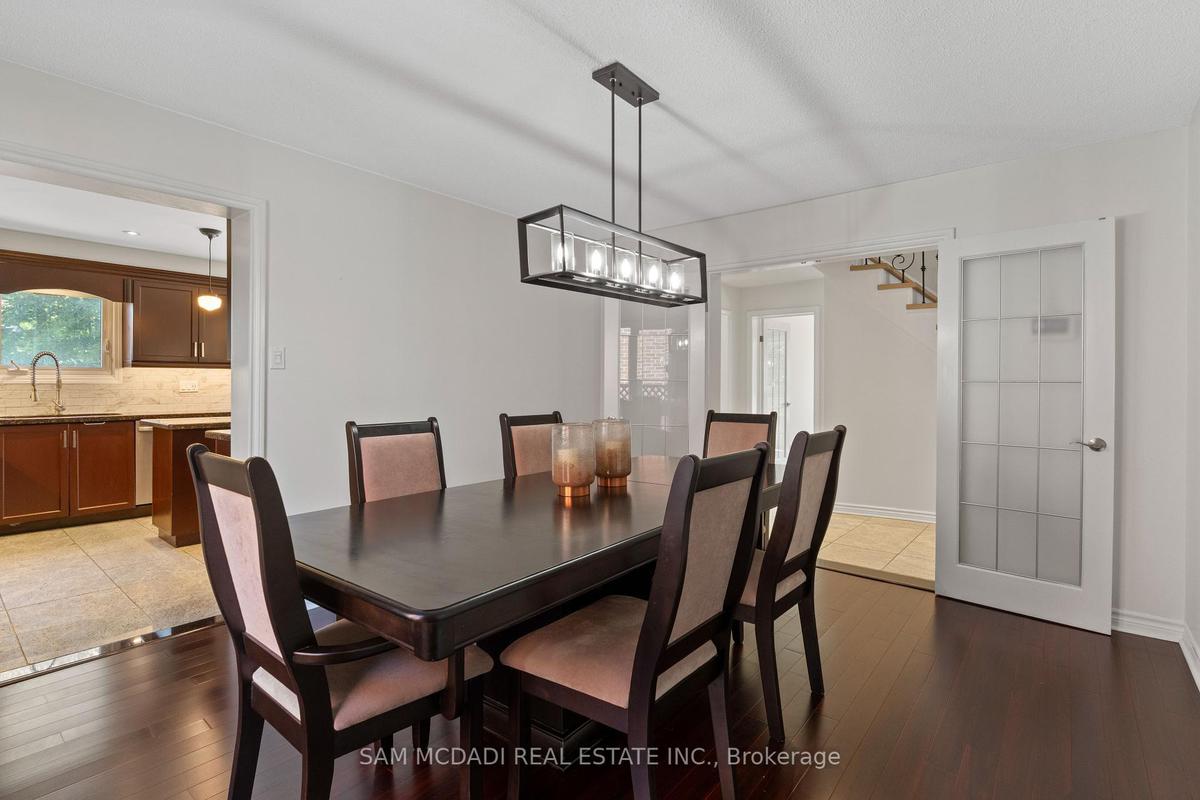 Stunningly updated 4+1 bedroom, 4-bath family home with over 3,100 sq. ft. of living space on a premium 82 ft. wide lot in a quiet, mature neighbourhood. This sun-filled, north-facing home features a thoughtful layout with 2 sitting areas, 2 dining areas, a main floor den, and direct access from the house to the garage through the main floor laundry. The main level boasts bamboo flooring, pot lights, and an updated kitchen with granite countertops, island, and upgraded cabinetry. A walk-out sunken solarium opens to a beautifully landscaped, private backyard surrounded by mature trees. The professionally finished basement includes a bedroom, full kitchen, 4-pc bathroom, and wet bar with potential to create a separate entrance for extra income. Recent upgrades include a new roof (2023), new air conditioner (2021), hardwood staircase (2021), top-floor hardwood flooring (2021), washer & dryer (2022), and freshly painted interiors. Enjoy parking for up to 6 vehicles, a front & rear sprinkler system, and premium stone landscaping (Banas stone, limestone, and flagstone patio & walkway). Steps to parks, schools, and transit, with easy access to Hwy 403, 407, QEW, Credit Valley Hospital, Erin Mills Town Centre, and University of Toronto Mississauga.