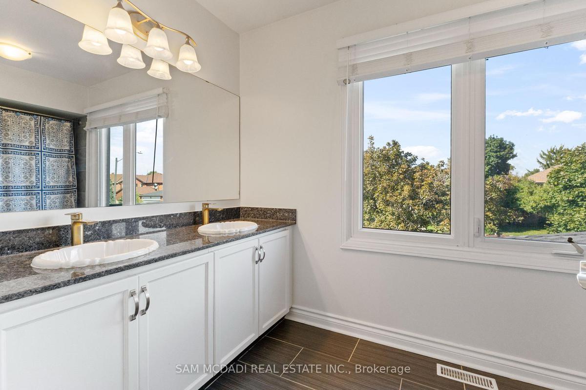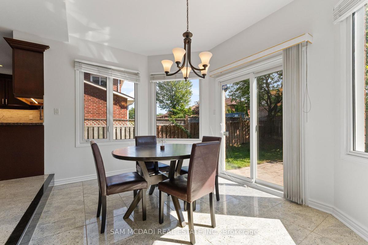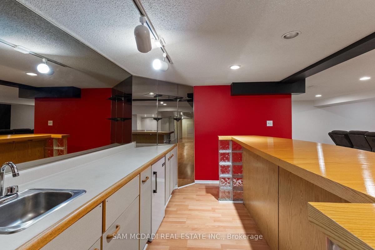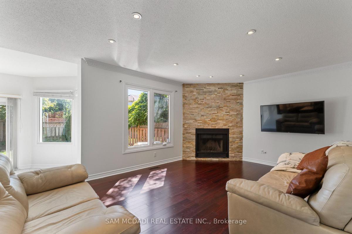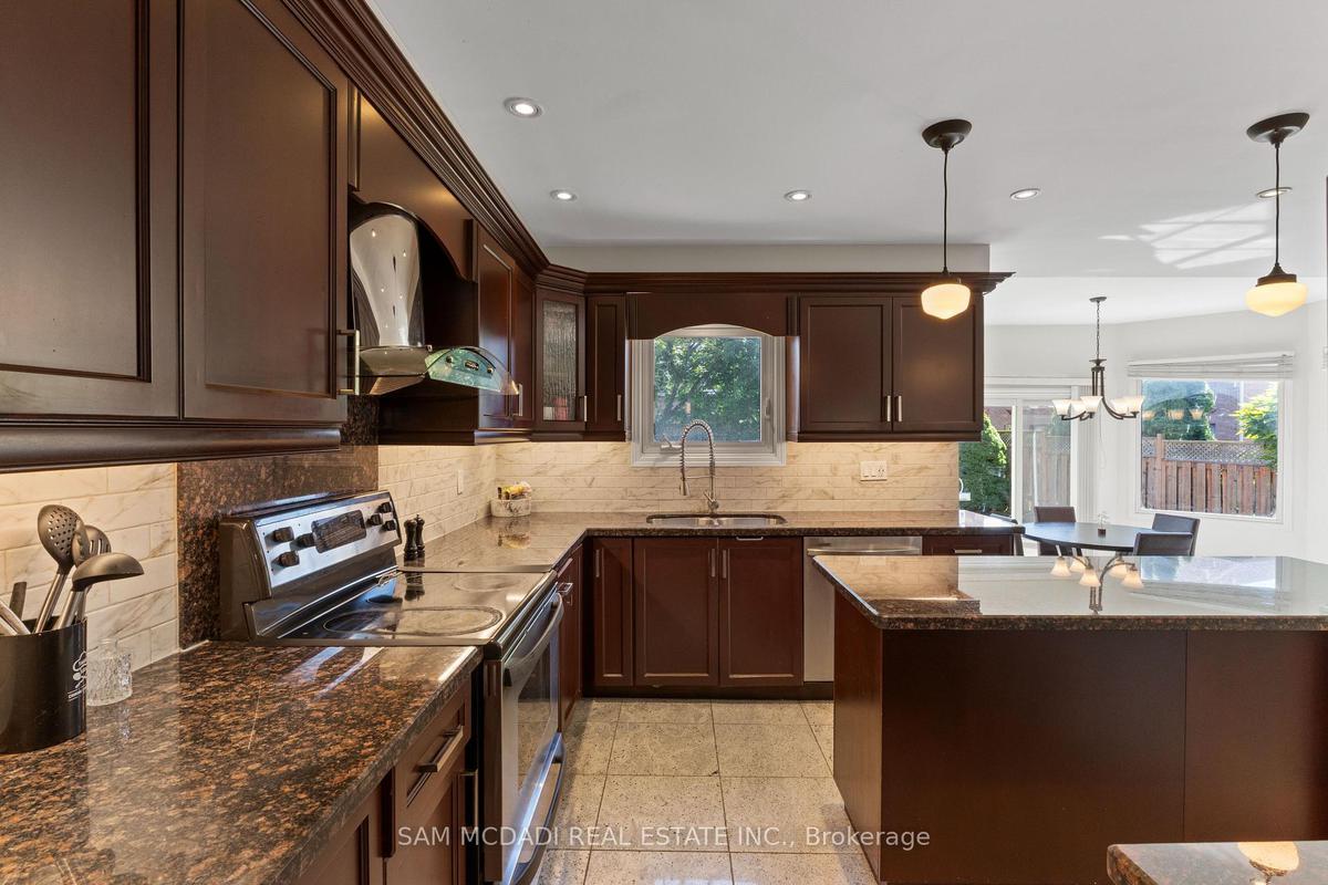 Stunningly updated 4+1 bedroom, 4-bath family home with over 3,100 sq. ft. of living space on a premium 82 ft. wide lot in a quiet, mature neighbourhood. This sun-filled, north-facing home features a thoughtful layout with 2 sitting areas, 2 dining areas, a main floor den, and direct access from the house to the garage through the main floor laundry. The main level boasts bamboo flooring, pot lights, and an updated kitchen with granite countertops, island, and upgraded cabinetry. A walk-out sunken solarium opens to a beautifully landscaped, private backyard surrounded by mature trees. The professionally finished basement includes a bedroom, full kitchen, 4-pc bathroom, and wet bar with potential to create a separate entrance for extra income. Recent upgrades include a new roof (2023), new air conditioner (2021), hardwood staircase (2021), top-floor hardwood flooring (2021), washer & dryer (2022), and freshly painted interiors. Enjoy parking for up to 6 vehicles, a front & rear sprinkler system, and premium stone landscaping (Banas stone, limestone, and flagstone patio & walkway). Steps to parks, schools, and transit, with easy access to Hwy 403, 407, QEW, Credit Valley Hospital, Erin Mills Town Centre, and University of Toronto Mississauga.