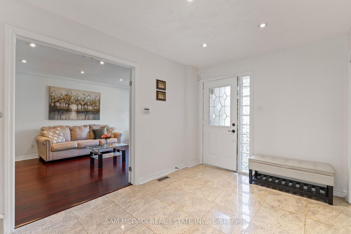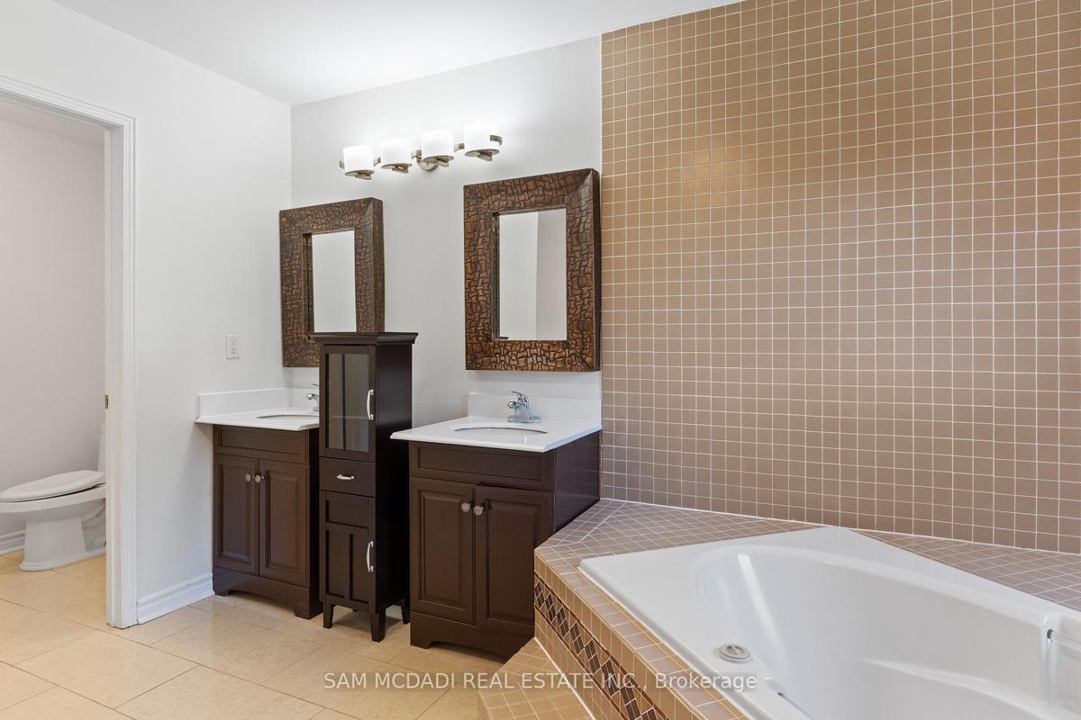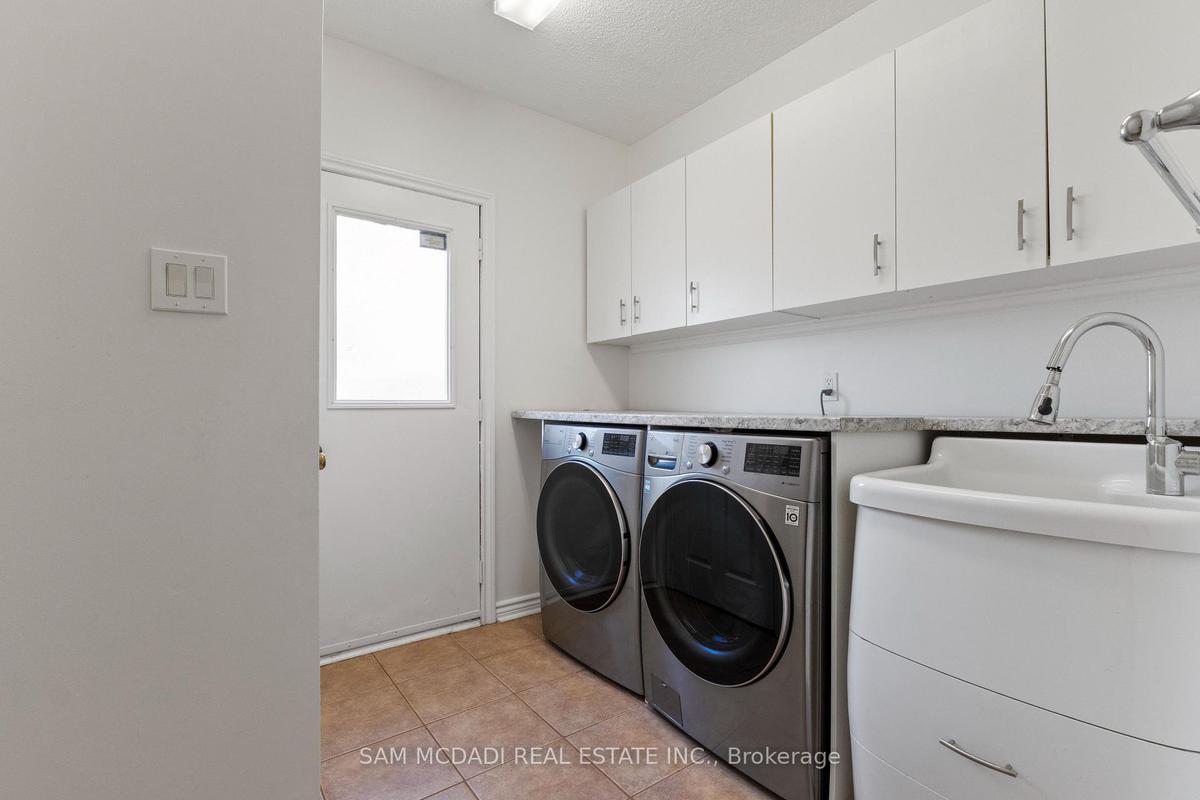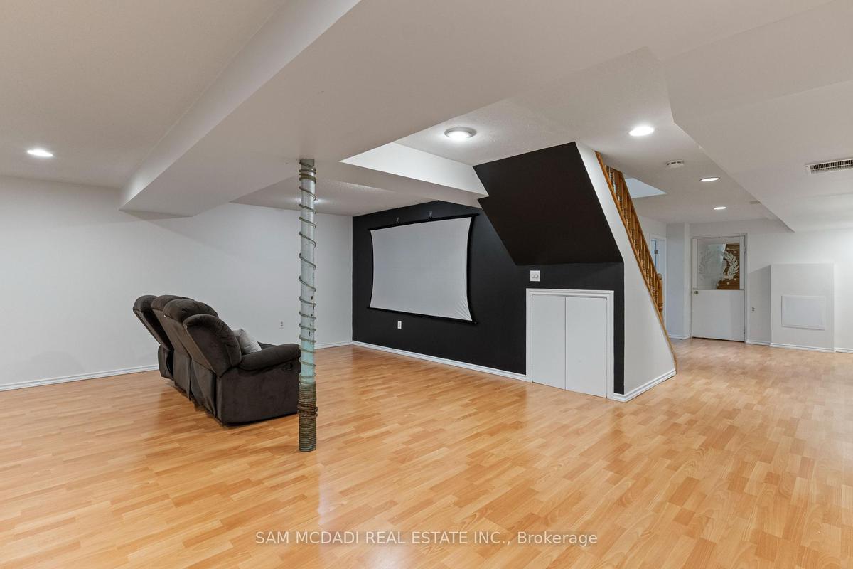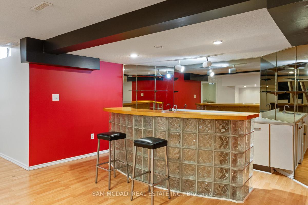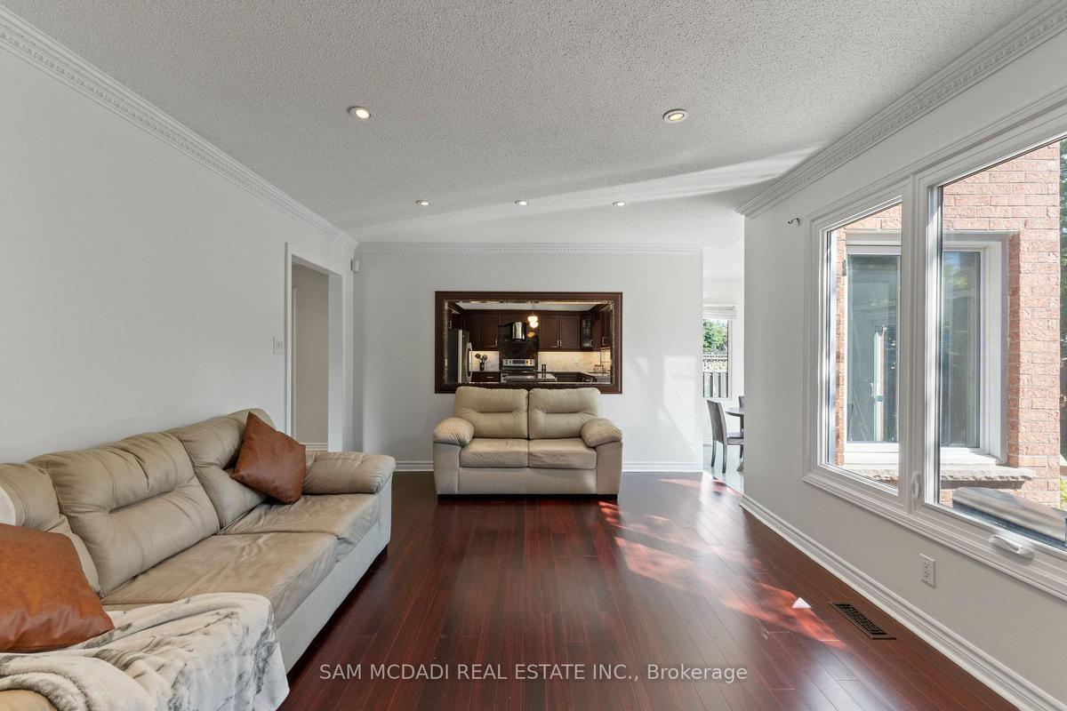 Stunningly updated 4+1 bedroom, 4-bath family home with over 3,100 sq. ft. of living space on a premium 82 ft. wide lot in a quiet, mature neighbourhood. This sun-filled, north-facing home features a thoughtful layout with 2 sitting areas, 2 dining areas, a main floor den, and direct access from the house to the garage through the main floor laundry. The main level boasts bamboo flooring, pot lights, and an updated kitchen with granite countertops, island, and upgraded cabinetry. A walk-out sunken solarium opens to a beautifully landscaped, private backyard surrounded by mature trees. The professionally finished basement includes a bedroom, full kitchen, 4-pc bathroom, and wet bar with potential to create a separate entrance for extra income. Recent upgrades include a new roof (2023), new air conditioner (2021), hardwood staircase (2021), top-floor hardwood flooring (2021), washer & dryer (2022), and freshly painted interiors. Enjoy parking for up to 6 vehicles, a front & rear sprinkler system, and premium stone landscaping (Banas stone, limestone, and flagstone patio & walkway). Steps to parks, schools, and transit, with easy access to Hwy 403, 407, QEW, Credit Valley Hospital, Erin Mills Town Centre, and University of Toronto Mississauga.