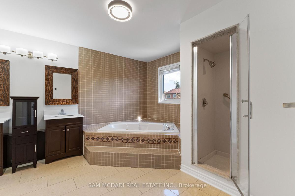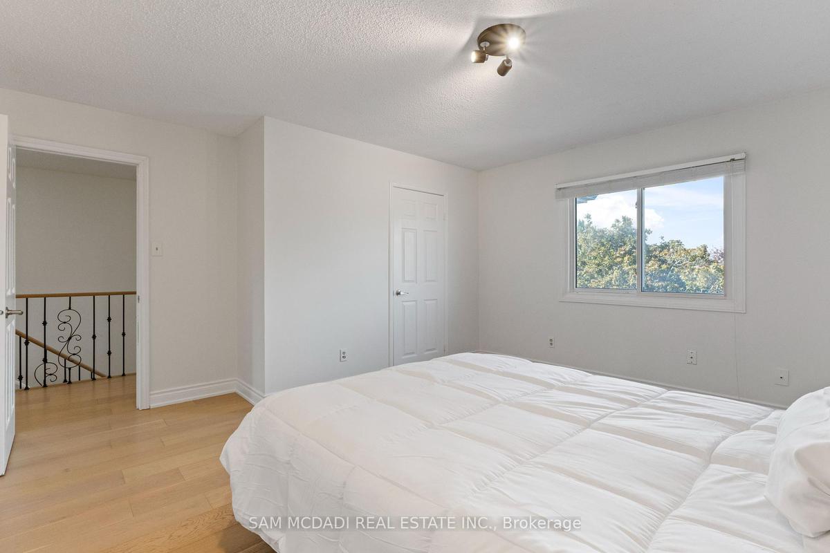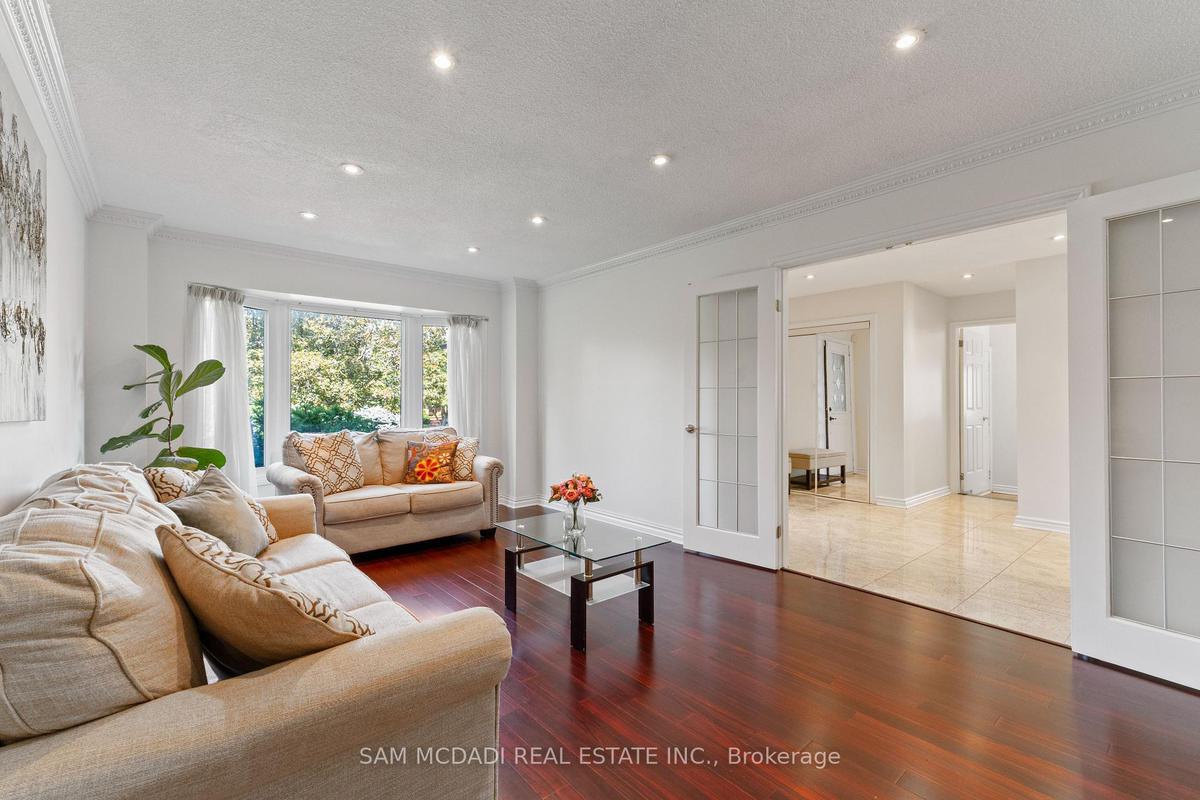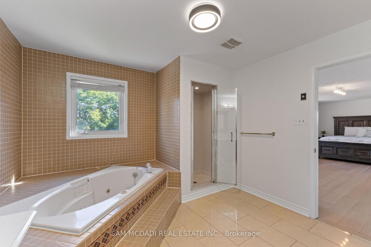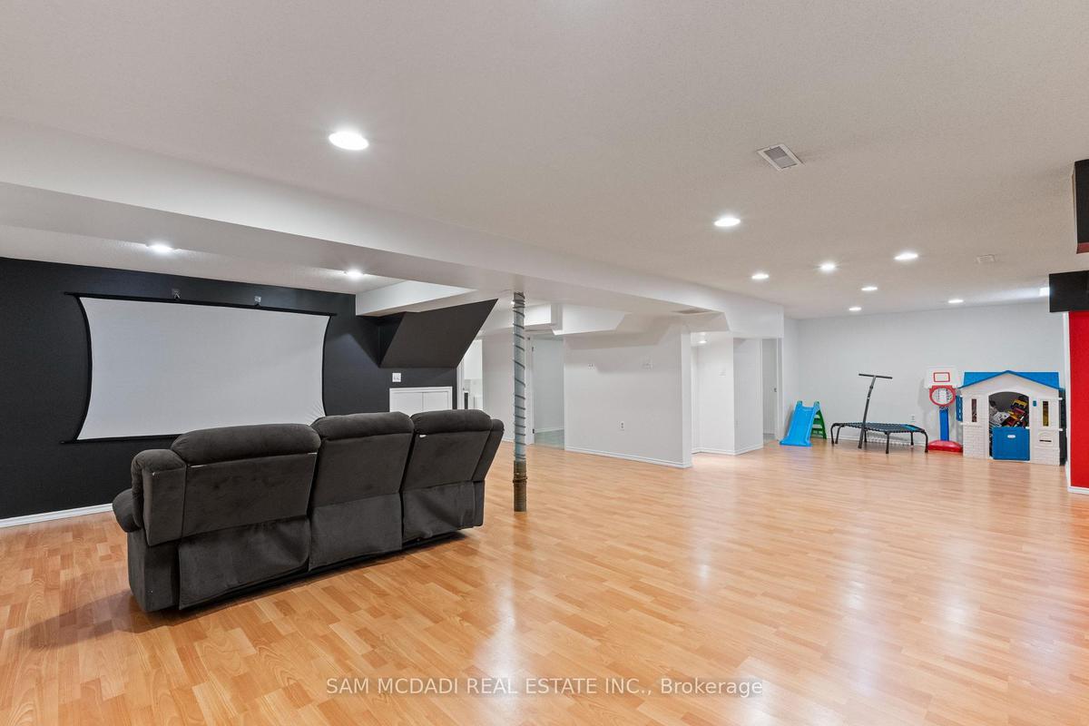 Stunningly updated 4+1 bedroom, 4-bath family home with over 3,100 sq. ft. of living space on a premium 82 ft. wide lot in a quiet, mature neighbourhood. This sun-filled, north-facing home features a thoughtful layout with 2 sitting areas, 2 dining areas, a main floor den, and direct access from the house to the garage through the main floor laundry. The main level boasts bamboo flooring, pot lights, and an updated kitchen with granite countertops, island, and upgraded cabinetry. A walk-out sunken solarium opens to a beautifully landscaped, private backyard surrounded by mature trees. The professionally finished basement includes a bedroom, full kitchen, 4-pc bathroom, and wet bar with potential to create a separate entrance for extra income. Recent upgrades include a new roof (2023), new air conditioner (2021), hardwood staircase (2021), top-floor hardwood flooring (2021), washer & dryer (2022), and freshly painted interiors. Enjoy parking for up to 6 vehicles, a front & rear sprinkler system, and premium stone landscaping (Banas stone, limestone, and flagstone patio & walkway). Steps to parks, schools, and transit, with easy access to Hwy 403, 407, QEW, Credit Valley Hospital, Erin Mills Town Centre, and University of Toronto Mississauga.