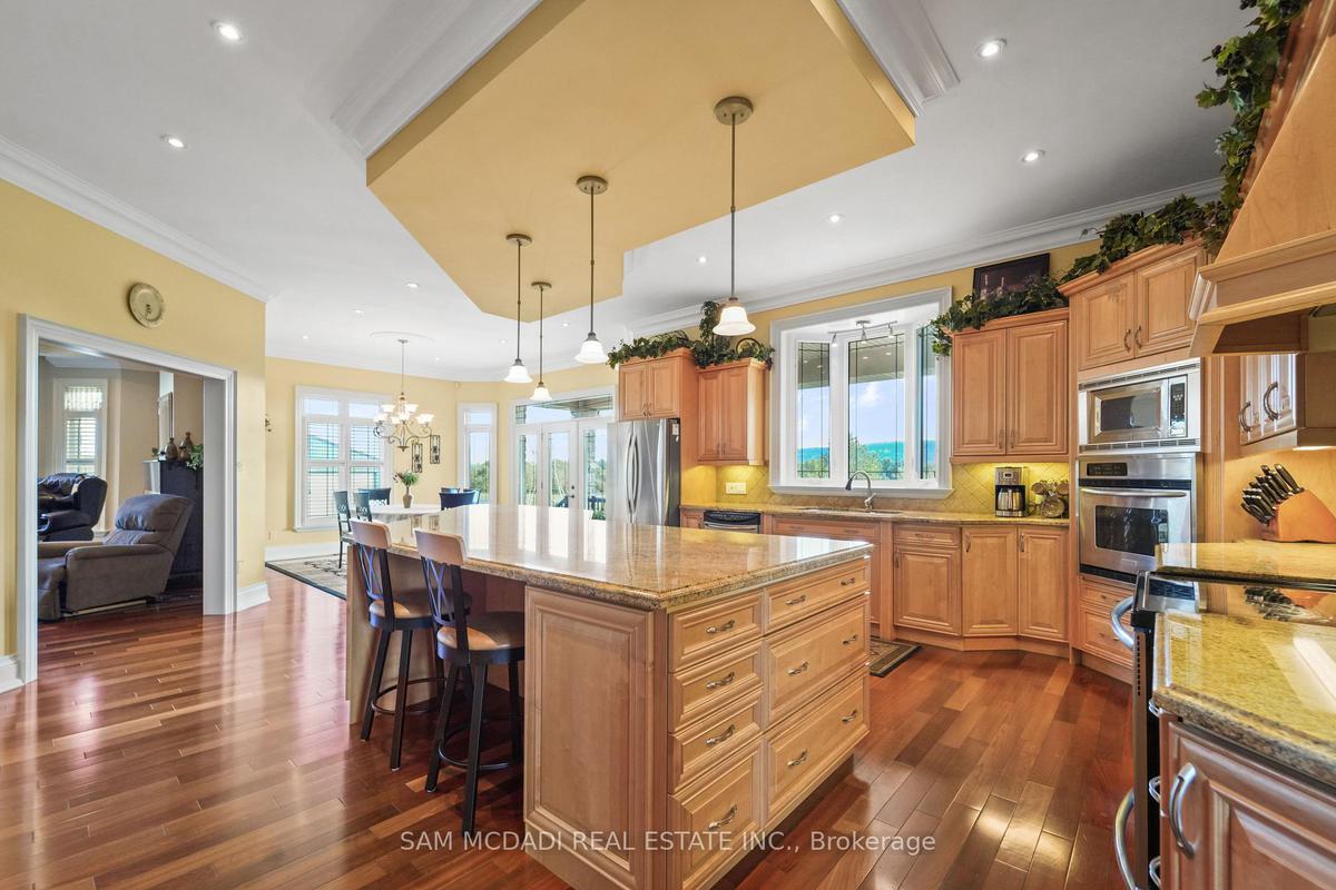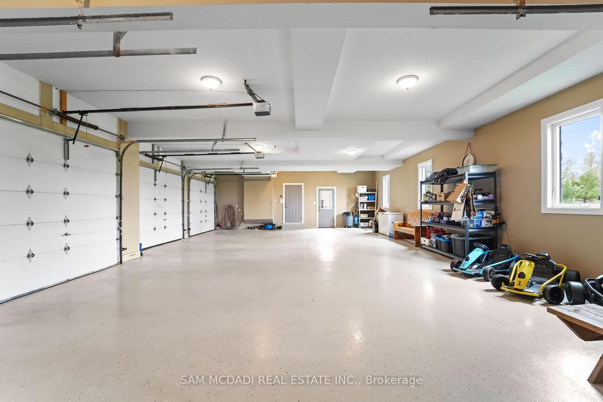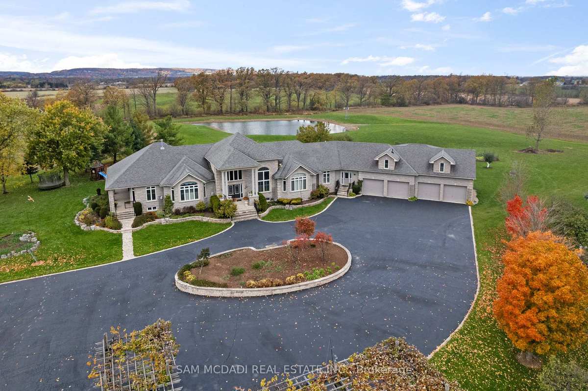 Welcome to a truly rare private estate at 5431 Appleby Lane with 87 acres of uninterrupted countryside elegance just beyond the city. Commanding attention from the very first glance a custom-designed over 19-ft entry gate offering both elegance and security, sets the tone for the prestigious property it guards. Decorative lighting fixtures provide dramatic nighttime illumination, while automated access control ensures privacy and peace of mind. Ideal for those seeking privacy, prestige, and a secure entryway to a vast estate, this gate is more than just an entrance. Its a bold architectural feature that sets the tone for the extraordinary property beyond. This custom estate offers more than 9,300 sq ft of finished living space with four bedrooms and four bathrooms above grade plus an additional bedroom and two baths in the fully finished lower level, providing flexibility for family, guests, or staff. Designed for scale and warmth, the home places the primary suite and a second bedroom on the main level, with two more bedrooms upstairs; main rooms feature 18ft ceilings while lower levels have 8ft ceilings. Rich hardwood runs through principal rooms and the chefs kitchen includes granite counters, built-in oven and microwave, and high end appliances; a gas fireplace anchors the main living area and premium finishes appear throughout. The lower level contains two recreation areas and carpeted family spaces for comfort. Outdoors is a private resort with a finished inground pool set among interlocking patios and multiple ponds, expansive lawns and woodlands, plus room for hobby farming, equestrian use, or future development. Four garage bays, ample guest and equipment parking, a septic system and water cistern complete the property, with mechanical independence provided by two owned furnaces, two owned air conditioners, and two owned hot water tanks. Book a private showing today to experience the scale and serenity in person.