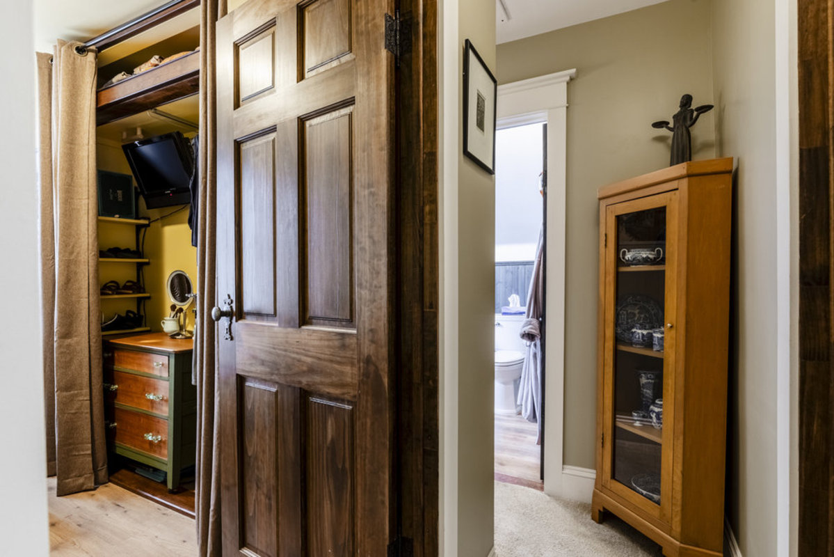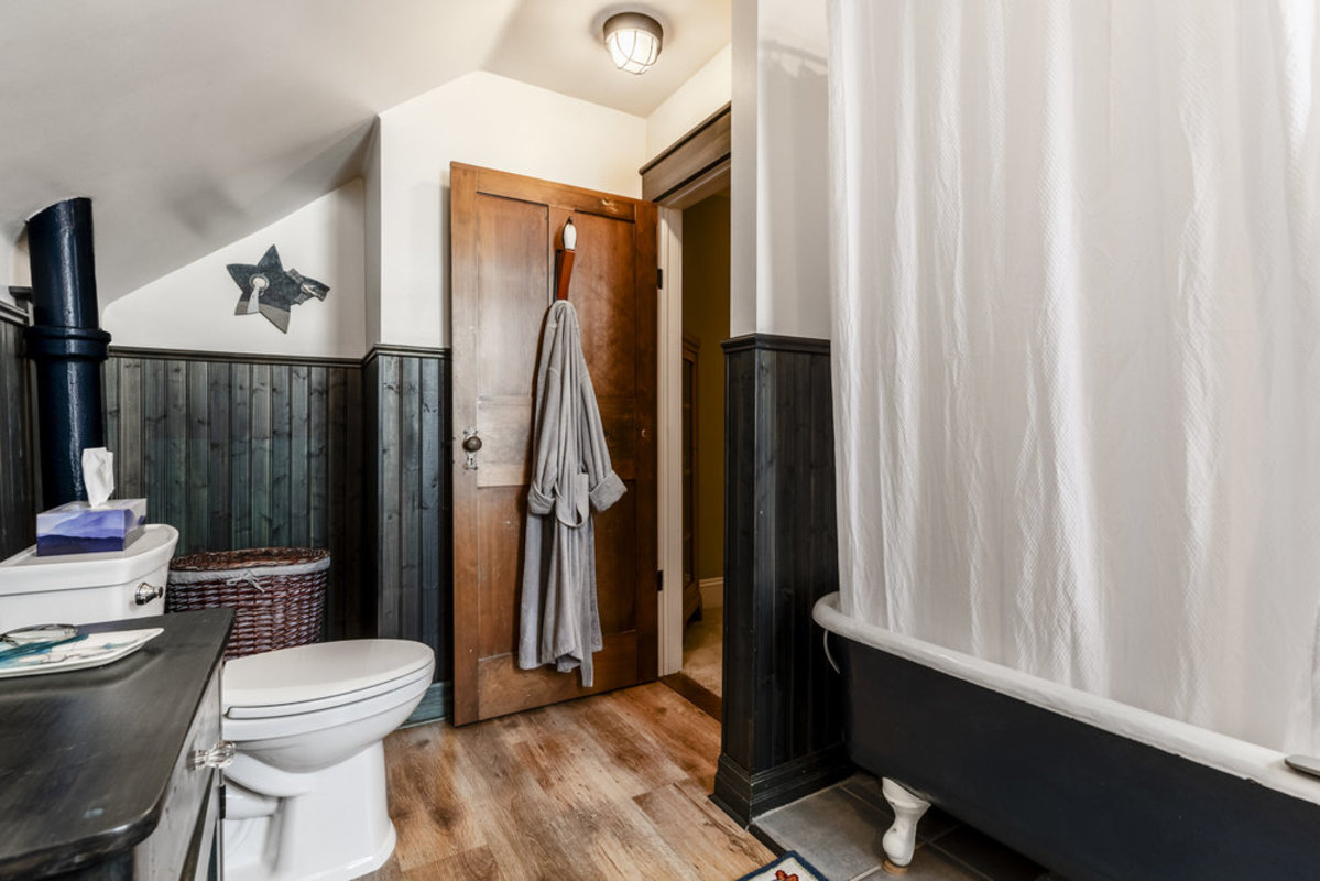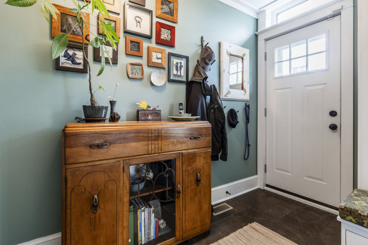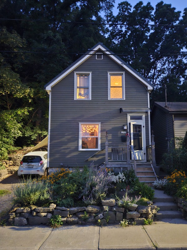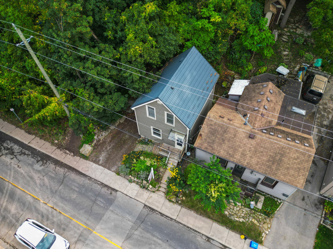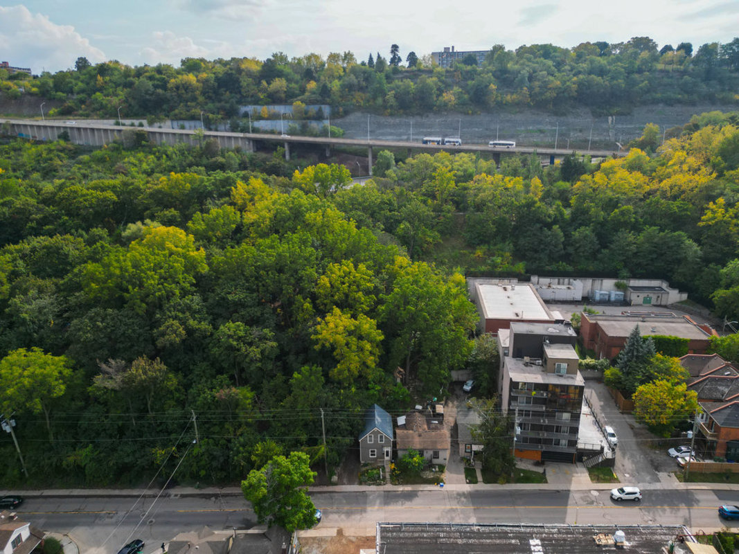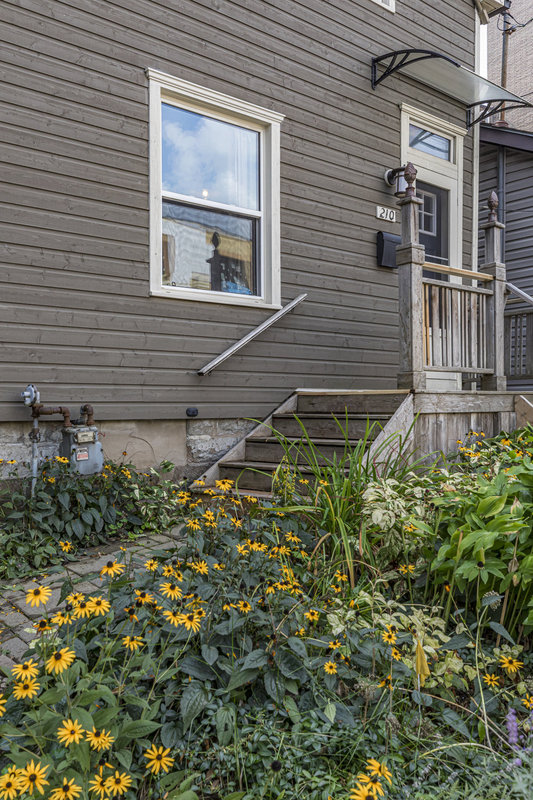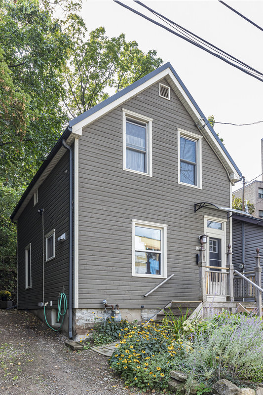 Outstanding transformation inside & out with no stone left unturned! Tucked away at the base of the escarpment, this thoughtfully renovated 2-storey, 2-bedroom, 1-bath home is full of character, creativity, and modern convenience. From its clever storage solutions to its private "secret garden"¢** patio, every detail has been carefully designed to make the most of both space and style. Step inside to discover an updated kitchen that's as functional as it is beautiful, featuring built-in banquette seating with custom cushions (and hidden storage!), a pull-out butcher block for added prep space, subway tile backsplash, and generous cabinetry. The living room offers a walkout to a stunning interlock and flagstone patio - a private oasis perfect for morning coffee or evening gatherings - w/ built-ins & glass display shelves to add ambiance and charm. Upstairs, the primary bedroom delights with a hidden "secret closet"¢** concealed behind a bookshelf, while the elegant 4-piece bathroom features a classic clawfoot tub and pedestal sink for a touch of vintage luxury. Additional highlights include two-car private parking - a rare and valuable find - and a unique sense of privacy and tranquility. This one-of-a-kind home offers the perfect blend of historic charm, smart updates, and whimsical details. This Corktown gem is steps to St. Jo's, the GO & amenities. A must-see for those seeking something truly special.