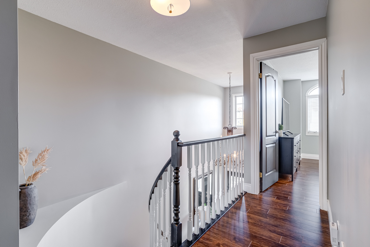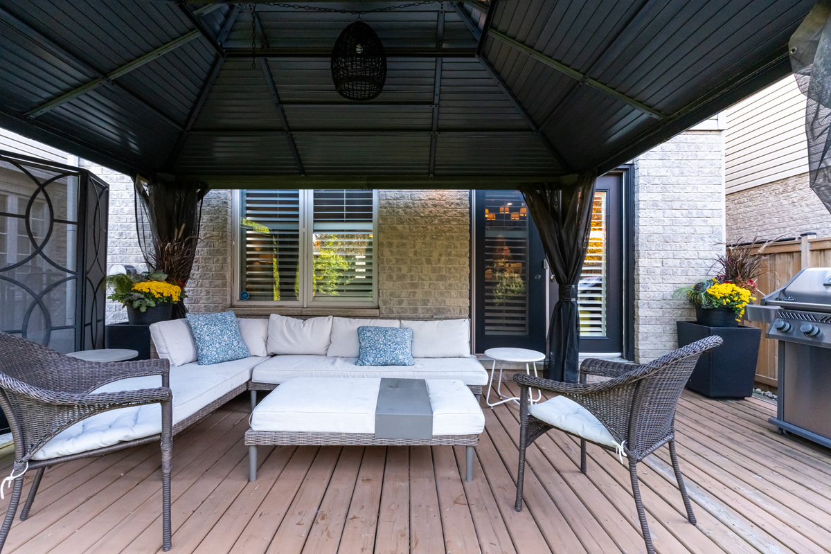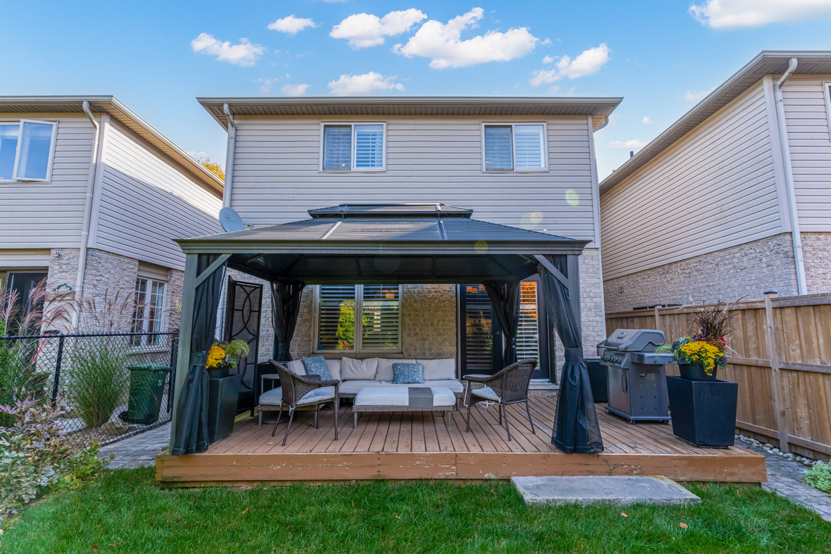 Executive end unit freehold townhome in a mature and family friendly Ancaster neighbourhood just steps to James Smith Park and only a minute drive from highway access. This stunning home offers more than 1600 square feet above grade plus a fully finished basement. Opulent double doors enter into a large two-storey foyer with double coat closet, inside entry from the garage and a main floor powder room. An open concept gourmet kitchen and living area is a fantastic entertaining space offering a gas fireplace, granite counters and stainless-steel appliances. French doors provide access to a fully fenced and beautifully landscaped yard with mature cedar trees providing plenty of privacy while you relax on a large deck with pergola. Additional features include a gas line for BBQ, side access to the front of the home and an entry door into the designer 1.5 car garage with built-in shelving and workbench. The recently renovated upper level offers 3 spacious bedrooms with two walk-in closets and unique to the townhomes in this area, there are two brand new full bathrooms with stylish finishes including a primary ensuite with glass walk-in shower. A fully finished basement provides a fantastic recreation space, a laundry room with sink, cold room, and a cedar storage closet. This wonderful home has excellent curb appeal and it is centrally located close to great schools, as well as all shopping amenities.