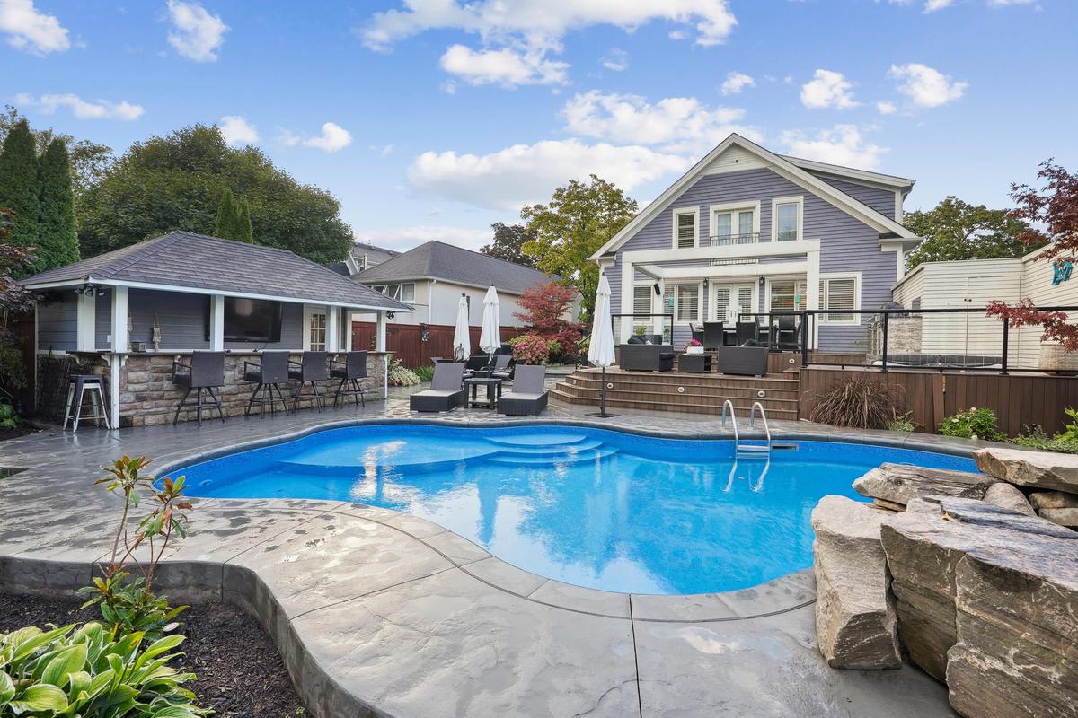 Welcome to this custom-renovated masterpiece! The property features fantastic indoor and outdoor kitchens, a resort-like backyard with multiple decks, pool, hot tub, and various patio spaces. 5,319 sq ft of finished living space with an abundance of natural light, hardwood floors, comfortable family room, stunning dining room, 4+1 spacious bedrooms, 3+1 beautifully appointed baths, 2 laundry rooms, main floor office, and pantry. Fully finished lower level. Just steps from Bronte Harbour, waterfront trails, shops, restaurants, and schools. Don't miss your chance to own this gem in one of Oakville's most sought-after neighbourhoods!