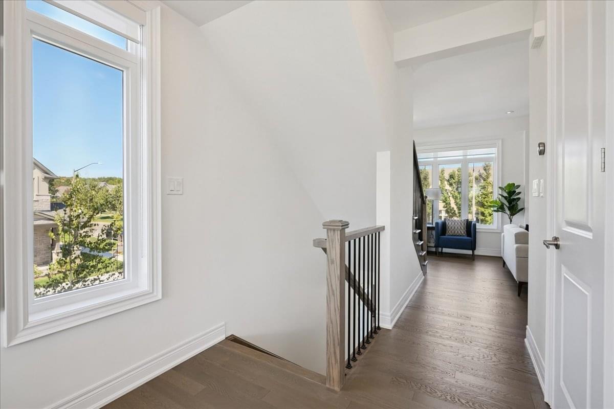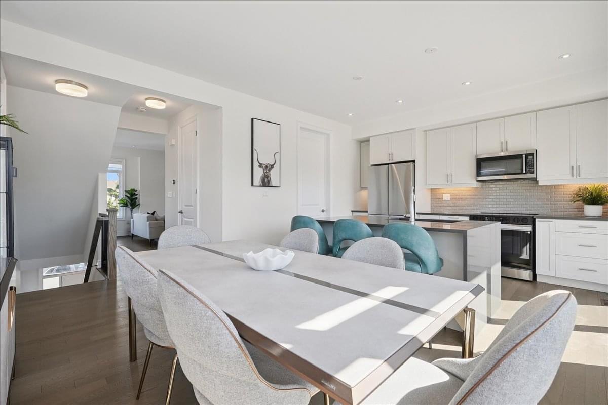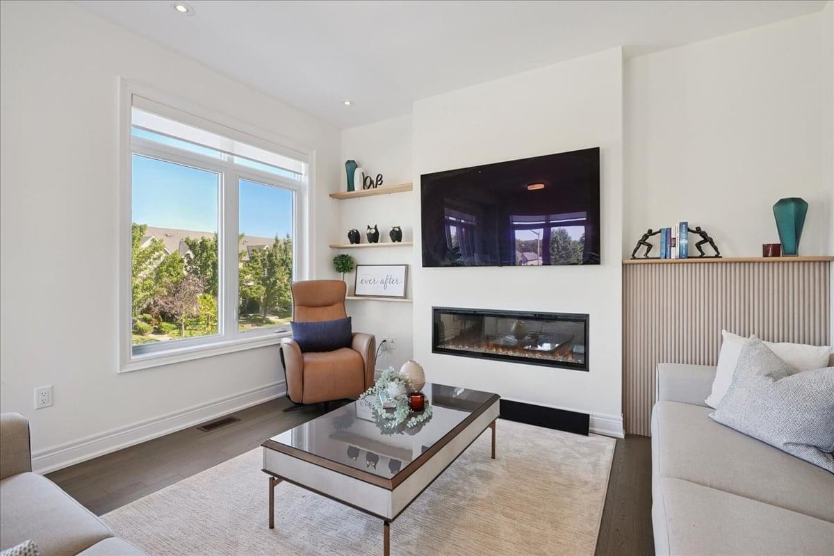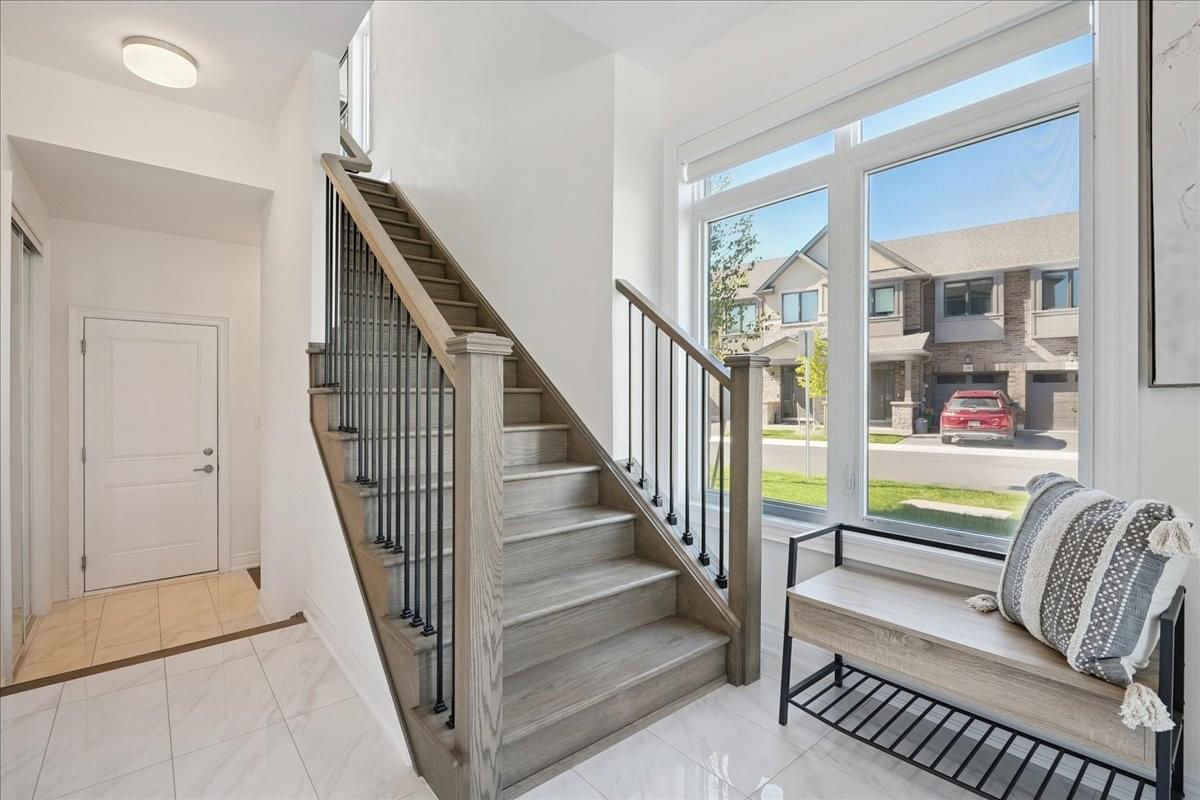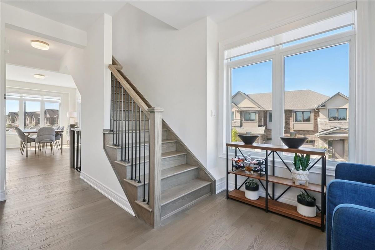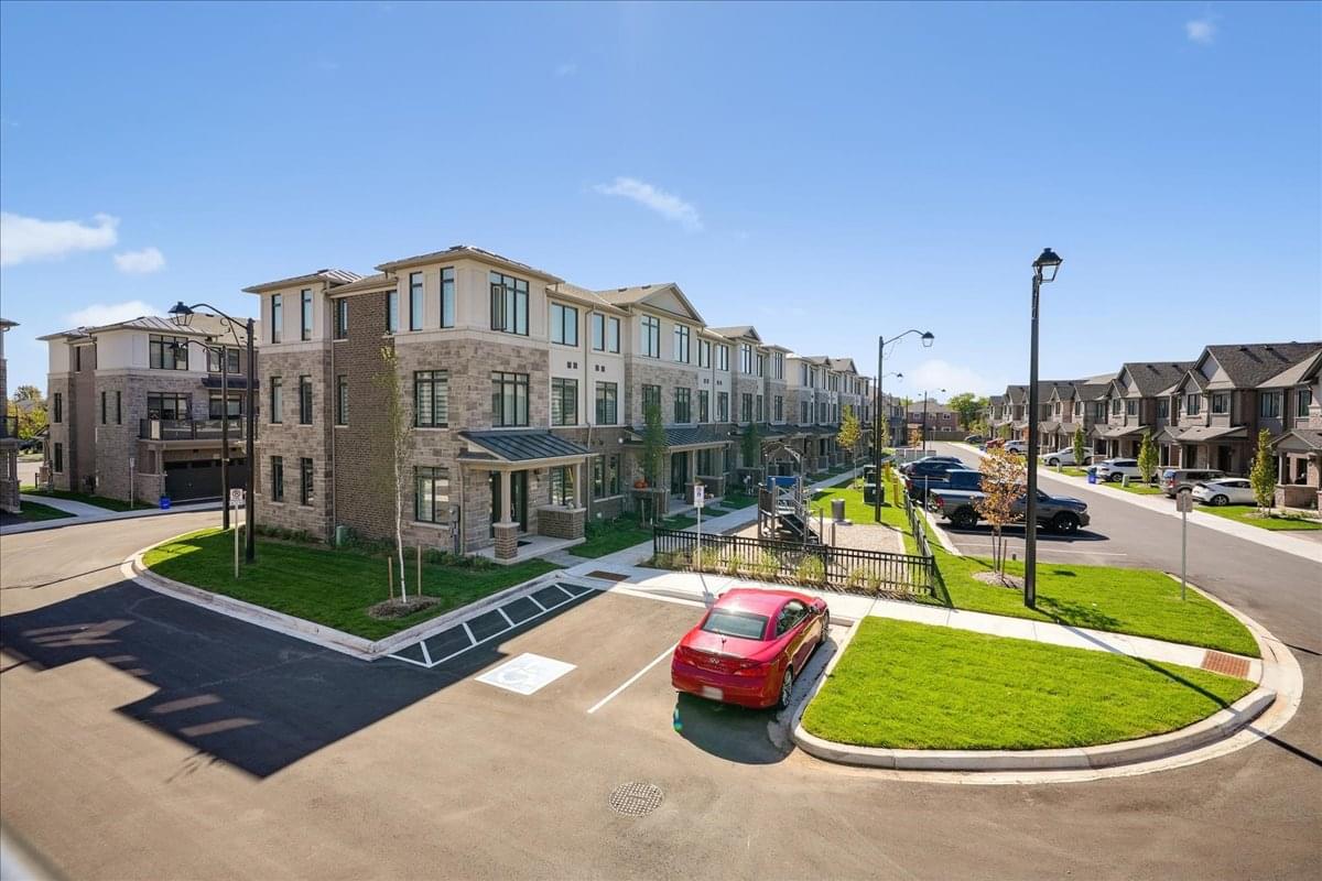 Executive end-unit townhome with double car garage, offering 1,885 sq. ft. of beautifully finished living space plus finished basement! This rare under 1 year NEW West Oak Trails features 4+1 bedrooms and 4.5 bathrooms, designed for both comfort and style. Superior upgrades include decadent oak hardwood floors, LED pot lights, 9' smooth ceilings & 8 ft doorways. The ground level offers a spacious bedroom with private 4-piece ensuite, plus plenty of storage and direct access to the garage.Access second level via hardwood stairs with iron pickets. This level features stunning modern kitchen with extended white cabinetry, 4 stainless steel appliances, pots and pans drawers, spice rack, under valence lighting, quartz counters, and a massive island & breakfast bar with a waterfall quartz countertop. Sliding doors open to a large balcony-perfect for lounging, dining, and BBQs. Spacious dining area, living room with custom shelving and sleek electric fireplace, a 2-piece powder room, and a convenient laundry room/ pantry. Upstairs, the primary suite showcases a generous walk-in closet and spa-inspired 4-piece bathroom with double sinks, quartz counters, and a glass-enclosed shower. Two additional bedrooms share a 4pc main bath with a soaker tub. The finished basement extends the living space with a 3-piece bath featuring quartz counters, tile flooring, and a glass-enclosed shower. This home delivers the perfect balance for both family function and luxury, set in an unbeatable Westoak Trails location-surrounded by top-rated schools, scenic parks, trails, and just minutes from Oakville Trafalgar Hospital. This is a MUST SEE!
