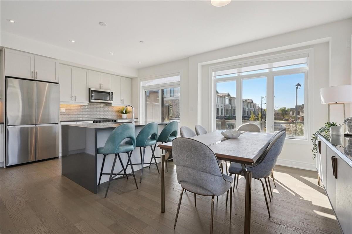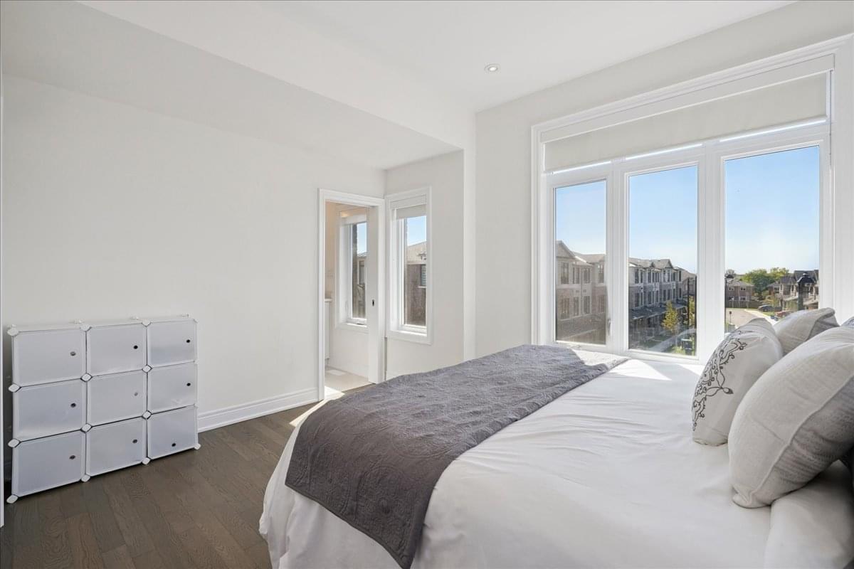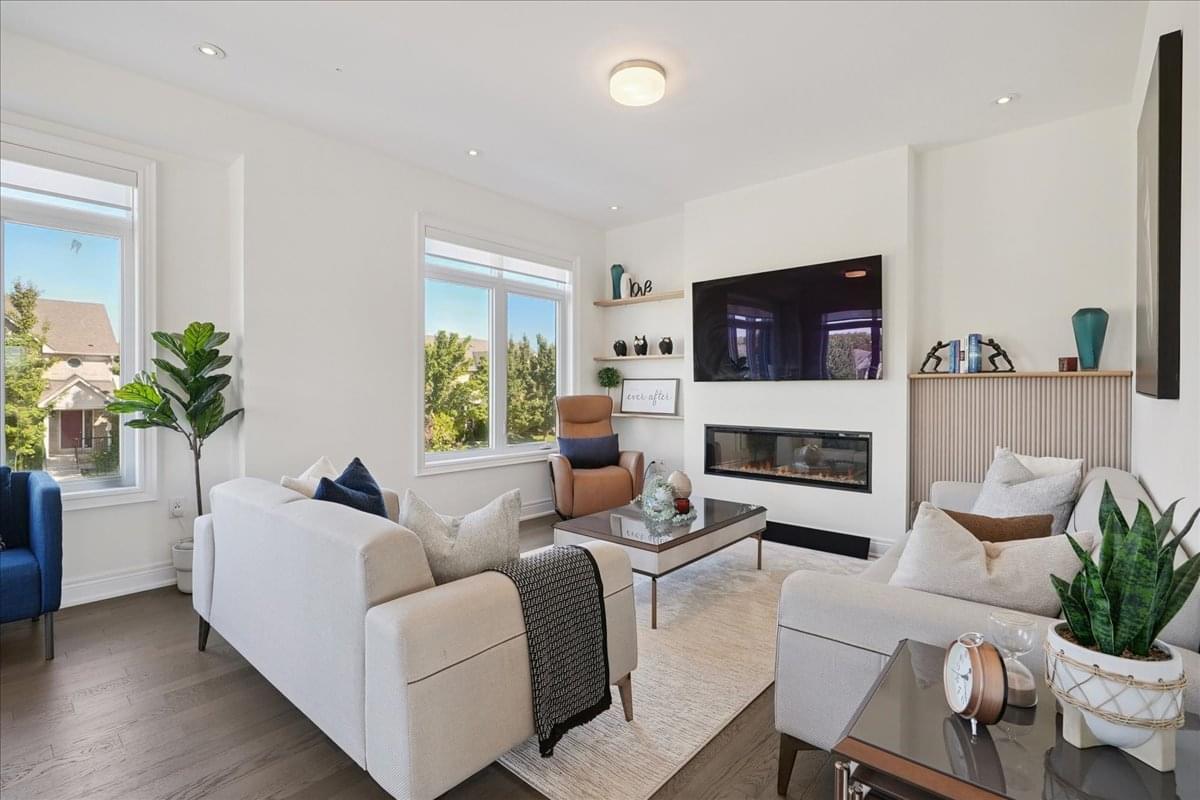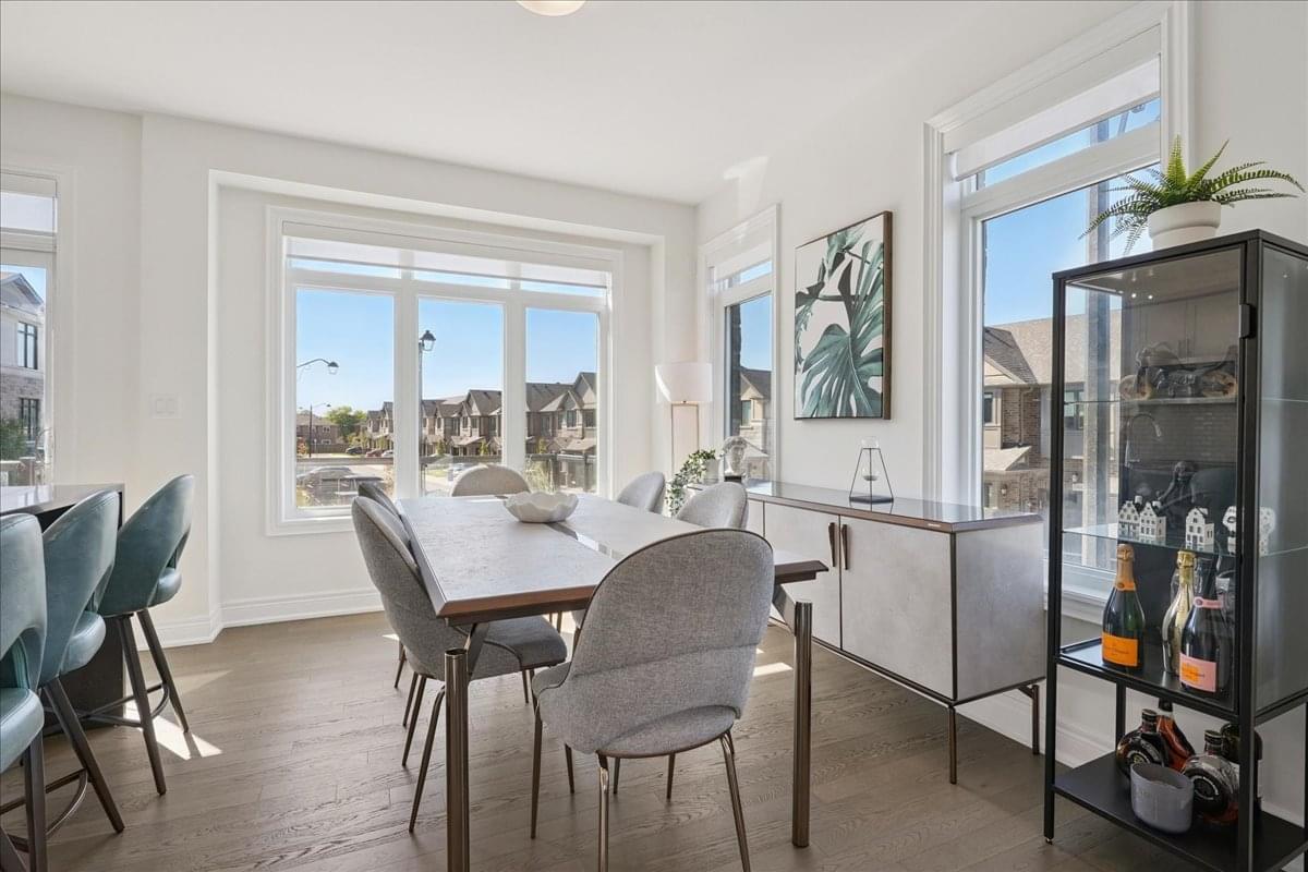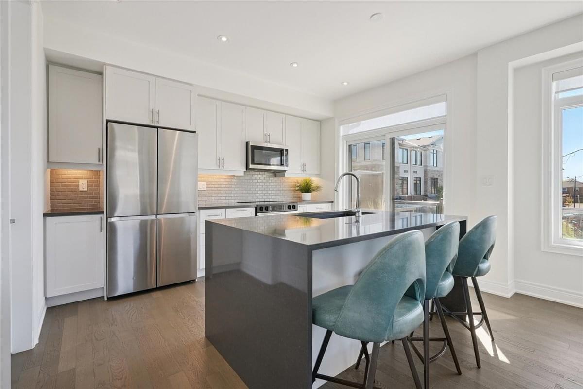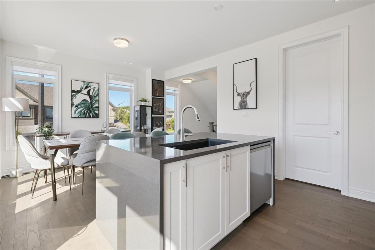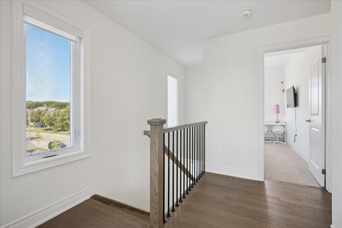 Executive end-unit townhome with double car garage, offering 1,885 sq. ft. of beautifully finished living space plus finished basement! This rare under 1 year NEW West Oak Trails features 4+1 bedrooms and 4.5 bathrooms, designed for both comfort and style. Superior upgrades include decadent oak hardwood floors, LED pot lights, 9' smooth ceilings & 8 ft doorways. The ground level offers a spacious bedroom with private 4-piece ensuite, plus plenty of storage and direct access to the garage.Access second level via hardwood stairs with iron pickets. This level features stunning modern kitchen with extended white cabinetry, 4 stainless steel appliances, pots and pans drawers, spice rack, under valence lighting, quartz counters, and a massive island & breakfast bar with a waterfall quartz countertop. Sliding doors open to a large balcony-perfect for lounging, dining, and BBQs. Spacious dining area, living room with custom shelving and sleek electric fireplace, a 2-piece powder room, and a convenient laundry room/ pantry. Upstairs, the primary suite showcases a generous walk-in closet and spa-inspired 4-piece bathroom with double sinks, quartz counters, and a glass-enclosed shower. Two additional bedrooms share a 4pc main bath with a soaker tub. The finished basement extends the living space with a 3-piece bath featuring quartz counters, tile flooring, and a glass-enclosed shower. This home delivers the perfect balance for both family function and luxury, set in an unbeatable Westoak Trails location-surrounded by top-rated schools, scenic parks, trails, and just minutes from Oakville Trafalgar Hospital. This is a MUST SEE!
