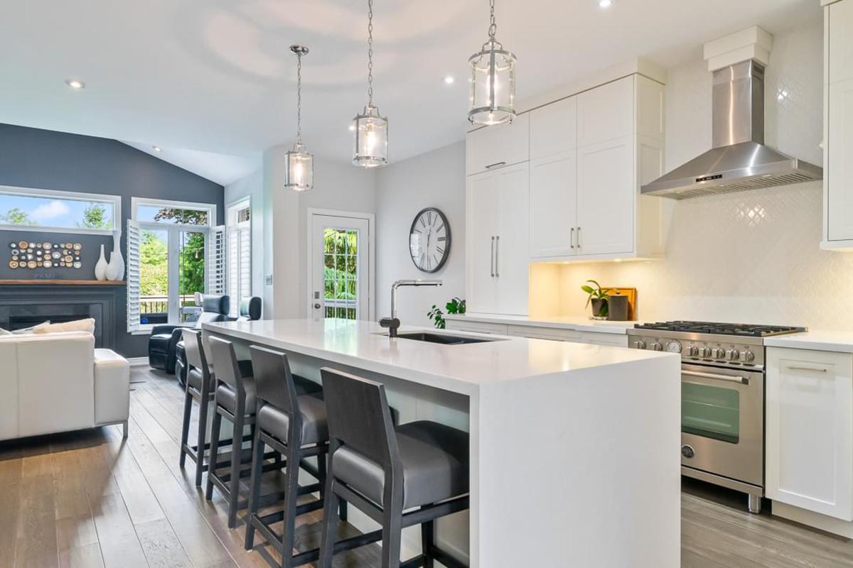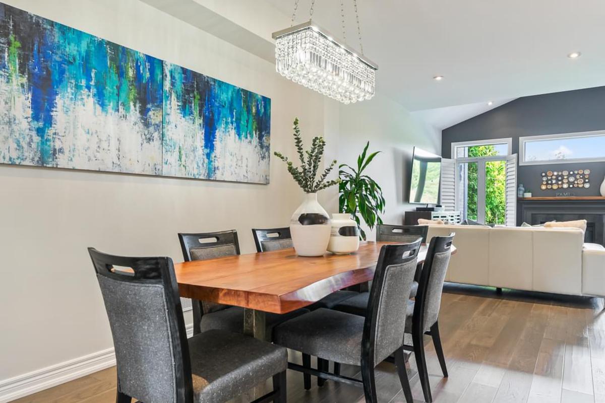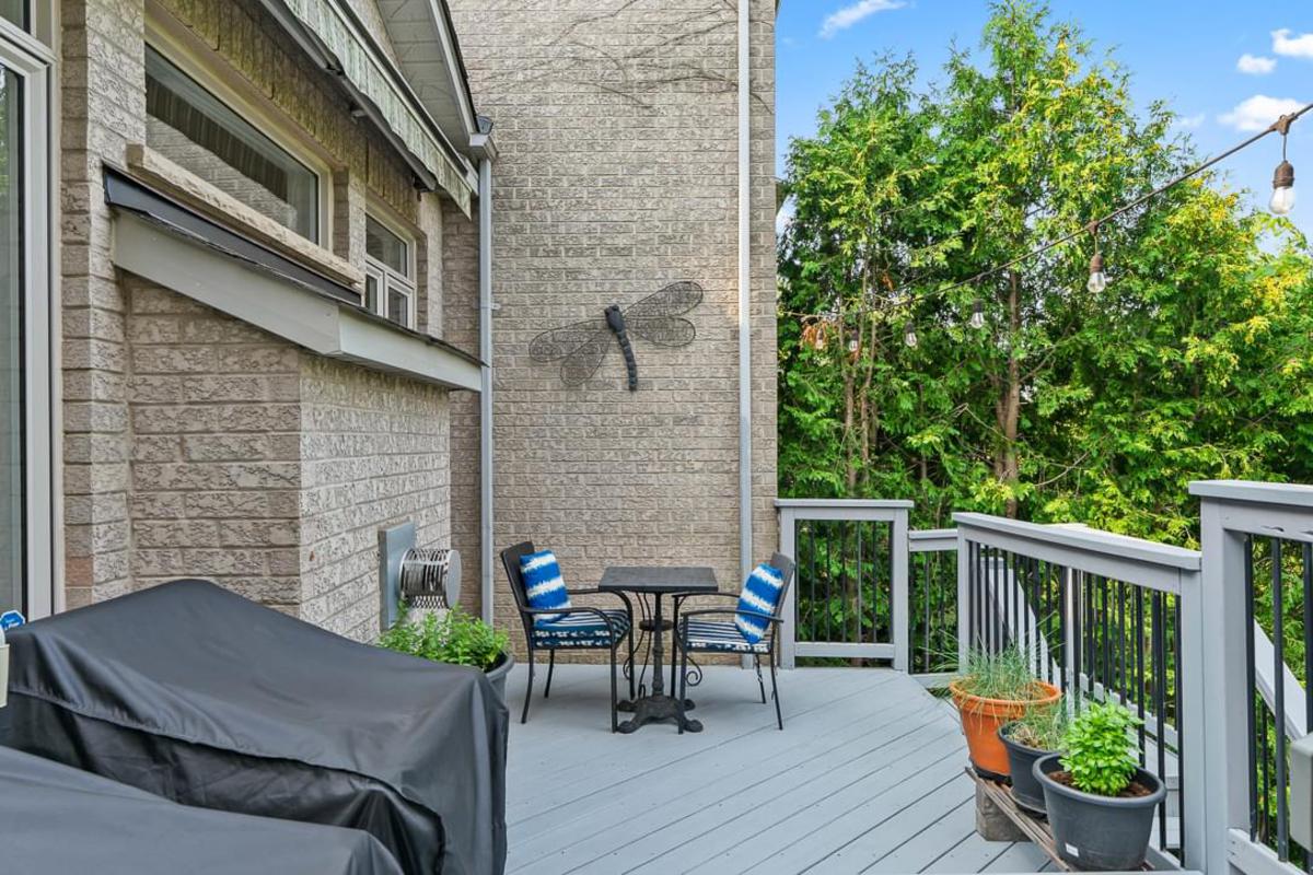 neighborhoods. This exceptional three-bedroom, four-bathroom freehold townhome showcases over $200,000 in thoughtful renovations, creating a perfect harmony between luxury and comfort. The heart of this home lies in its completely reimagined open-concept main floor. The stunning custom kitchen commands attention with its Quartz countertops, expansive island, and premium stainless steel appliances. Updated light fixtures illuminate the space, while soaring high ceilings create an impressive sense of grandeur. Engineered hardwood floors flow seamlessly throughout, connecting the combined dining and living areas adorned with elegant California shutters and a striking gas fireplace with mantle. Natural light floods through large windows, creating an inviting atmosphere that extends to the fabulous deck overlooking your private treed ravine lot. Here, you'll discover breathtaking views of Sixteen Mile Creek, offering a daily dose of tranquility that feels worlds away from city life. The second floor presents three well-appointed bedrooms, including a luxurious primary suite featuring a four-piece bathroom and generous walk-in closet. The renovated lower level boasts nine-foot ceilings, a convenient Murphy bed, three-piece bathroom, and cozy gas fireplace, creating versatile space perfect for a private guest suite with its own walk-out access to the lower backyard. Practical conveniences include main-floor laundry with garage entry and a Tesla Level 2 charging station for modern living. This exclusive neighborhood offers exceptional amenities including an upcoming recreation center, top-rated schools, and easy access to Heritage Trail and Lions Valley Park, ensuring every lifestyle need is beautifully addressed.