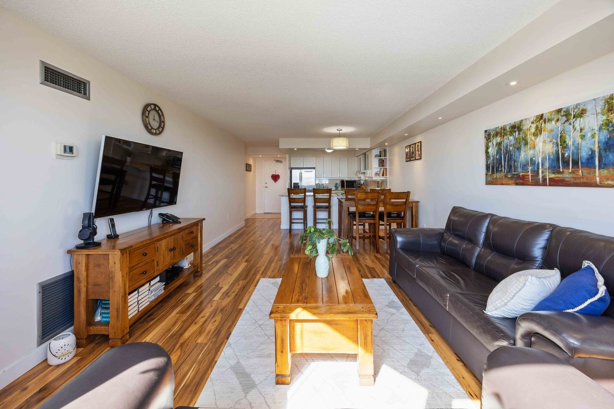 Welcome to Lakeshore Park Estates. From sunrise to sunset enjoy breathtaking, unobstructed South East facing views of Lake Ontario & the Toronto skyline-right from your balcony, living room, & bedrooms! Stunningly renovated suite with open-concept design, pot lights, & engineered hardwood throughout. Modern white kitchen with newer Stainless Steel appliances, oversized extended granite breakfast island, sleek hood range & elegant subway tile backsplash with bulk head lighting. Spa-inspired 4-piece bath, spacious primary with walk-in closet & balcony walkout, plus a bright versatile second bedroom for family, guests, or even an office. Convenient in-suite laundry with brand new stackable washer & dryer. Premium underground parking located steps from the entrance for ultimate convenience, plus TWO full-size side-by-side lockers for exceptional storage. All-inclusive building with every utility included in the maintenance fees! Residents enjoy a full suite of amenities including a sauna, hot tub, fully-equipped gym/exercise room, craft room, freshly renovated party room, library, bike storage, convenient visitor parking, superintendent & property manager on site. All this, in an unbeatable location-just steps from GO Transit, TTC buses & streetcars, & Mississauga Transit. Minutes to major highways (427, QEW, Gardiner), Pearson Airport, & Downtown Toronto. Enjoy nearby lifestyle amenities including Marie Curtis Park, Etobicoke Creek trails, boardwalks, beaches, golf courses, Sherway Gardens, shops & stores that Lakeshore has to offer. Truly one of Toronto's most sought-after addresses.
