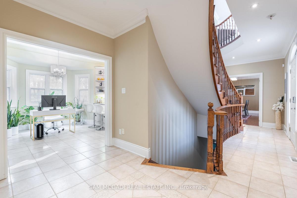 Nestled on a prestigious cul-de-sac in the Erin Mills neighbourhood of Mississauga, this stunning custom-built residence is a true masterpiece. Boasting over 5,000 sq. ft. of total living space, this elegant home offers a harmonious blend of sophistication and modern finishes. Step into the inviting open-concept main level, where seamless flow defines the space. The gourmet kitchen is a culinary dream, featuring top-of-the-line built-in appliances, ceramic floors, ample cabinetry, a bar, and a convenient pantry. Adjacent to the kitchen, the spacious living room, adorned with a cozy fireplace, creates an ambiance of warmth and relaxation. Expansive windows throughout the home bathe the interiors in natural light, while the walk-out access to the backyard promises easy indoor-outdoor living. Enjoy scenic views from the office, adding the perfect touch for remote work or study. The beautifully landscaped backyard is your personal retreat, offering privacy and serenity. Dive into the sparkling inground pool, relax on the interlocked patio, or simply unwind in this tranquil outdoor haven. Venture upstairs to discover the lavish Owner's suite, complete with vaulted ceilings, a spacious walk-in closet, and a spa-like 5-pc ensuite. Three additional bedrooms on this level offer either shared or private ensuite bathrooms, along with generous closet space, ensuring comfort and privacy for all family members. The fully finished walk-out basement is an entertainer's dream, featuring a large recreation room, an additional bedroom for guests, a den that can be transformed into a home theatre or playroom, and a sleek 4-piece bathroom. Offering ample parking with a 3-car garage and a private driveway, this remarkable property is an absolute must-see! Situated among convenient amenities including: top-rated schools, parks, walking trails, Erin Mills Town Centre, premium dining, Credit Valley Hospital, easy access to Hwy 403/401/407, public transit, and GO Station.
