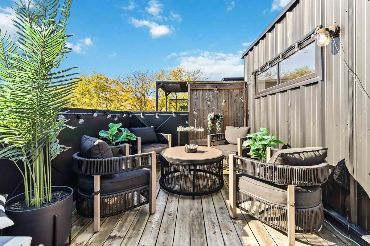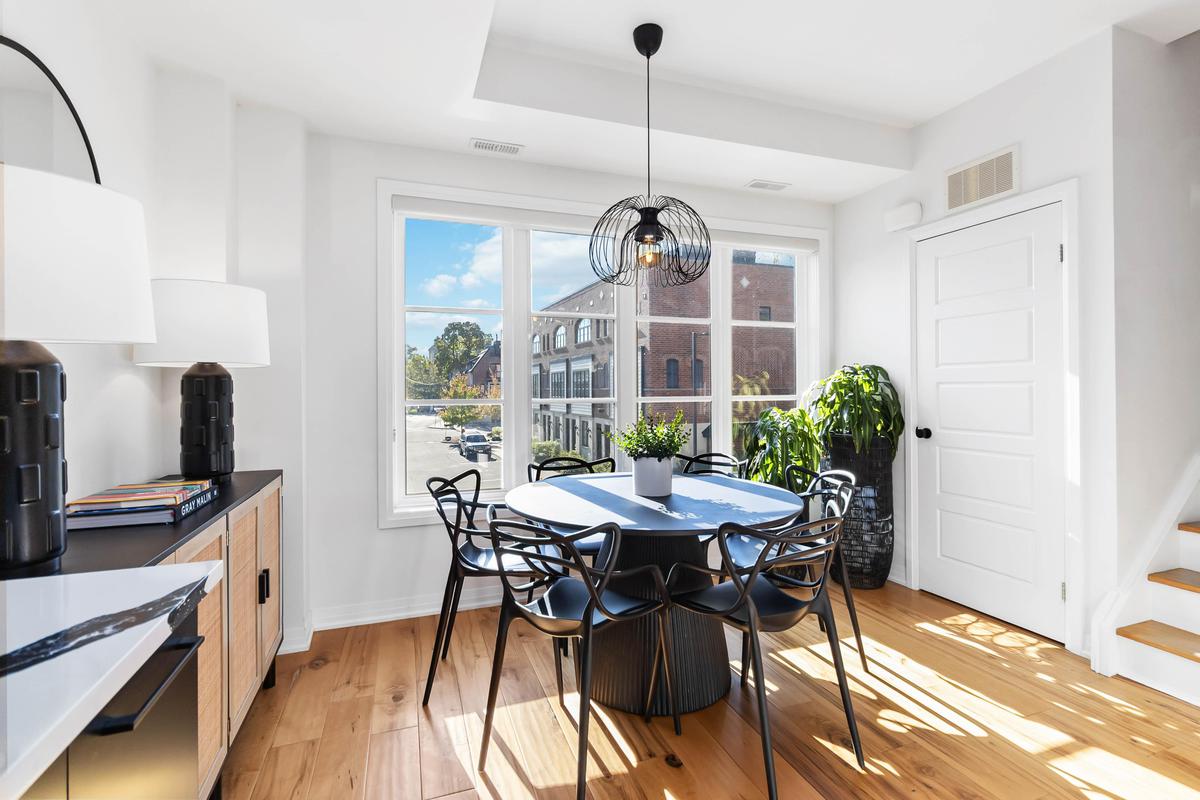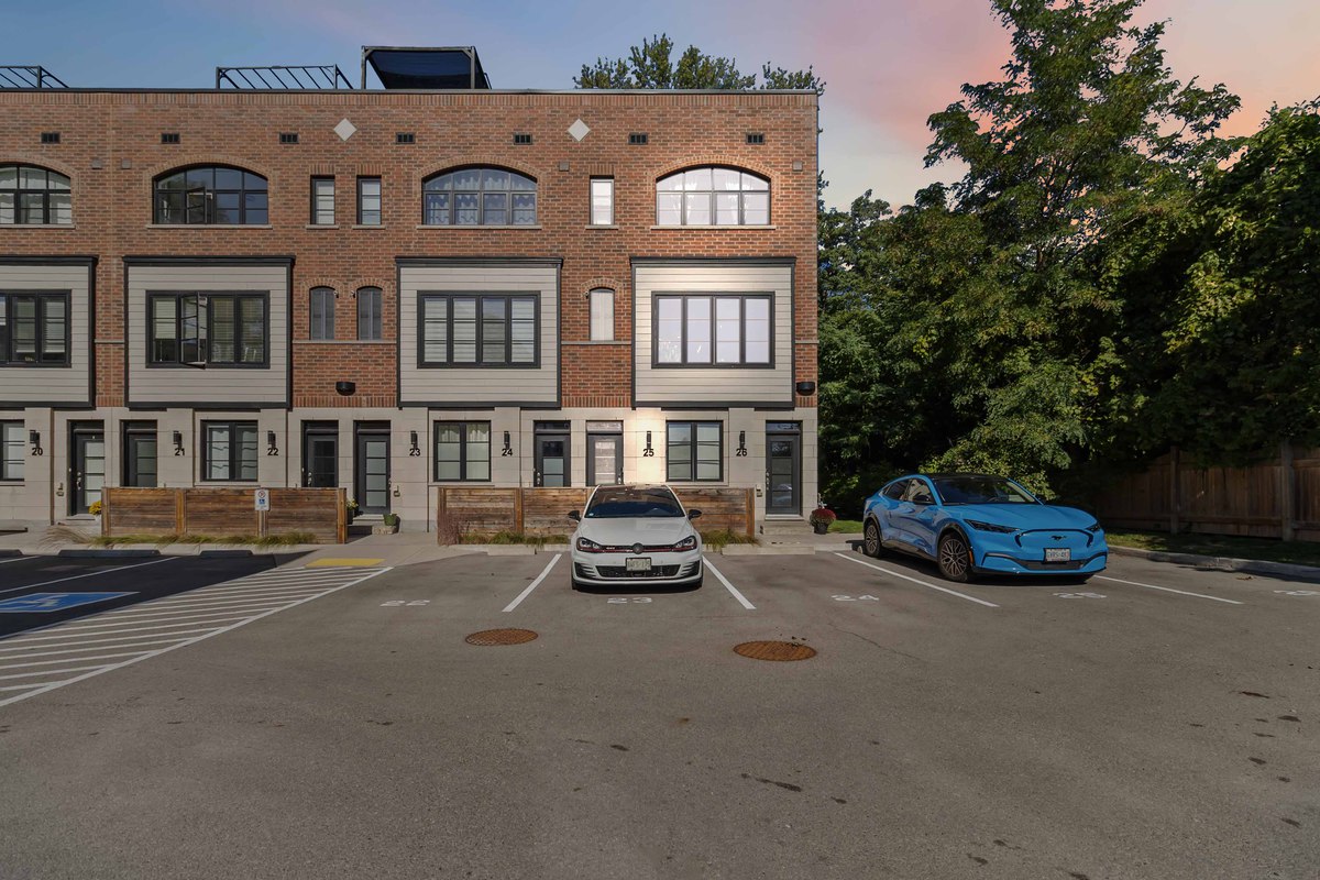Welcome to this beautifully upgraded end-unit townhome located in the sought-after community of Aldershot. Offering over 1500 square feet of meticulously designed living space, this three-bedroom, two-and-a-half-bathroom residence boasts two parking spots and is fully equipped as a connected smart home with digital keyless entry, an ecobee thermostat, camera, and security system. Inside, the home is bathed in natural light and features elegant, high-end finishes throughout. The heart of the home is the inviting kitchen, which is a chef's dream, featuring sleek new Caesarstone countertops with a striking custom waterfall island, new cabinet doors and hardware, and a brand-new sink and tap. High-end appliances, including an induction range and a stainless hood vent, complete the space. The main living area exudes warmth and modern style, anchored by beautiful engineered hardwood floors and a chic Chicago brick feature wall, creating an ideal setting for entertaining. A convenient two-piece powder room completes this level. The upper floor holds the sleeping quarters, including a spacious primary bedroom featuring a walk-in closet and a lovely three-piece ensuite with glass shower doors and all-new hardware. A charming third bedroom offers sliding glass doors leading to a juliette balcony. This level also includes a four-piece main bathroom with a high-end vanity and practical bedroom-level laundry. The property is crowned by an amazing rooftop terrace, providing the perfect space for outdoor entertaining or simply enjoying the views. The location is unbeatable for commuters, offering easy access to major highways and the GO Station. Enjoy a balanced lifestyle with nearby amenities, including the RBG, shopping, and scenic trails.