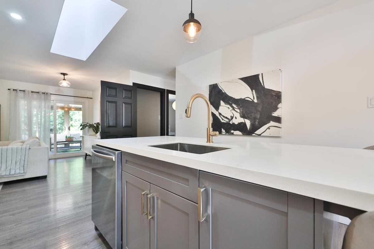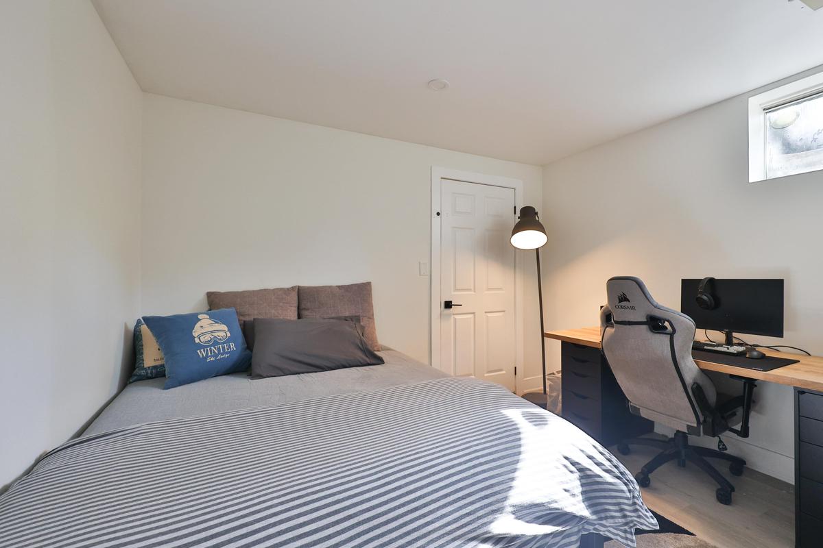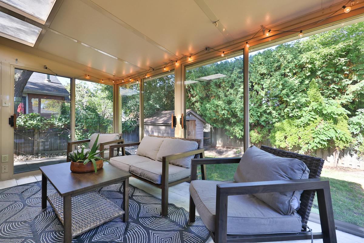 Discover the perfect blend of character and modern living in this beautifully renovated bungalow. Bright and open, the home features updated flooring, stylish finishes, and a thoughtfully redesigned kitchen with sleek cabinetry, contemporary center island and countertops, stainless steel appliances - ideal for both everyday living and entertaining in your family room, or enjoy quiet time in the living room. Spacious 2 bedrooms on the main floor offer plenty of storage, while the updated bathroom adds a fresh, modern touch. A finished lower level provides additional 2 bedrooms and versatile space for the family room, home office, or guest suite. Three season sun room, landscaped yard and spacious deck create the perfect setting for relaxing or hosting gatherings. Located in a highly sought-after, family-friendly neighborhood, this home is just steps from schools, parks, and playgrounds. Enjoy the convenience of being within walking distance to a vibrant downtown and the scenic lakefront where you'll find boutique shops, restaurants, and trails. With countless amenities close by, this property offers both comfort and lifestyle. Move-in ready and full of charm, this renovated bungalow is the ideal place to call home.