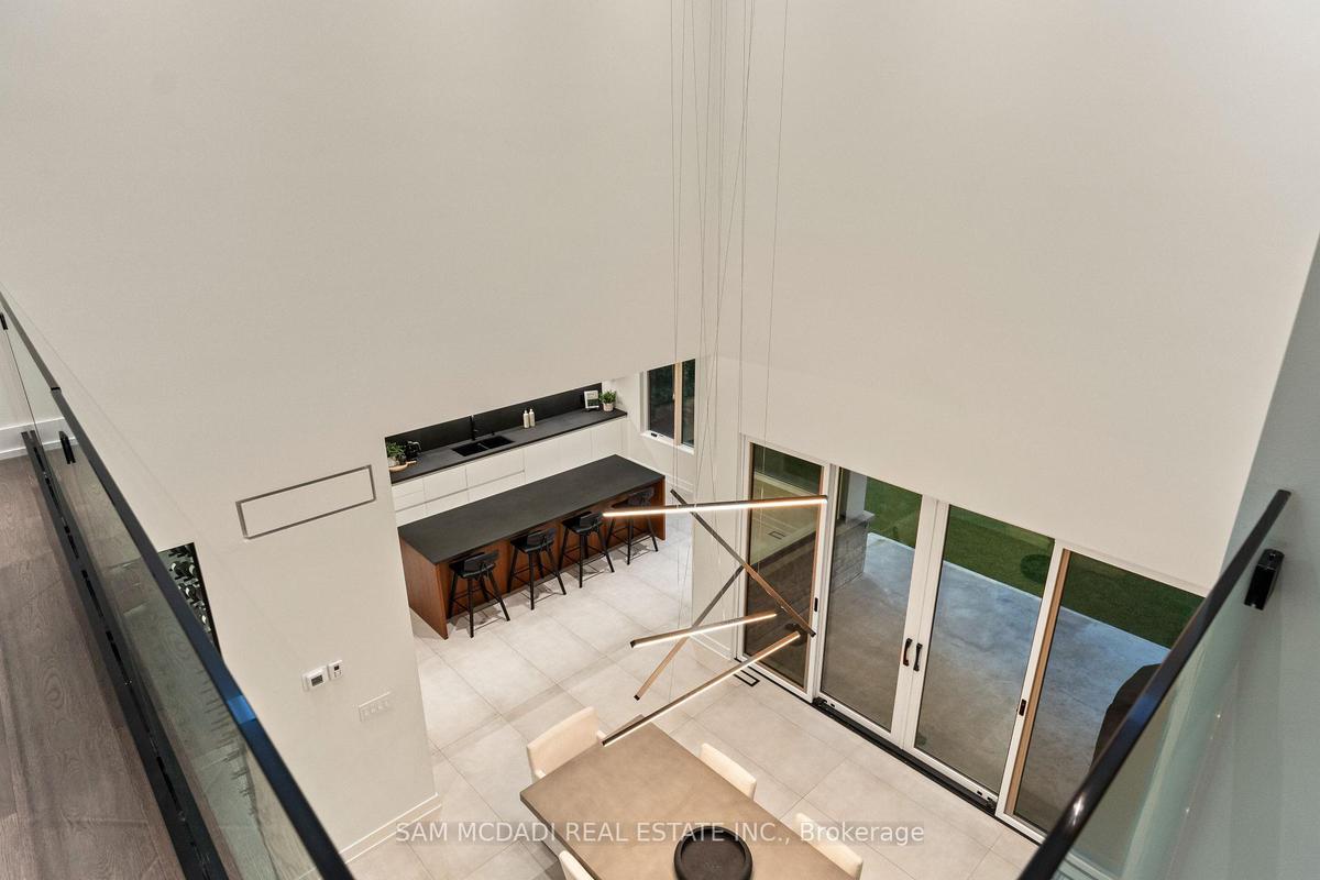 Welcome to 2075 Shawanaga Trail, tucked within the prestigious Sheridan enclave. This elegant residence offers over 6,000 SF of finished living space, thoughtfully designed with 5 bedrooms and 6 bathrooms. A dramatic double-height foyer sets the tone, leading into light-filled interiors where oversized windows showcase the homes architectural elegance. Tray ceilings with recessed and cove lighting create a soft ambient glow, while a two-way gas fireplace anchors the open living and dining areas. A glass-enclosed wine display adds a sculptural statement, perfect for the discerning collector. The chef's kitchen features quartz countertops, integrated appliances, custom cabinetry and walk-in pantry. It flows seamlessly into the main gathering spaces with views of the private backyard. A covered patio invites year-round entertaining, while a main floor office offers quiet workspace. Above, the primary suite is a private retreat with dual walk-in closets and a spa-like ensuite with freestanding tub and glass shower. Three additional bedrooms feature walk-in closets and private or semi-ensuite baths. A second-floor laundry room adds convenience. The finished lower level boasts 9-foot ceilings, a full wet bar, expansive recreation room, guest suite with ensuite, and a flexible room ideal for media or fitness. Outdoors, the professionally landscaped backyard is framed by mature trees, offering privacy, tranquility, and space to customize. Additional highlights include engineered hardwood, built-in Sonos audio, newer roof and windows (2022), and ample parking. Located near Mississauga and Credit Valley Golf Clubs, University of Toronto Mississauga, and highly acclaimed schools. Just minutes to the QEW, 403, Port Credit Village, and scenic waterfront trails.