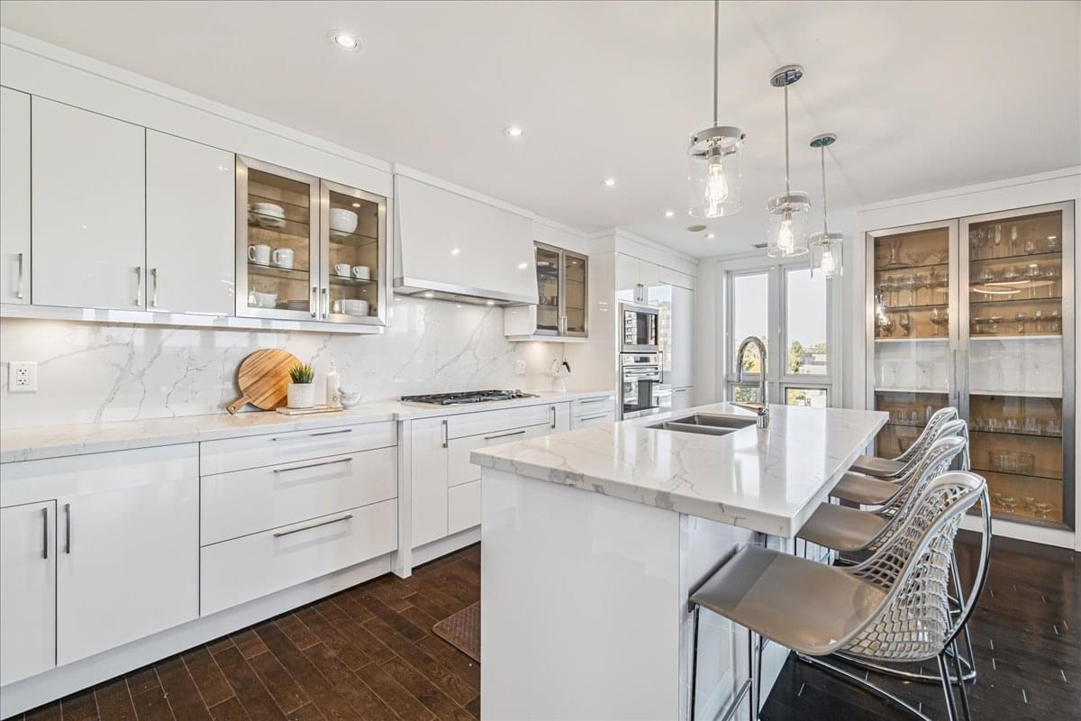 A truly rare opportunity awaits the discerning few. Imagine securing one of only two sprawling, south-facing terraces at the prestigious One Eleven Forsythe Street, presenting an unparalleled panorama over the shimmering waters of Lake Ontario and the charming cityscape of downtown Oakville. This is more than a residence; it is a statement of unrivaled luxury and position. Spanning over 2,335 square feet of exquisitely appointed living space, this remarkable 2+1 bedroom, 2.5 bathroom unit seamlessly blends functional brilliance with sumptuous finishes. The open-concept main floor is an entertainers masterpiece, centered by a custom gourmet kitchen that would inspire any chef. It is anchored by a magnificent oversized island and features a suite of top-tier appliances, including a Wolf gas range, Sub-Zero refrigerator.The adjacent open-concept living room is bathed in natural light, thanks to floor-to-ceiling windows that frame the magnificent views. A captivating gas fireplace provides a warm, sophisticated focal point, and the space offers seamless access to two spacious balconies, further enhancing the indoor-outdoor living experience. Prepare to be utterly captivated by the astounding 445 square foot south-facing terrace. The sun-filled primary suite is a haven of relaxation, also offering direct walk-out access to the magnificent terrace. Ownership here grants you immediate access to the finest amenities Oakville has to offer. Step outside and immerse yourself in the vibrant local culture from enjoying your morning espresso at a favorite caf"É© to enjoying live music in the park, indulging in fine dining, and taking rejuvenating lakeside strolls. This is, unequivocally, a one-of-a-kind opportunity to secure a piece of Oakville's most exclusive real estate. It is an experience not to be missed.