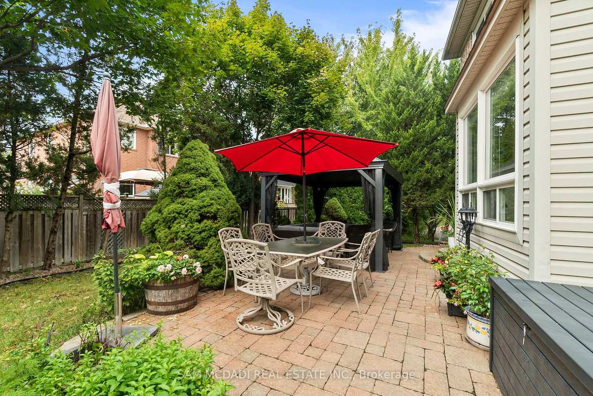 Discover the timeless charm of 3859 Pondview Way, a beautifully maintained 4-bedroom, 3.5-bathroom home in the desirable Avonlea on the Pond community. Perfectly positioned at the end of a quiet cul-de-sac and surrounded by the natural beauty of Osprey Marsh, this residence offers a rare combination of privacy and picturesque views. It is an ideal retreat for families seeking comfort, tranquility and convenience. Designed with growing families in mind, the home features a bright and functional layout. The main floor welcomes you with a formal living and dining room enhanced by a charming bay window, while the cozy family room features a gas fireplace, hardwood floors, and expansive windows overlooking the backyard. The functional kitchen is equipped with granite countertops, a center island, stainless steel appliances, a pantry, double sink, and tile flooring, along with a walkout to the stone patio. Upstairs, four spacious bedrooms and two full bathrooms offer ample space for everyone. The primary suite stands out with two walk-in closets and a 4-piece ensuite featuring a soaker tub and separate shower. A convenient second-floor laundry room adds everyday practicality. The finished lower level expands the living space with a large recreation room, a dry bar, pot lights throughout, and an additional 4-piece bathroom. Outside, enjoy beautifully landscaped front and backyards including a welcoming porch, lovely gazebo, and stone patio perfect for gatherings or quiet relaxation. The interlocked driveway and double garage offer parking for up to six vehicles. Prime location, this exceptional home is just minutes from Lisgar GO Station, schools, SmartCentres Meadowvale, Meadowvale Town Centre, Lake Aquitaine trails, and major highways (401, 403, and 407). With its tranquil pond views, welcoming community, and family-oriented design, 3859 Pondview Way offers the perfect balance of natural beauty, comfort, and convenience.