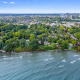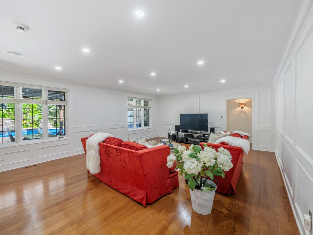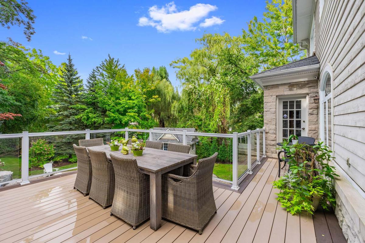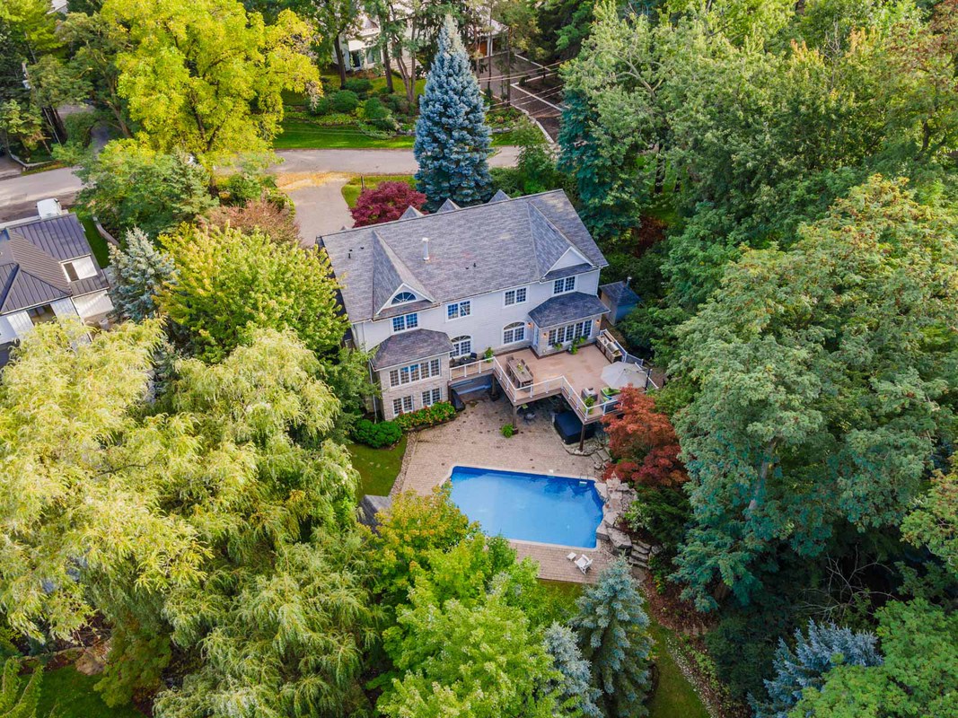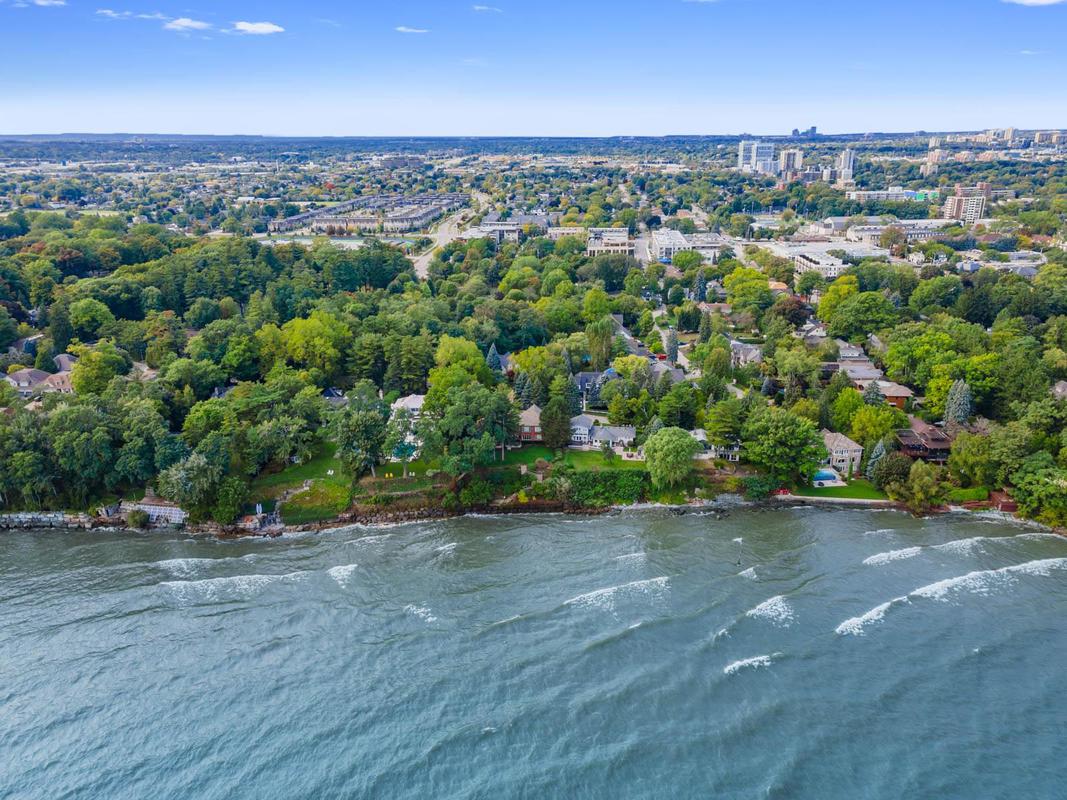 Located in coveted West Harbour, come discover tranquility and elegance at 235 Lakewood Drive. Nestled on a generous .56-acre lot, embraced by majestic foliage in a private cul-de-sac, this residence epitomizes serene living mere steps from the lake. Crafted by renowned architect Gren Weis, the fusion of stone and wood siding spans over 6,200 square feet. Step into the foyer with its soaring cathedral ceilings, offering glimpses of the expansive living spaces beyond. Designed for seamless flow, this sophisticated layout effortlessly accommodates both grand and intimate gatherings. A bespoke oak staircase adorned with shimmering Schonbek chandeliers leads to the upper levels, where solid oak hardwood flooring graces much of the home. The living room boasts exquisite millwork, custom fireplace, and state-of-the-art entertainment amenities by Canadian Sound Ltd. The gourmet kitchen, recently reimagined, features top-tier appliances, quartz countertops, and abundant storage, with access to a sprawling composite, low maintenance deck. A stately maple wood-paneled study overlooks manicured gardens, providing a serene retreat. Five generous bedrooms, each with an ensuite and ample closets, offer luxurious comfort. The primary suite is a haven of indulgence, flaunting dual walk-in closets, spa-like ensuite with airy vaulted ceilings, skylights, and deluxe fixtures. The lower level is all about leisure and function, boasting a custom-painted wood-paneled rec room with lakeside vibes, alongside a gym, wine cellar, and top-notch utility room. Outside, the meticulously landscaped grounds offer a saltwater pool with waterfall, a spa, and outdoor entertainment system, perfect for alfresco movie nights. This home boasts a brand new roof with lifetime warranty! Stroll to lovely downtown Oakville, trendy Kerr Village, Tannery Park along the Lake & waterfront trails. Close proximity to highly esteemed schools.