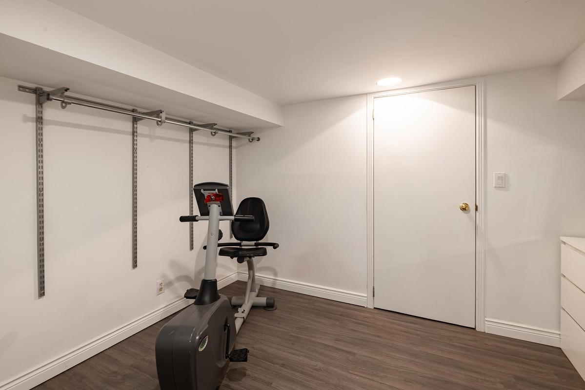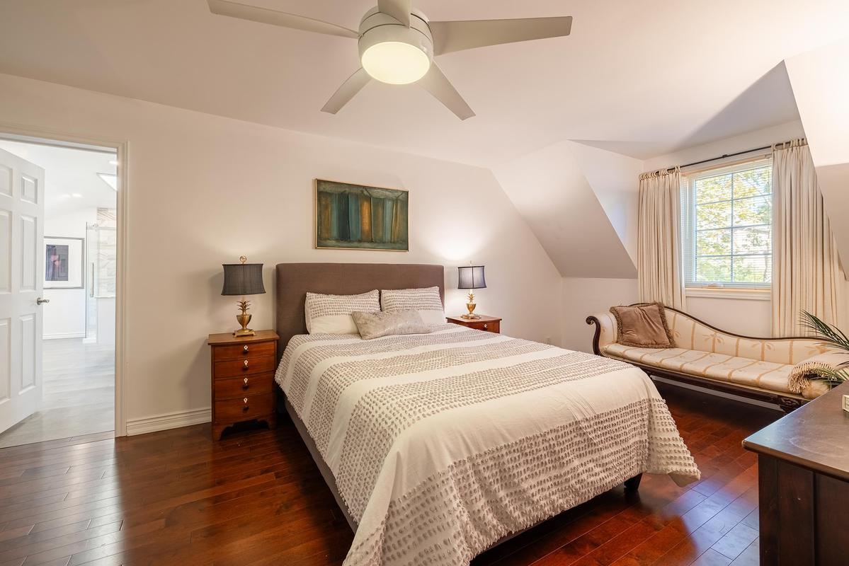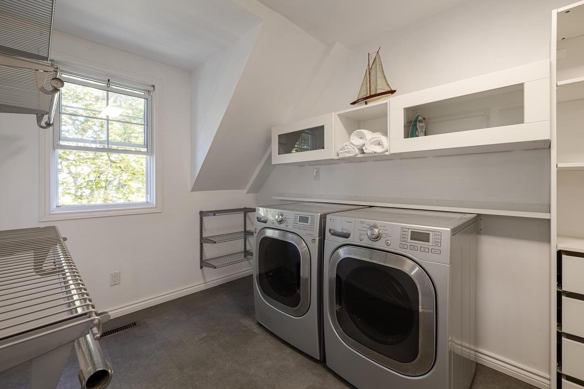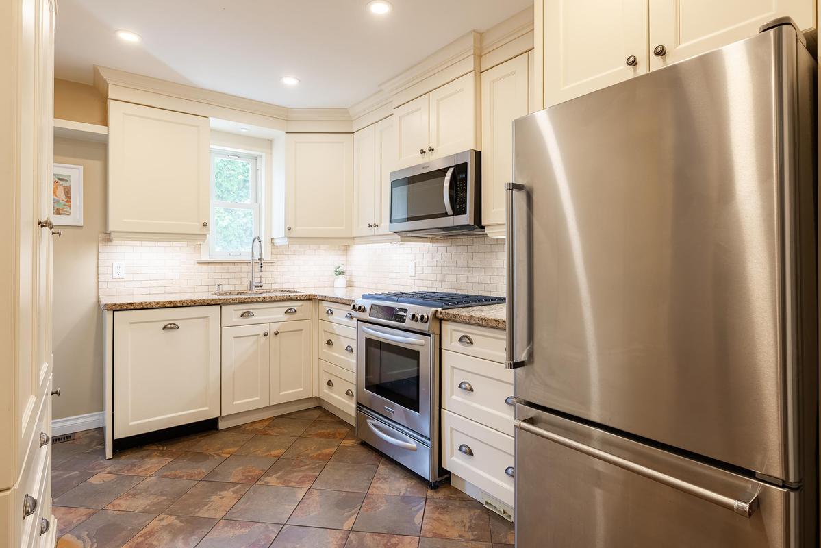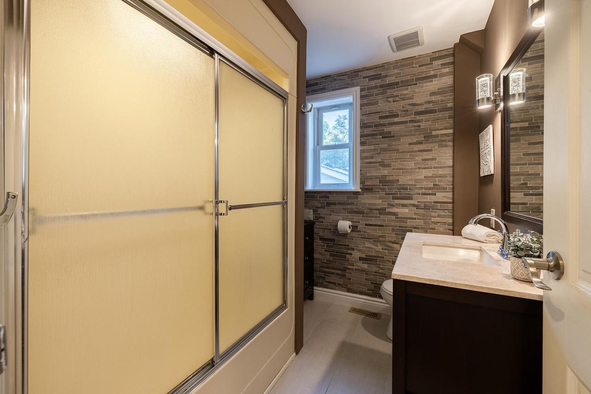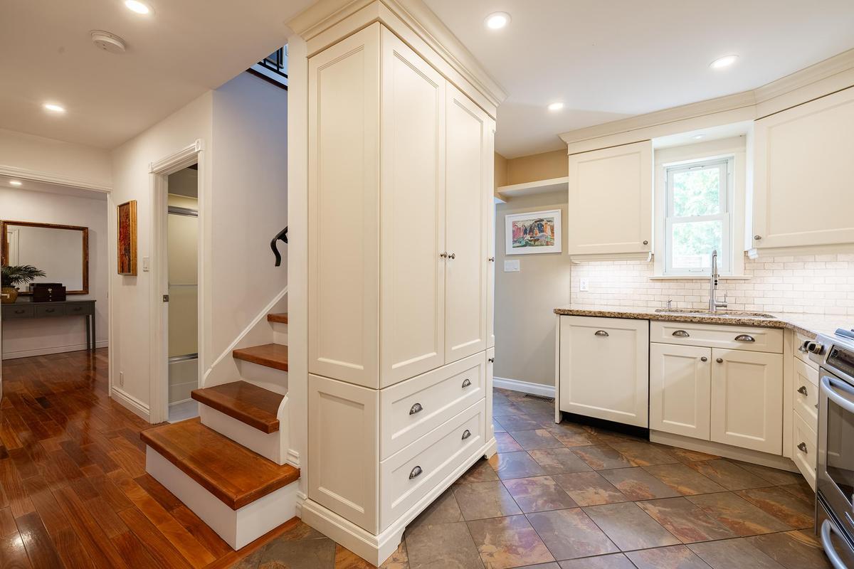 The lower level is bright and above grade, featuring a spacious recreation room with gas fireplace, a built-in wine cooler, powder room and two walkouts leading to the private, landscaped backyard framed by mature greenery.