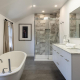 Upstairs, the primary suite includes a walk-in closet and a spa-like ensuite with soaker tub, glass shower and double vanity. Two additional bedrooms share a full bath, while a dedicated office and large laundry room enhance everyday convenience.