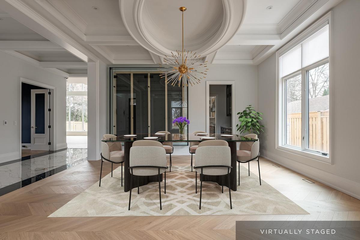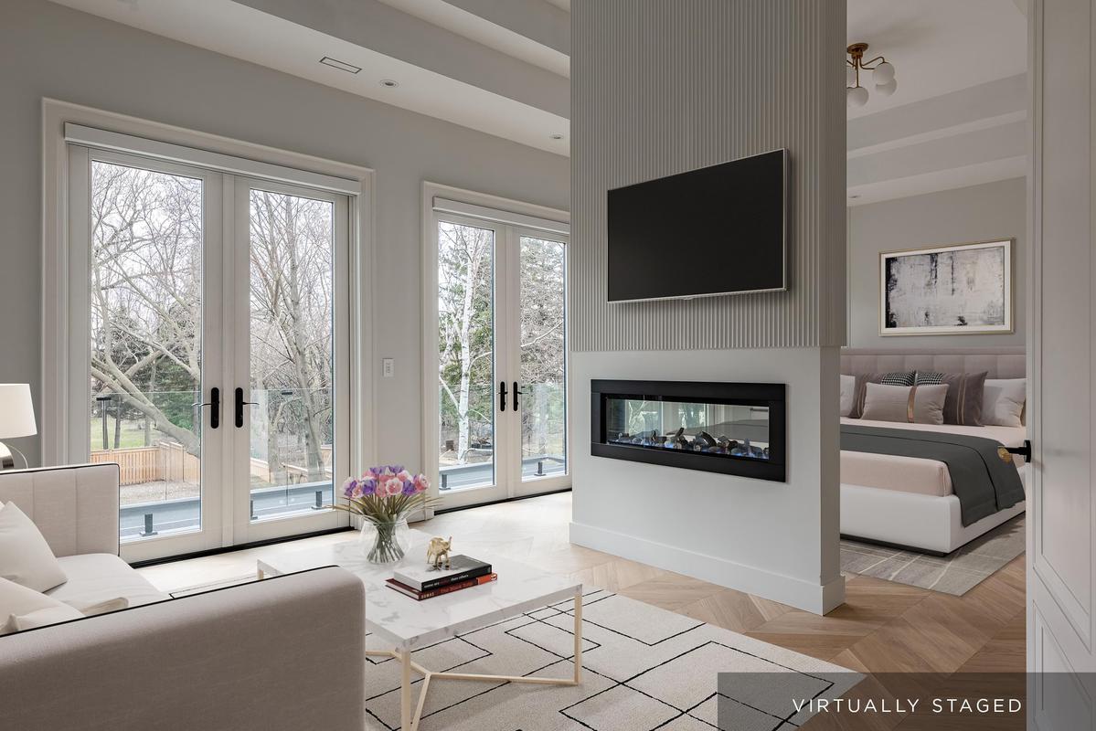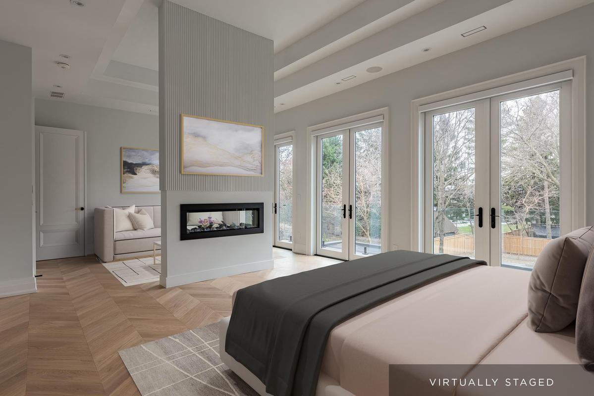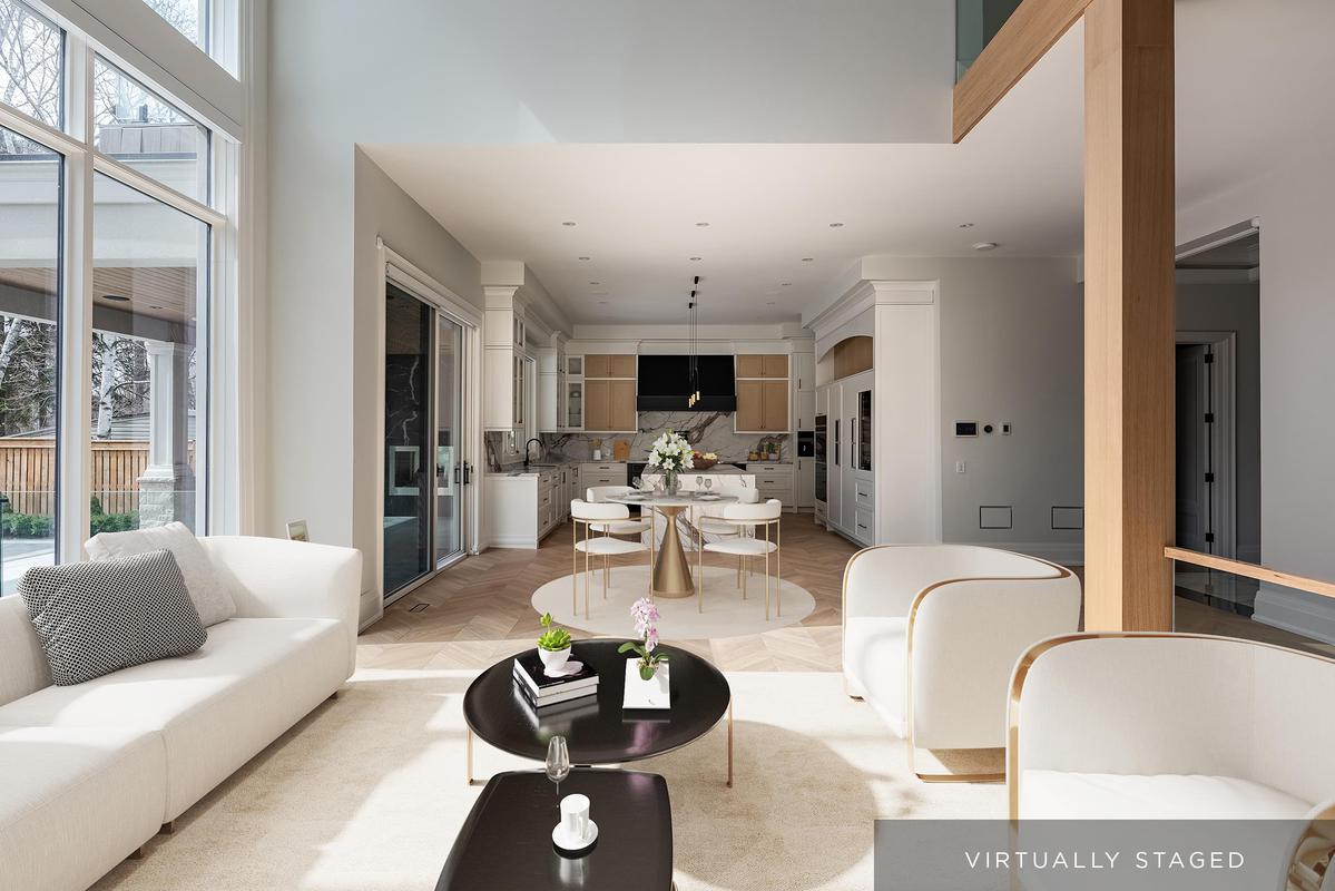 Set back on an expansive estate lot, this custom-built home offers nearly 9,000 sq ft of expertly curated living space, complete w/6 bedrooms + 8 bathrooms. Every inch of this residence reflects refined comfort + thoughtful design, blending texture, clean lines, open sightlines + a seamless connection to the outdoors. Inside, each space is anchored by custom-milled mouldings, bold stone, designer lighting, imported wood finishes, expansive glazing + smart home integration. The heart of the home is a chef's kitchen with walk-in pantry + servery, flowing into a two-storey family room w/full-height windows + a dramatic fireplace feature wall. A functional utility wing includes ample storage + a pet wash station. The central staircase serves as a sculptural focal point, carrying light + elegance to the upper levels. Each bedroom suite offers privacy and sophistication, with custom dressing rooms + lavish ensuites. The primary retreat is a true sanctuary-double doors lead to a lounge + sleeping quarters w/a two-sided fireplace, private patio access, a fully outfitted dressing room + a luxe bath w/steam shower + soaker tub. A third-floor suite offers flexibility as a second primary or teen haven.The walk-out lower level expands the living space w/a custom wet bar, games area, theatre, rec room with fireplace + a private nanny suite. Outdoors, the home continues to impress with a spacious portico with central gas fireplace, flat-stone patios + a lush, tree-lined yard-perfect for summer entertaining or quiet evenings. Central to several local schools, shopping and walkable to Appleby College. An exceptional home in West Oakville, offering the space, design, and comfort your family has been looking for.