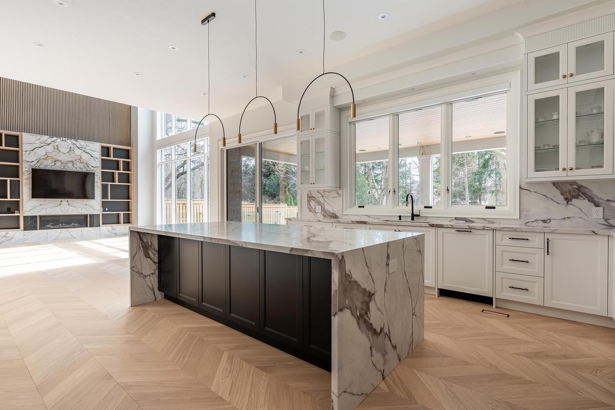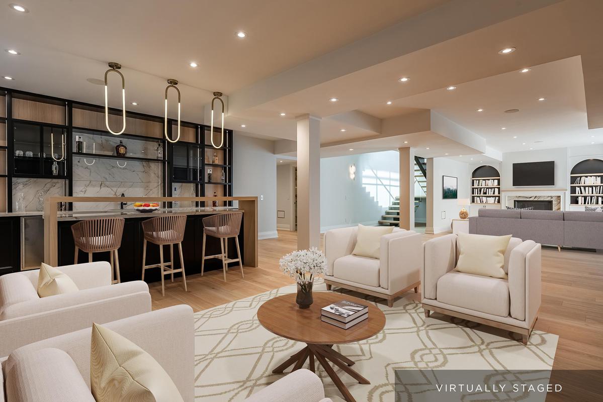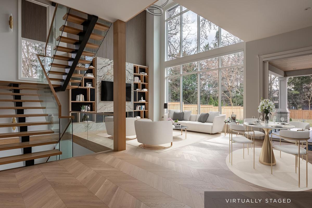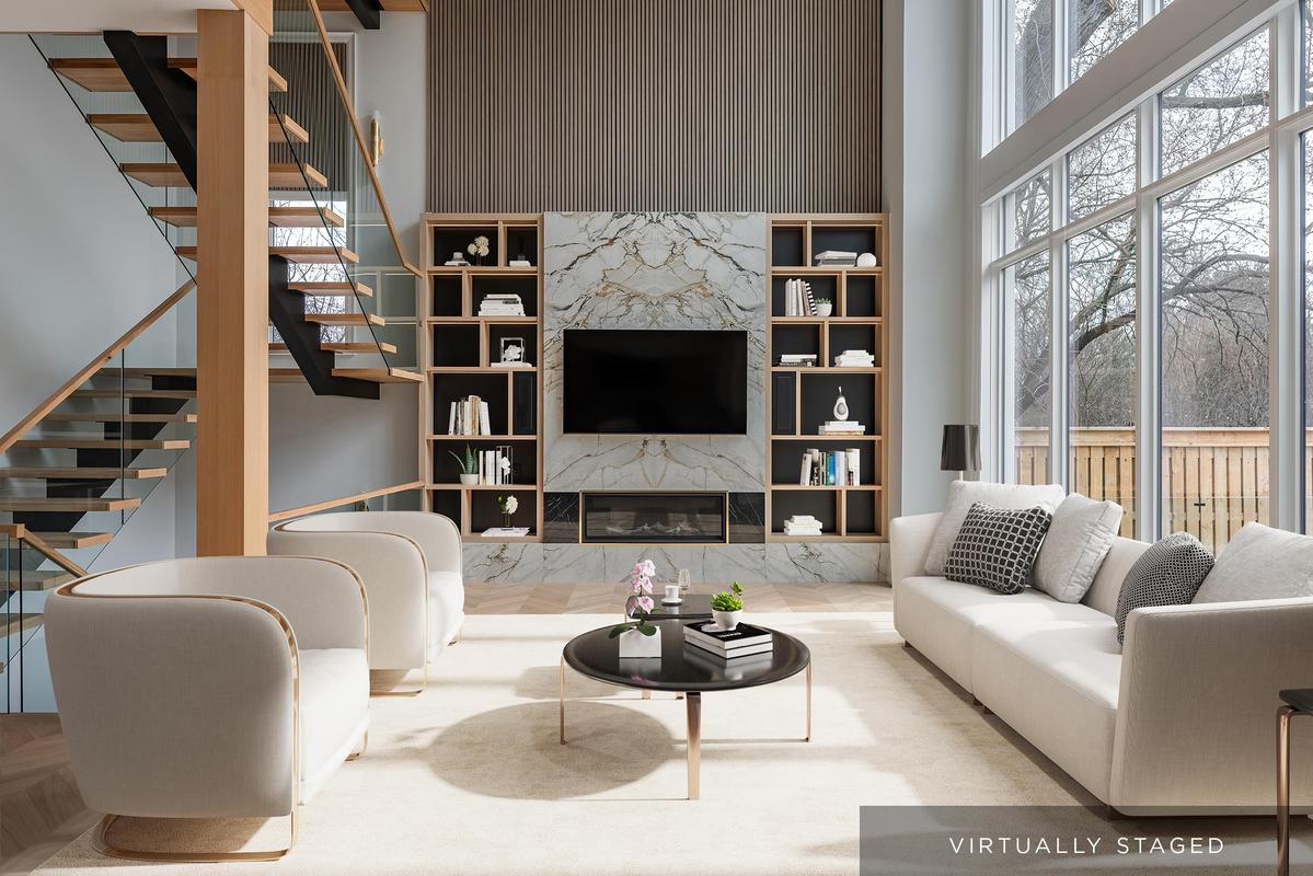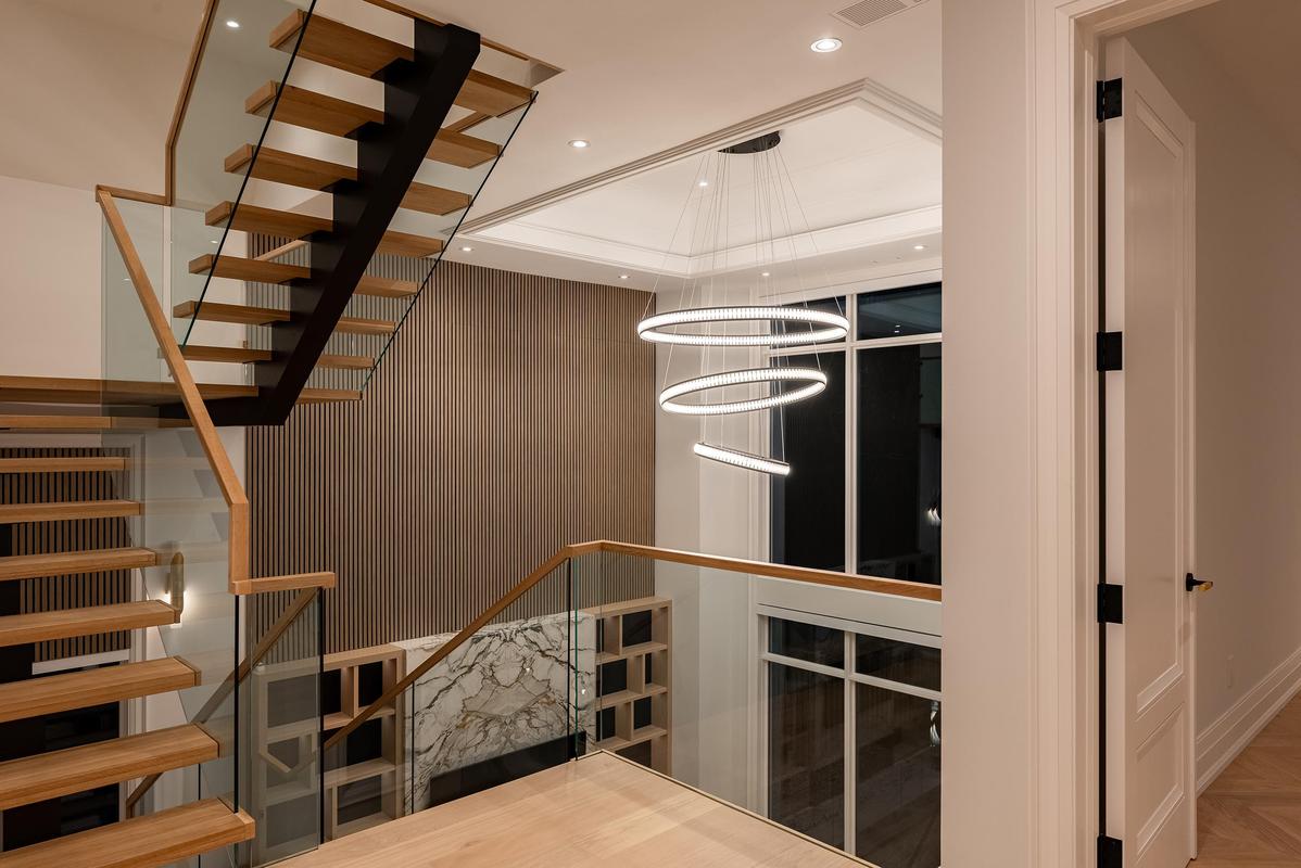 Set back on an expansive estate lot, this custom-built home offers nearly 9,000 sq ft of expertly curated living space, complete w/6 bedrooms + 8 bathrooms. Every inch of this residence reflects refined comfort + thoughtful design, blending texture, clean lines, open sightlines + a seamless connection to the outdoors. Inside, each space is anchored by custom-milled mouldings, bold stone, designer lighting, imported wood finishes, expansive glazing + smart home integration. The heart of the home is a chef's kitchen with walk-in pantry + servery, flowing into a two-storey family room w/full-height windows + a dramatic fireplace feature wall. A functional utility wing includes ample storage + a pet wash station. The central staircase serves as a sculptural focal point, carrying light + elegance to the upper levels. Each bedroom suite offers privacy and sophistication, with custom dressing rooms + lavish ensuites. The primary retreat is a true sanctuary-double doors lead to a lounge + sleeping quarters w/a two-sided fireplace, private patio access, a fully outfitted dressing room + a luxe bath w/steam shower + soaker tub. A third-floor suite offers flexibility as a second primary or teen haven.The walk-out lower level expands the living space w/a custom wet bar, games area, theatre, rec room with fireplace + a private nanny suite. Outdoors, the home continues to impress with a spacious portico with central gas fireplace, flat-stone patios + a lush, tree-lined yard-perfect for summer entertaining or quiet evenings. Central to several local schools, shopping and walkable to Appleby College. An exceptional home in West Oakville, offering the space, design, and comfort your family has been looking for.