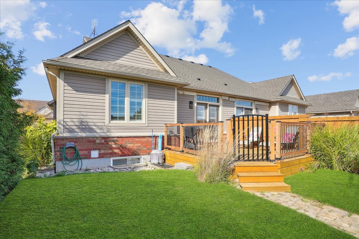Awesome Bungalow semi with 2+1 BRs, 2.5 baths on a desirable street in beautiful wine country! Spacious yet cozy one floor living perfect for downsizing, starting out and small family living. This classic open concept design features 9' ceilings, hardwood floors, California shutters; upgraded kitchen with tons of cabinets & counters; den/bedroom with custom built ins, main floor laundry; spacious primary suite with ensuite; large finished basement, perfect for the Uni kids with rec rm, bedroom & full bath; plenty of storage space. Exposed aggregate drive, east facing backyard with deck in large landscaped yard, covered front porch perfect for enjoying the sunset or rainy summer nights!