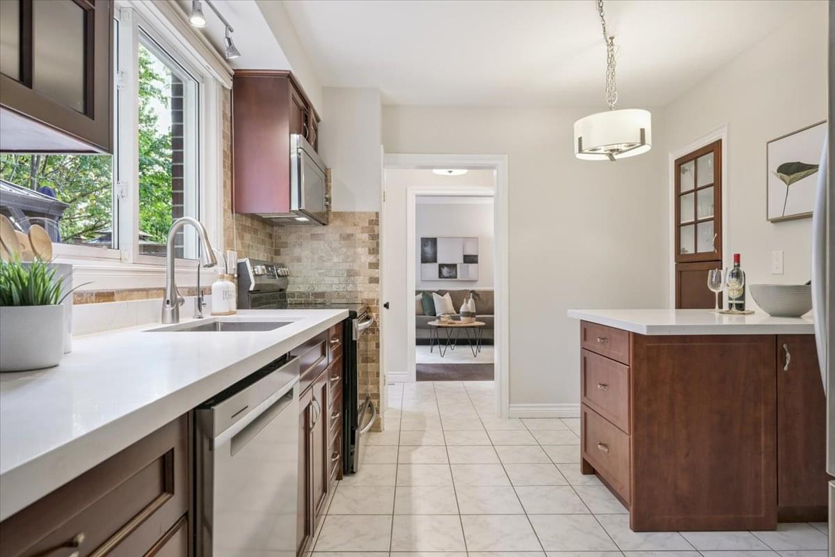 Discover this fantastic 4-bedroom, 3-bathroom home, offering over 2,500 sq. ft. of total living space in the family-friendly and highly sought-after neighbourhood of Sheridan Homelands. Nestled on a private, 67 by 120-foot treed lot, this property boasts exceptional curb appeal and an unbeatable location. Step inside, where classic charm meets modern updates on the bright main floor. Gleaming hardwood floors flow from the spacious living and dining areas into a beautifully renovated kitchen-the true heart of the home. This stunning space features quartz countertops, a peninsula quartz island, stainless steel appliances, and a walkout to the backyard. The cozy family room, complete with a wood-burning fireplace and French doors, opens onto a large stone patio, creating a seamless indoor-outdoor flow perfect for entertaining. Upstairs, the hardwood continues throughout four generous bedrooms. The primary suite is a private retreat offering a double closet and a 3-piece ensuite. A well-appointed 4-piece main bathroom serves the 3 additional spacious bedrooms. The finished basement adds valuable living space with a large recreation room, a separate laundry room, and ample storage. Offering exceptional privacy, the substantial, fully-enclosed backyard presents a canvas for recreation and relaxation. Enjoy an active lifestyle with Thornlodge Park, Sheridan Tennis Club, pickleball courts, and the South Common Recreation Centre all just a short walk away. Benefit from a premium location neighbouring Oakville, with easy access to the QEW and 403. You are just moments from the Clarkson GO Station, top-rated schools, the University of Toronto (UTM), shopping, and the Port Credit Marina. This home is thoughtfully designed for a comfortable family living in a truly exceptional community.