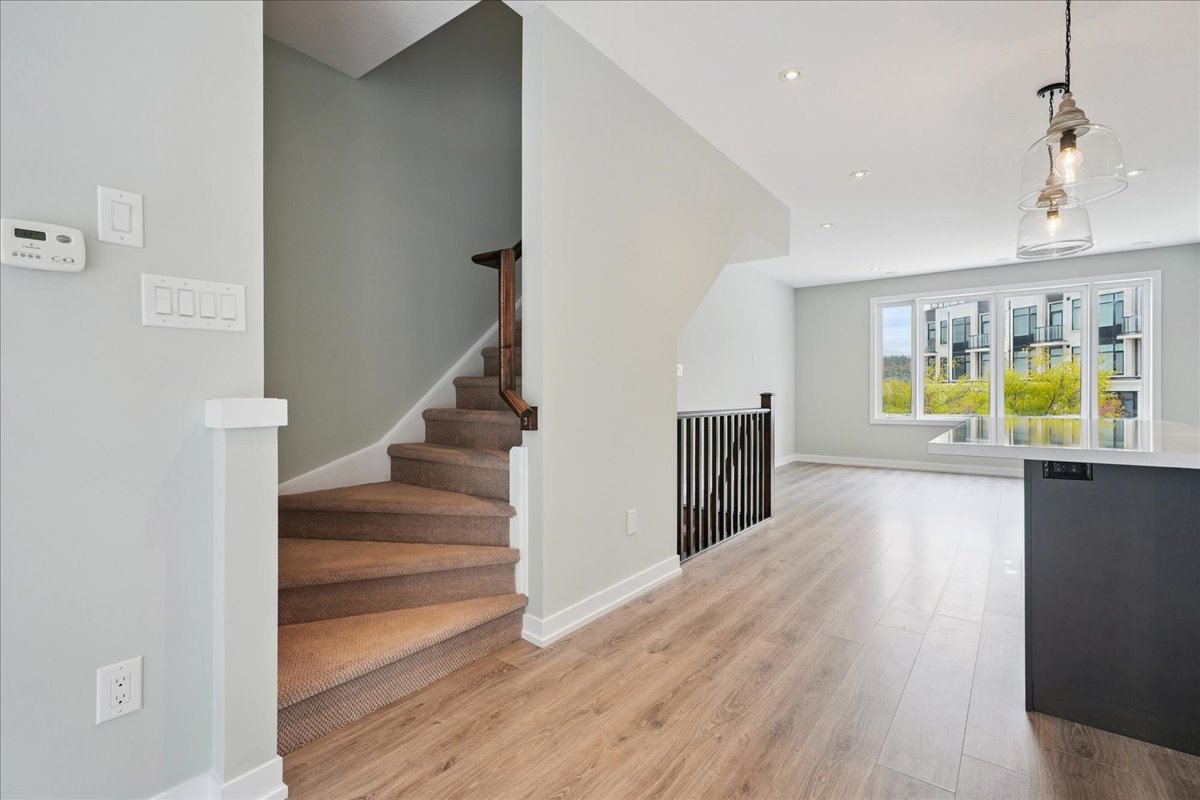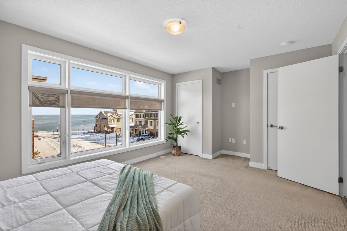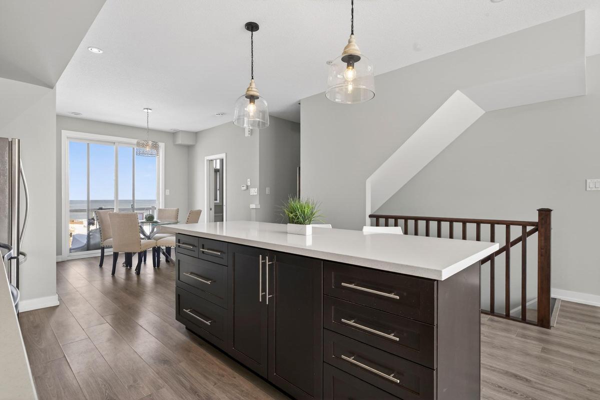Welcome to Grimsby on the Lake - the vibrant waterfront community known also as the Gateway to Niagara's Wine Country! This exceptional townhome is perfectly positioned to capture the best of both worlds - panoramic, unobstructed lake views to the north and lush Niagara Escarpment vistas and town core shops to the south. Step inside and be impressed by the bright, open-concept main level featuring soaring ceilings, upgraded modern kitchen with island and stainless-steel appliances, front-to-back luxury vinyl flooring, and a walkout to an elevated balcony where you can unwind and take in the views. Upstairs, you'll find two spacious bedrooms, two full bathrooms, and the convenience of in-suite laundry on the bedroom level. Outside your door, immerse yourself in the Grimsby on the Lake lifestyle - steps to boutique shops, local businesses, caf"ɩs, and waterfront restaurants, with the boardwalk, parkette, and lakeside trails just moments away. Experience lakeside living where every day feels like a getaway - and discover why this community has become one of Niagara's most desirable places to call home.