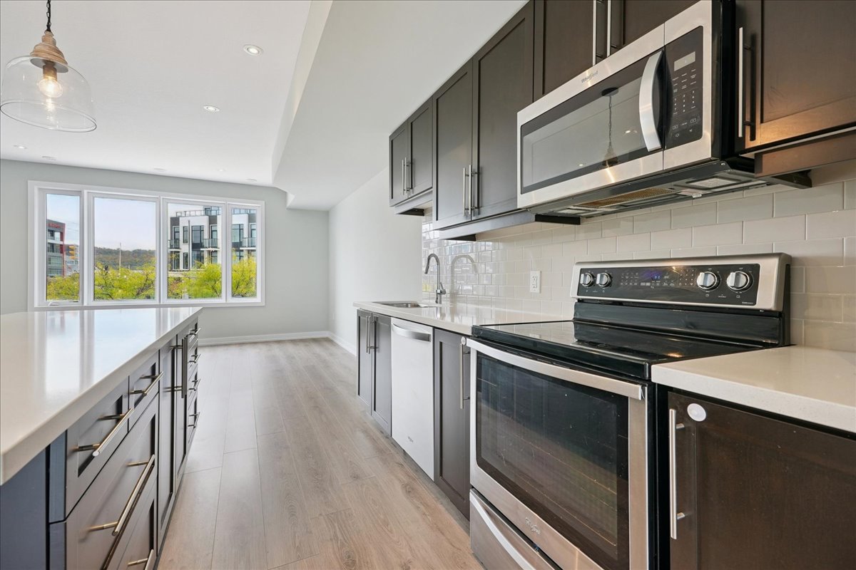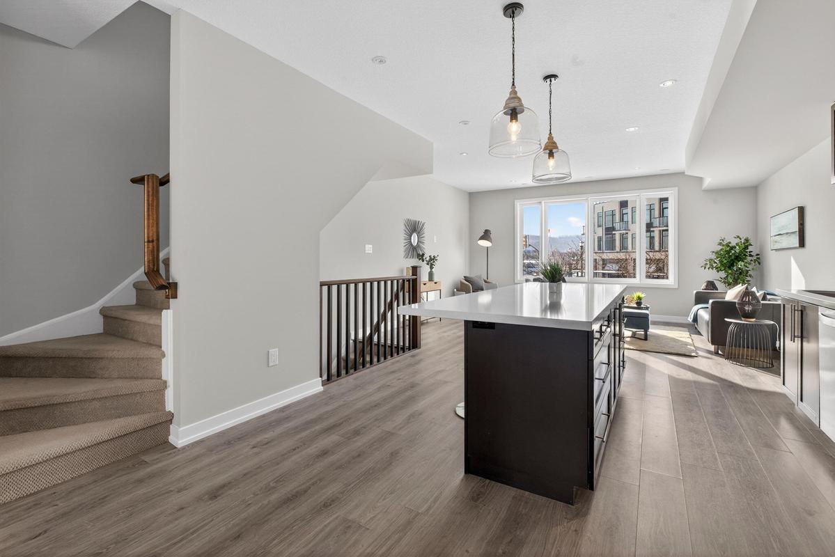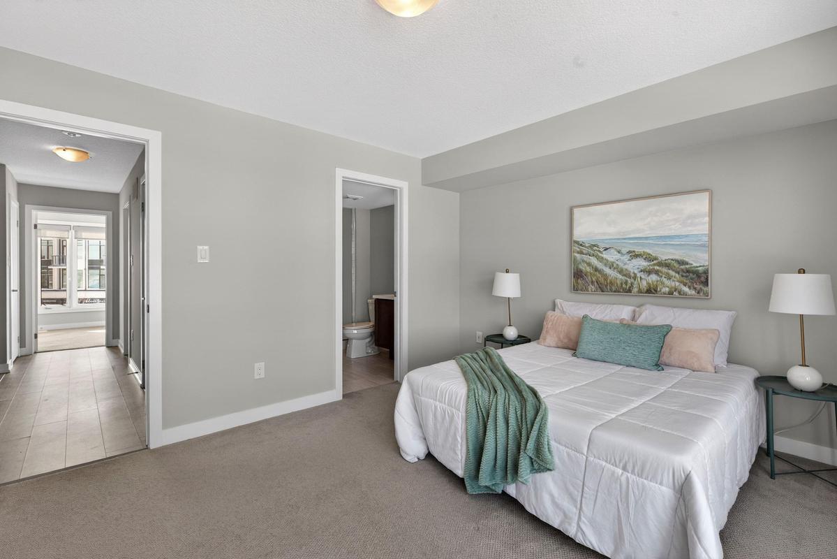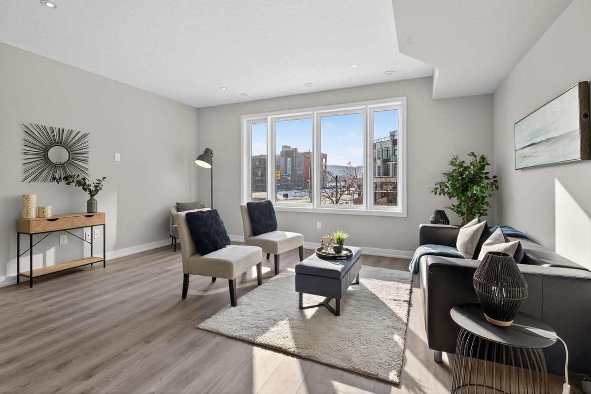 Welcome to Grimsby on the Lake - the vibrant waterfront community known also as the Gateway to Niagara's Wine Country! This exceptional townhome is perfectly positioned to capture the best of both worlds - panoramic, unobstructed lake views to the north and lush Niagara Escarpment vistas and town core shops to the south. Step inside and be impressed by the bright, open-concept main level featuring soaring ceilings, upgraded modern kitchen with island and stainless-steel appliances, front-to-back luxury vinyl flooring, and a walkout to an elevated balcony where you can unwind and take in the views. Upstairs, you'll find two spacious bedrooms, two full bathrooms, and the convenience of in-suite laundry on the bedroom level. Outside your door, immerse yourself in the Grimsby on the Lake lifestyle - steps to boutique shops, local businesses, caf"ɩs, and waterfront restaurants, with the boardwalk, parkette, and lakeside trails just moments away. Experience lakeside living where every day feels like a getaway - and discover why this community has become one of Niagara's most desirable places to call home.