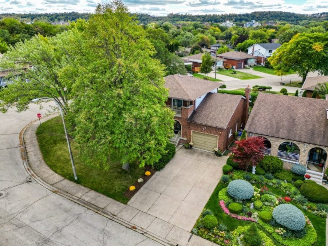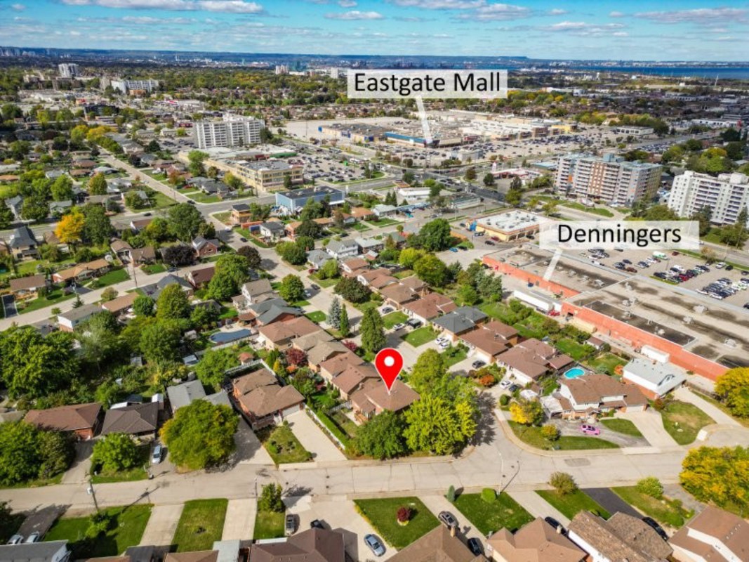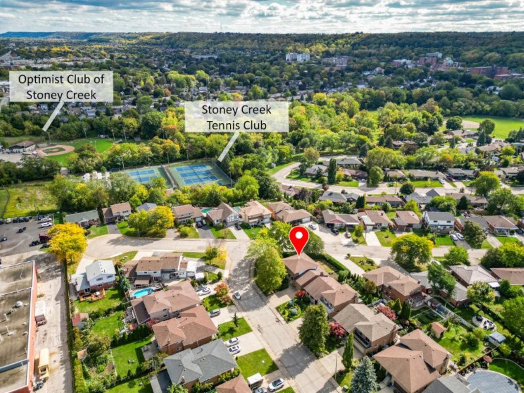 PERFECT FIT FOR FAMILY LIFE".A wonderful blend of warmth & functionality, this brick 2-storey is nestled in a quiet Stoney Creek neighbourhood w/stunning ESCARPMENT VIEWS. Proudly set on a CORNER LOT, the well-maintained property exudes charm inside & out. From the moment you arrive, the covered front porch invites you to sit back & relax. DBL CONCRETE DRIVEWAY provides parking for 4, complemented by an attached 1.5-car garage w/workbench & shelving - perfect for hobbyists or storage. Step inside a bright, welcoming foyer leading to a formal living room that flows seamlessly into the dining room - ideal spot for gatherings & entertaining. The kitchen connects to a SUN-FILLED DINETTE nook w/direct access to back deck & private yard, offering a perfect transition between indoor & outdoor living. The FAMILY ROOM featuring a cozy gas fireplace, and a 3-pc bath, completes the main floor. Upstairs, gleaming hardwood leads to four spacious bedrooms & 5-pc bath. Two bedrooms, incl. primary suite, feature WALKOUTS to a full-width front BALCONY, creating a peaceful retreat. A FULLY FINISHED BASEMENT adds versatility, with large recreation room, games room, cedar storage closet, big laundry/utility room, and spacious cantina w/plenty of shelving. Outside, unwind in the BEAUTIFULLY LANDSCAPED YARD, complete w/perennial gardens, privacy hedge & vegetable garden, all framed by picturesque escarpment views. Walk to charming downtown Stoney Creek w/cafes & restaurants, or Battlefield Park- a National Historical Site. Perfectly situated close to Eastgate Mall, Denningers, public transit, schools, shopping & QEW/Red Hill access PLUS just a 5 min drive to new Confederation GO station, 7 min drive to Confederation Park on Lake Ontario with its sandy beach, waterpark, restaurants & waterfront rec trail. This home offers a lifestyle of comfort and convenience in one of Stoney Creek's most desirable settings. CLICK ON MULTIMEDIA for virtual tour, drone photos, floor plans & more.