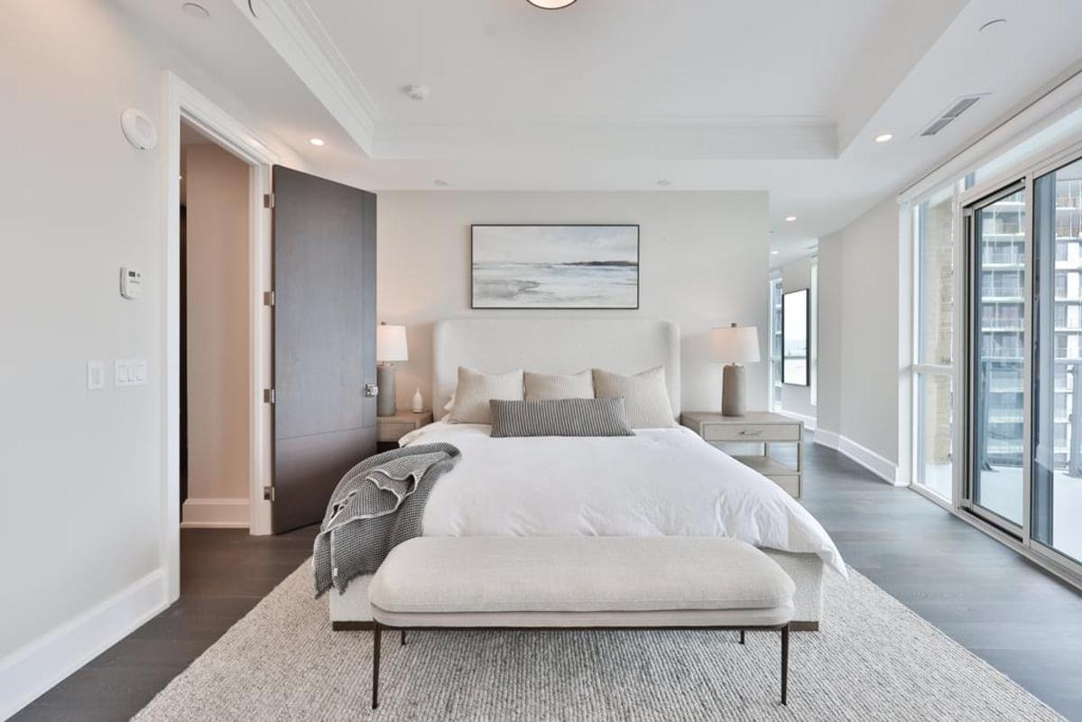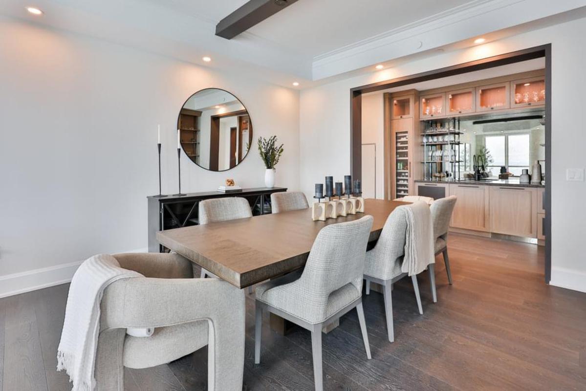 Occupying the entire east side of the Bridgewater Private Residences with The Pearl Hotel, this 3,234 sq ft sub-penthouse offers rare scale, privacy, and panoramic views. Available fully furnished and accessorized just bring your bags and move in. Uninterrupted sightlines span Lake Ontario south to Niagara, east to the CN Tower, and north over Burlington's downtown and the Escarpment. Dual entrances separate living and bedroom wings. Three bedrooms with private ensuites, a home office, wine cellar, and walk-in laundry with sink. Wide-plank hardwood, Restoration Hardware lighting, and a standout primary ensuite with heated floors, gold fixtures, and a lake-facing walk-in shower. Dining area with custom bar and second dishwasher. A glass-wrapped lounge hovers over the shoreline with front-row views. Includes three-car parking. Residents enjoy gym, spa, indoor pool, Isabel's, cafe, room service, weekly events, and private access to The Pearl Hotel. Steps to the lake and Burlington's best.