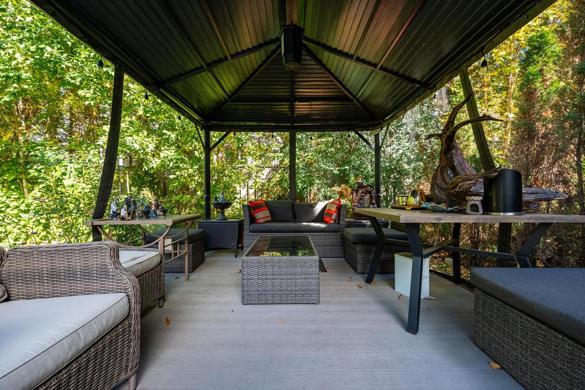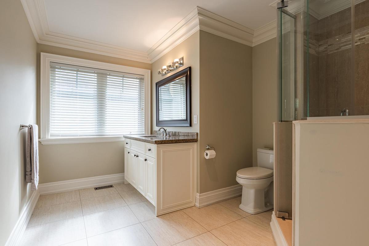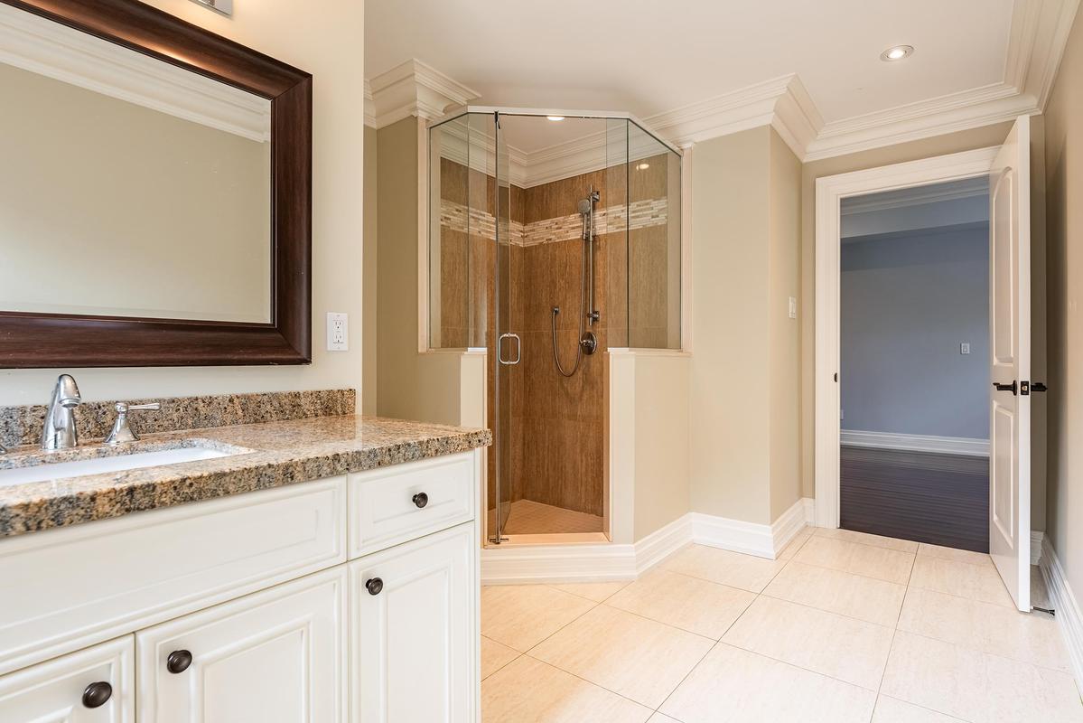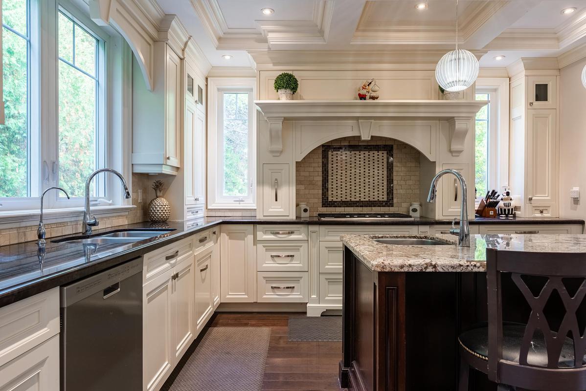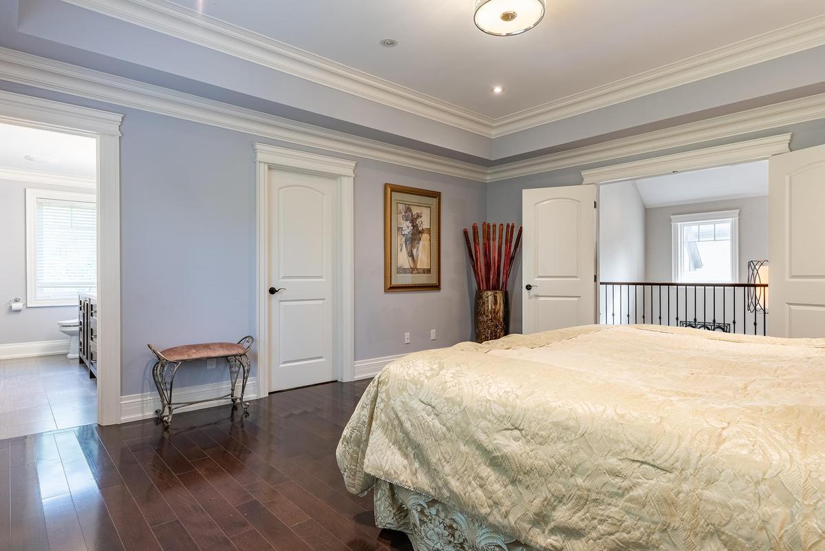 This distinguished custom-built two-storey residence offers over 5,600 square feet of refined living space, including 3,700 square feet above grade and nearly 2,000 square feet in a luxuriously finished lower level nestled within a prestigious Bronte East enclave. Step through the double entry doors into an impressive two-storey foyer crowned by soaring 20-foot ceilings and an open gallery overlook. Expansive transom windows bathe the space in natural light, highlighting the floating hardwood staircase with wrought-iron railings. The main level unfolds with an open-concept layout featuring hardwood floors, vaulted and recessed ceilings, French doors, custom millwork, and oversized picture windows that fill each room with light. The family room serves as a true architectural centerpiece with its 14-foot vaulted ceiling and floor-to-ceiling fireplace, while six additional rooms offer the flexibility to tailor each space to your lifestyle. The Chef's kitchen blends form and function with custom cabinetry, premium built-in appliances, and an expansive centre island ideal for both cooking and entertaining. The upper level hosts four spacious bedrooms, including a primary suite overlooking the rear and side gardens. This retreat features a spa-inspired five-piece ensuite complete with a floor-to-ceiling glass shower and whirlpool-style jetted tub. Two of the secondary bedrooms boast graceful, vaulted ceilings, adding a sense of airiness and architectural character. Mature trees and lush greenery envelop the property, creating serene views from every window. The professionally finished lower level extends the home's luxurious living space, offering a recreation room, theatre room or fifth bedroom, home office, above-grade windows, and a three-piece bath. Outside, the manicured backyard oasis features a gazebo and flower garden, providing a tranquil setting for relaxation or entertaining. A true beauty that you can not miss.