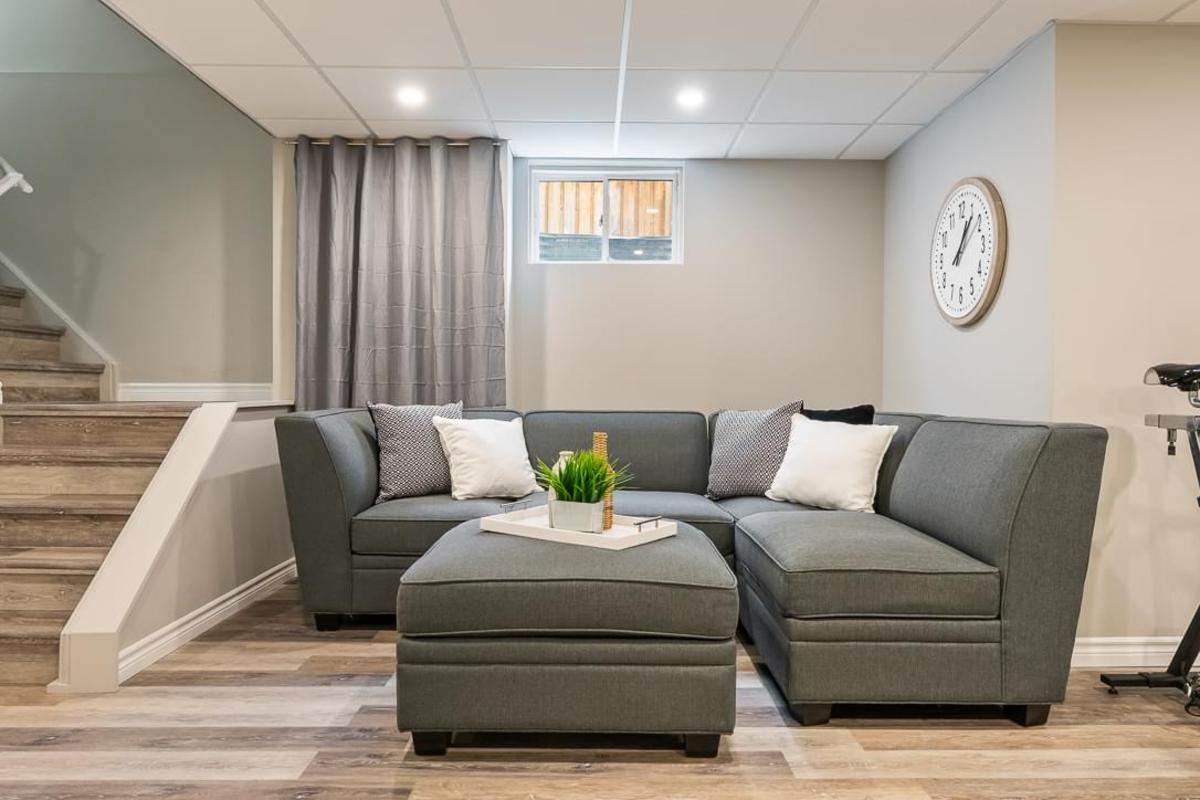 with spacious bedrooms, four full bathrooms, and a finished basement offering flexible living space. The double-wide driveway-with no