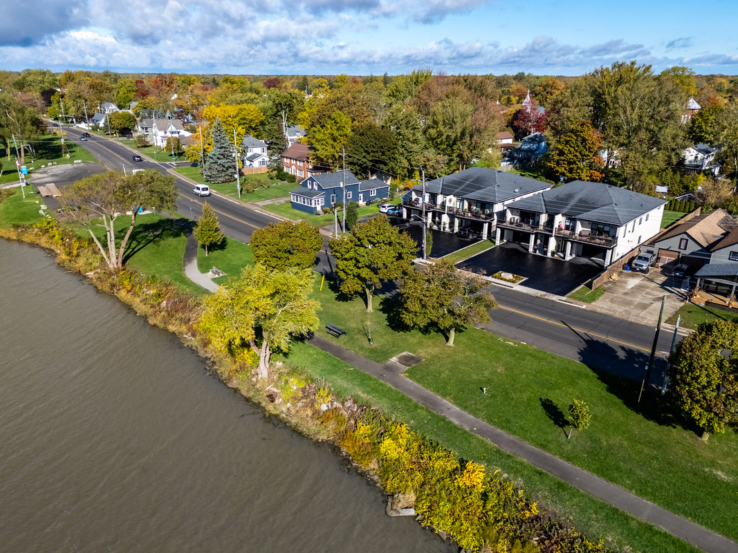 Stunning 2,126 sq ft semi across from Grand River park. Features elevator, open living, luxury kitchen, river-view balcony, spa ensuite, and heated garage/workshop. Modern comfort meets scenic living!