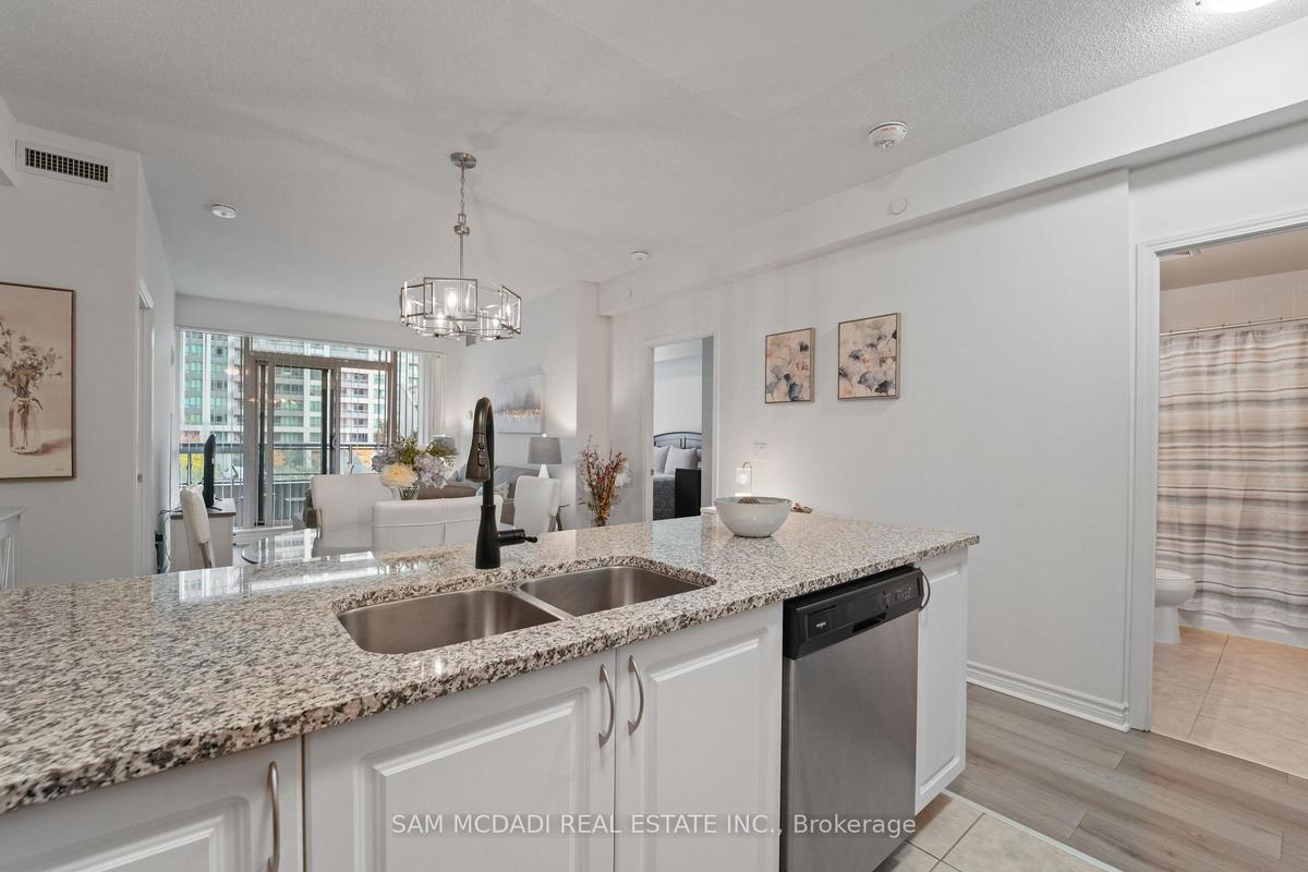 Welcome to this bright and spacious 2 bedroom, 2 bathroom condo in the heart of Mississauga! With 841 sq.ft. of living space, 9-foot ceilings, and laminate flooring throughout, this home feels open and inviting. The large living room flows seamlessly to a walk-out balcony, perfect for morning coffee or evening relaxation.The modern kitchen is a standout, featuring granite countertops, a large granite island, stainless steel appliances, and upgraded lighting - ideal for cooking, entertaining, or gathering with friends. The primary bedroom offers a 4-piece ensuite and a walk-in closet, while the second bedroom is bright and generously sized. The unit also includes underground parking and a locker for extra convenience.The building is packed with amenities to suit every lifestyle: indoor pool, sauna, hot tub, Jacuzzi, gym, aerobics room, tennis courts, bowling alley, movie theatre, games room, conference room, party room with kitchen, guest suites, and a beautiful outdoor park and entertainment area. 24-hour security and visitor parking add peace of mind. Located just steps from Square One, the GO Terminal, Sheridan College, restaurants, and more, with easy access to Highways 403 and 401, this condo offers the perfect combination of comfort, convenience, and lifestyle in one of Mississauga's most vibrant communities.