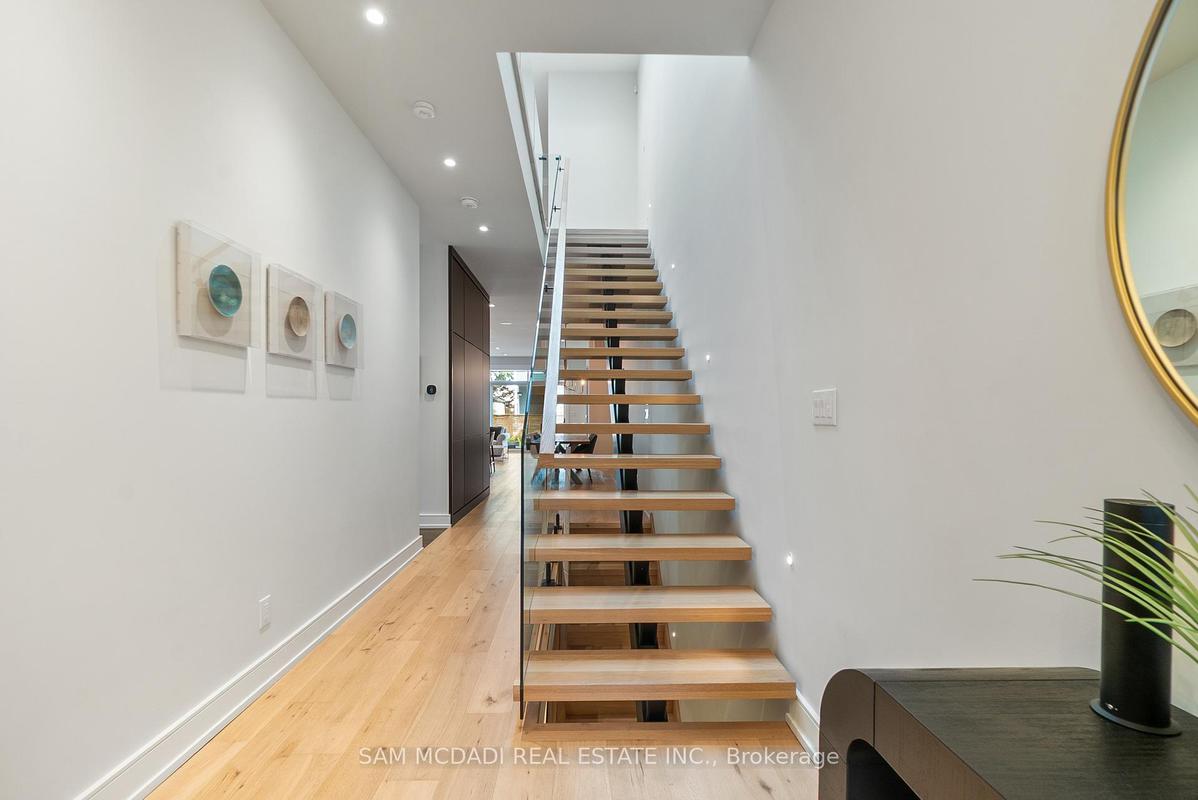 Discover elevated living in this remarkable 3-bedroom, 5-bath semi-detached home, masterfully built by the prestigious Easton Homes and perfectly located in Port Credit. Designed with a focus on comfort and style, this residence offers a seamless blend of modern design and everyday functionality. The inviting main level features bright, open spaces with refined finishes, hardwood flooring, and custom details throughout. The contemporary kitchen stands out with sleek quartz countertops, premium appliances, and an oversized island - a perfect setting for both entertaining and casual family meals. Upstairs, natural sunlight radiates through the multiple hallway skylights and each bedroom comes with its own private ensuite, ensuring personal comfort and convenience. The primary suite is a true sanctuary, complete with a spa-inspired bathroom and an elegant walk-through closet that adds a touch of indulgence to daily living. The finished basement enhances the home's versatility, featuring a stylish bar area, a dedicated gym, and plenty of room for recreation or relaxation. Outside, the landscaped fully fenced backyard provides a private retreat, ideal for summer gatherings or quiet evenings outdoors. Situated in the heart of Port Credit, this home places you moments away from the GO station, top-tier schools, scenic parks, vibrant dining, and the waterfront. Offering both sophistication and practicality, it's the perfect place to experience luxurious living in one of Mississauga's most desirable neighbourhoods.