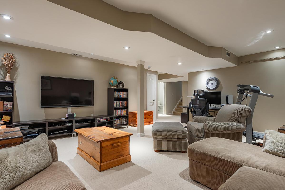 Superb lower level with legit 5th bedroom, beautiful 3 piece bath, sauna room and cozy rec room.