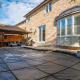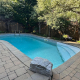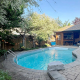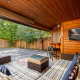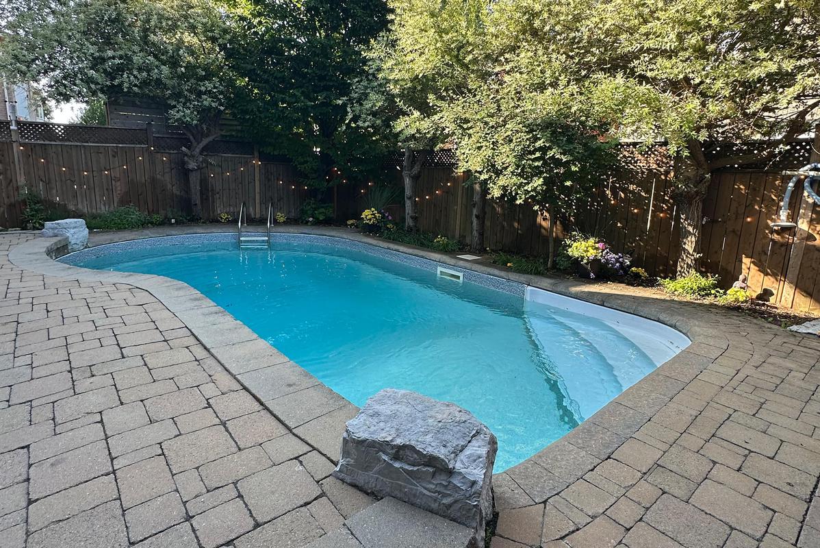 Awesome low maintenance backyard totally hardscaped, Pioneer in-ground saltwater pool, nice privacy, great custom built cedar cabana and covered area. Western exposure.