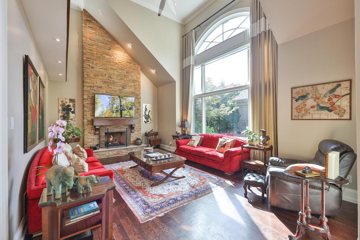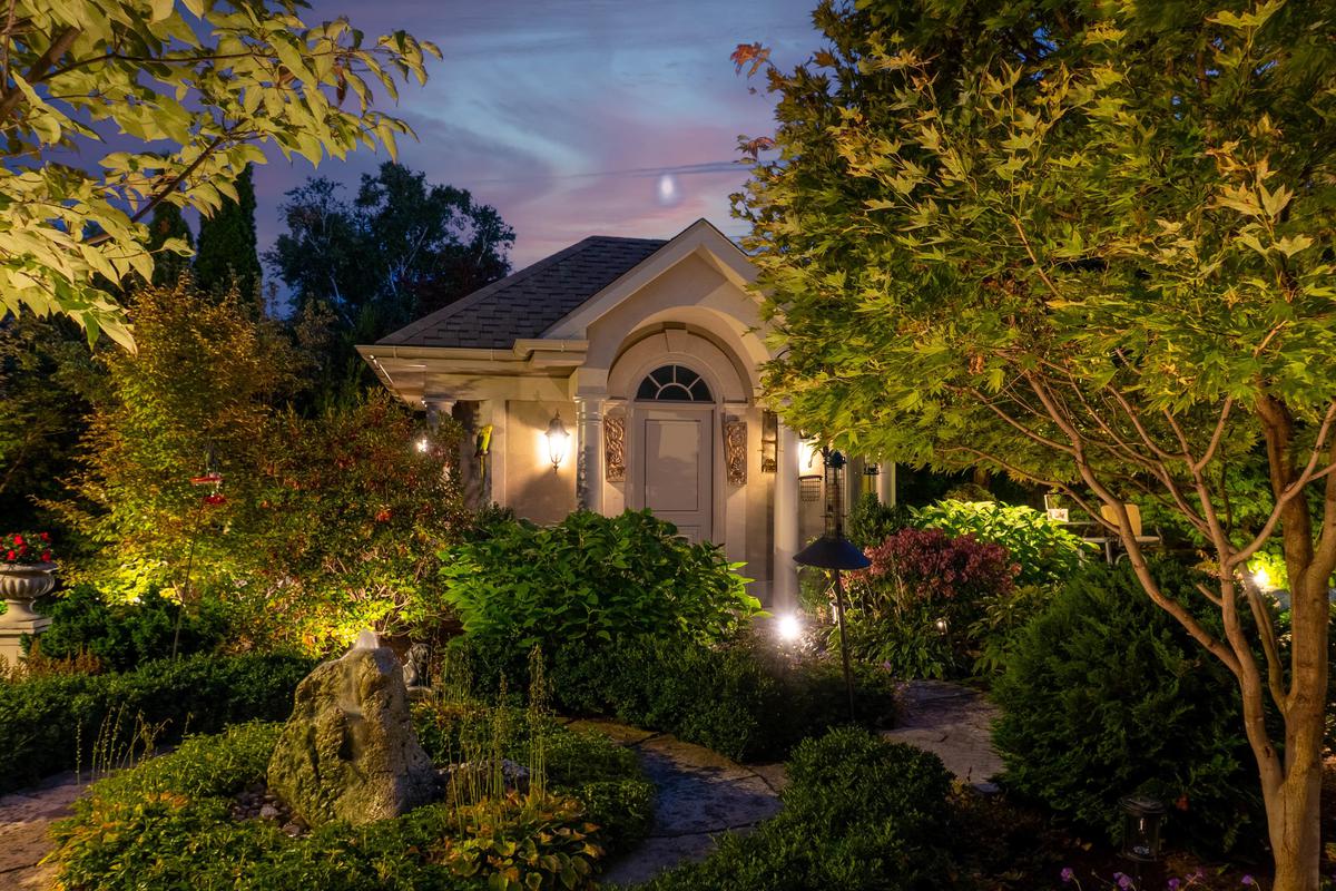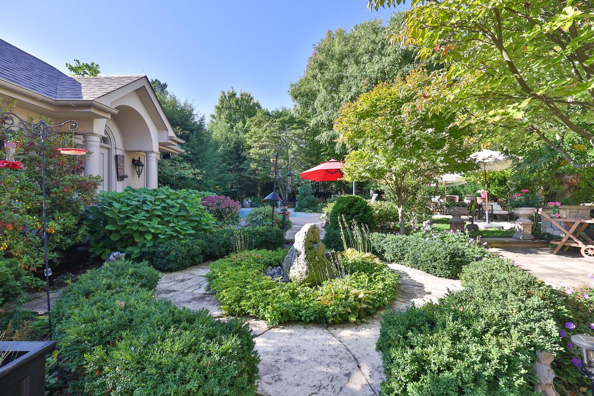 Set on a breathtaking 70'x209' private lot in Burlington's prestigious Roseland community, this stately stone and stucco home offers over 5,850 sq ft of finely curated living space across three levels. Showcasing timeless elegance and old-world craftsmanship, this home impresses with custom millwork, plaster crown mouldings, custom built-ins and rich hardwood, limestone and porcelain floors. Step into a grand foyer that leads to elegant formal dining and living rooms with a gas fireplace then discover the heart of the home: a chef's dream kitchen featuring a sprawling island, top-of-the-line appliances, walk-in pantry, sunlit breakfast area with a walk out to the stunning gardens. Adjoining the kitchen is the great room with a two-storey ceiling, gas fireplace and a wall of windows framing your own backyard paradise. The main level also features a home office, stylish powder room and custom mudroom with access to an oversized double garage with epoxy floors. Upstairs, unwind in your primary retreat with vaulted ceilings, sunlit walk-in closet and luxurious 4-piece spa-inspired ensuite with steam shower. A loft-style library with built-in bookcases overlooks the great room and three more spacious bedrooms include a private guest suite, a shared 4-piece bath and convenient upper-level laundry. The lower level features a home theatre room, hobby room, second laundry, fitness studio with beverage centre and 3-piece bath and storage. Outside, the resort-style backyard is an entertainer's dream featuring a 20'x40' saltwater gunite pool ('19), stucco pool house ('15) with kitchenette, change room and garden storage, a pergola-covered stone patio ('19) with gas fireplace, dramatic landscape lighting and tranquil stone water feature, surrounded by stunning, lush, mature gardens. Just steps to top schools, parks, downtown and the lake, this distinguished home with its meticulous attention to detail exudes warmth and comfort and will appeal to the most discerning buyer.