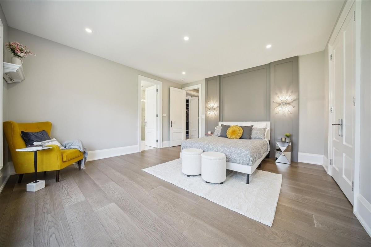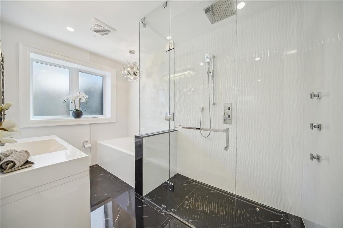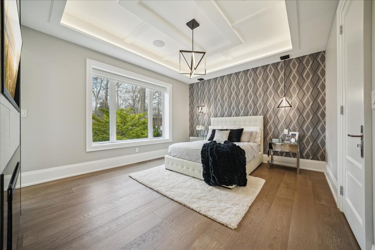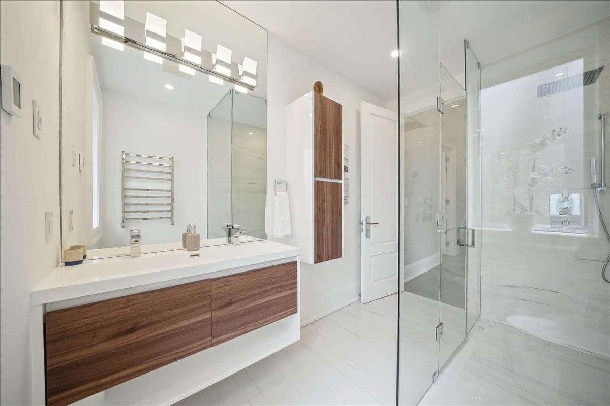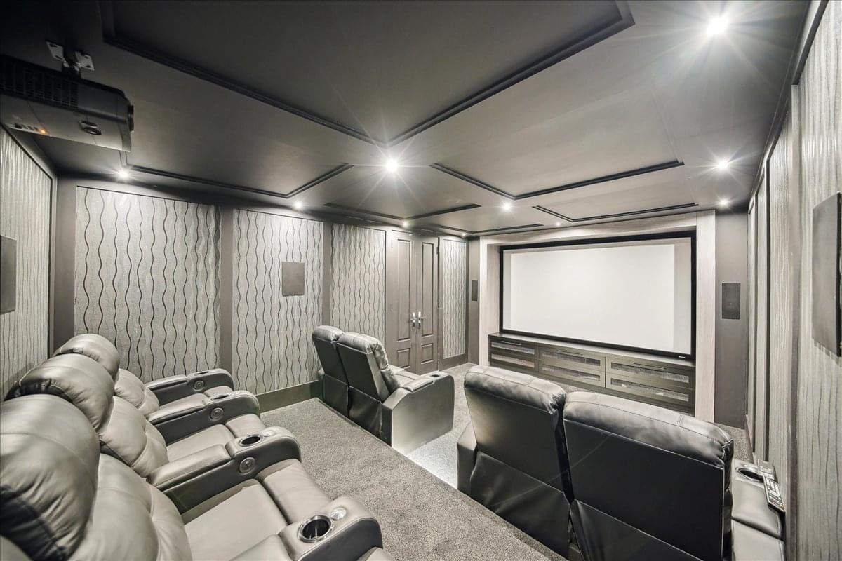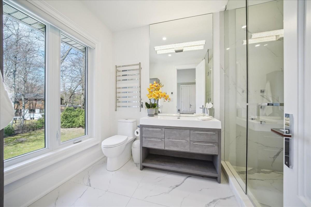 Nestled at the end of a quiet court in Lorne Parks prestigious White Oaks of Jalna, this custom 2021 five-bedroom home sits on a private pie-shaped 14,000+ sq ft lot enveloped by towering mature trees offering a Muskoka-like escape in the city. This ultra-modern residence blends elegance, warmth and high-end functionality, ideal for family living and entertaining. A grand façade and a stately double-door entry set the tone. Inside, a dramatic two-story foyer with a striking chandelier leads to a meticulously designed open-plan main floor. The chefs kitchen boasts custom cabinetry, a show stopping honed porcelain island and luxe Thermador appliances, including built-in wine cooler and coffee bar. A sun-filled dining area opens to the serene backyard, while the living room features a tray ceiling, a fireplace and modern built-ins. A few steps down, a family room showcases a 150-bottle temperature-controlled wine wall, a fireplace and access to a versatile rec room/office with side entrance. Upstairs, five generous bedrooms boast soaring ceilings and large windows. The oversized primary suite offers a steam fireplace, a custom walk-in closet with a center island and an oversized six-piece spa-like ensuite with rain shower, sauna and soaker tub overlooking the backyard. The entertainers basement boasts a wet bar, waterfall island, multi-TV wall and eight-seat home theatre. No detail is overlooked with upgrades like motorized shades, heated flooring, custom cabinetry, Control4 home automation, security system and surround sound. The remarkably private west-facing backyard spans 150 ft across the rear, and features a hot tub, cedar-lined multi-level deck with glass railings, Wi-Fi speakers, gas BBQ hookup, and ample space for a pool or play area. Ideally located near top schools, parks, shops and fine dining, with easy access to GO Transit and the QEW this home delivers the perfect blend of peaceful luxury and urban connectivity, just 30 minutes from downtown Toronto. (41247570)