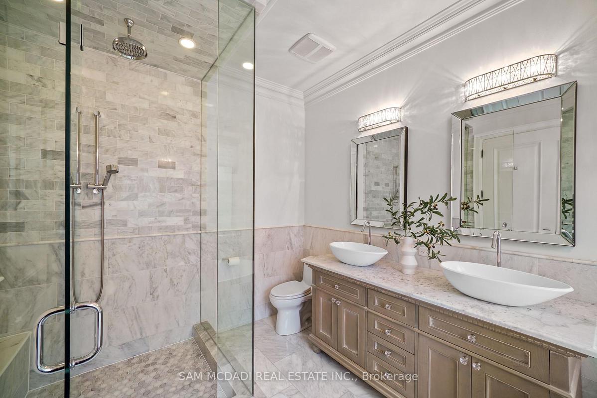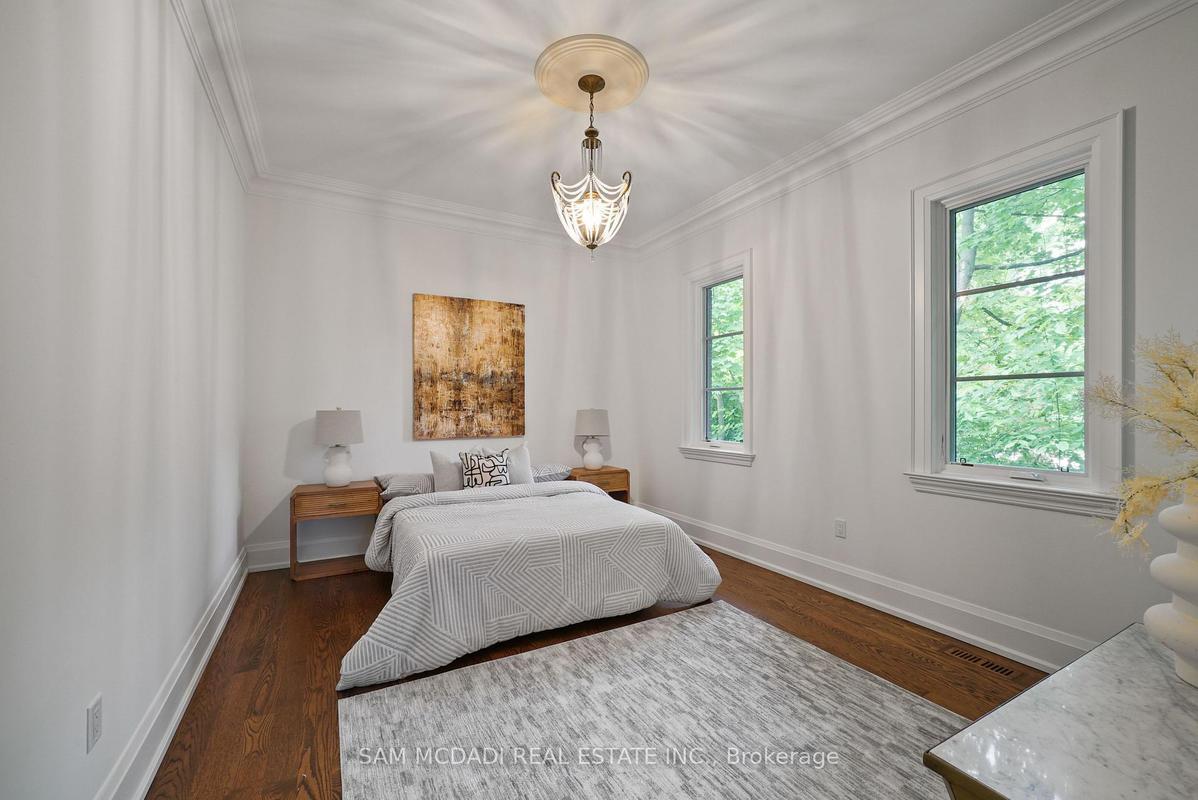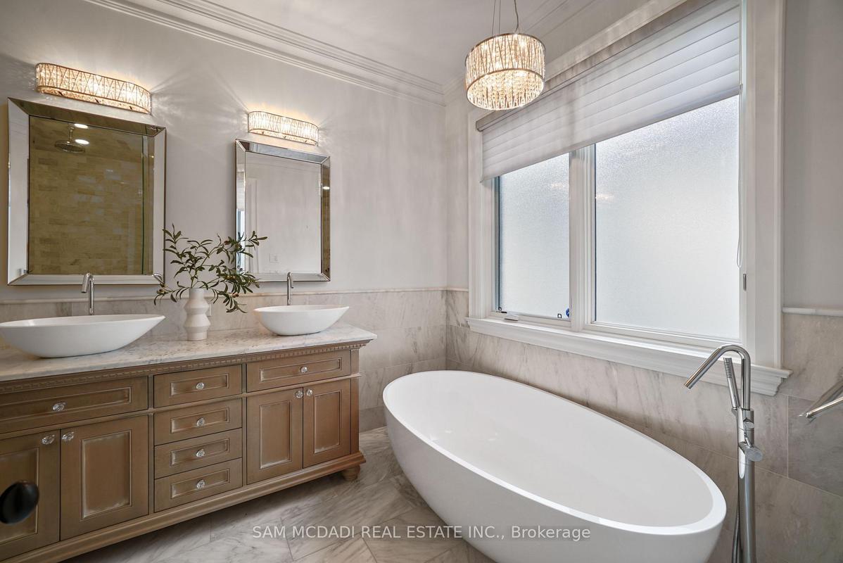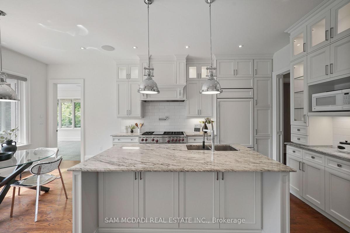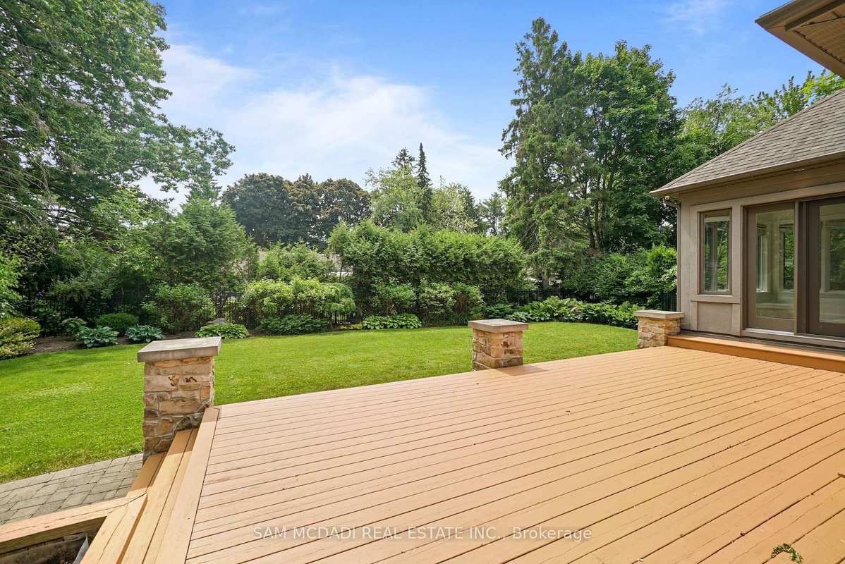 Welcome to this truly spectacular Mineola home. A true masterpiece nestled on a sprawling 90x150 ft lot on the highly desirable Maplewood Rd. An extraordinary commitment to craftsmanship and attention to detail, this residence offers 4,405 sqft of above-grade refined living space. Step through the gorgeous Mahogany entrance door and be immediately captivated by the breathtaking barrel vaulted foyer, adorned with exquisite plaster moulding. The main floor exudes elegance and functionality, featuring a beautiful family room with a stunning built-in gas fireplace, creating a warm and inviting atmosphere. Culinary enthusiasts will be delighted by the breathtaking eat-in kitchen, complemented by an adjacent butler's kitchen, perfect for entertaining. For seamless indoor-outdoor living, a bright, fully enclosed sunroom off the kitchen provides an ideal space for entertainment and leisure.The luxurious main floor primary bedroom suite is a private oasis, boasting a large walk-in closet with organizers and a lavish 5-piece spa-like ensuite, designed for ultimate relaxation. An additional bedroom and dedicated office space on the main floor offer exceptional convenience and versatility. Ascend to the second floor, where you'll find four generously sized bedrooms and two well-appointed bathrooms, providing ample space for family and guests. The finished lower level is an entertainer's paradise, featuring above-grade windows that flood the space with natural light. Enjoy a round of mini-golf, challenge friends to a game of billiards, or gather around the sleek wet bar, this basement is designed for endless fun and recreation, easily walk-up to the private backyard oasis. This must-see property is ideally located close to top-rated schools, lush parks, quick access to major highways, the Go-Train, and the vibrant Village of Port Credit, with its array of renowned restaurants and boutique shopping. Experience the pinnacle of luxury living in Mineola.