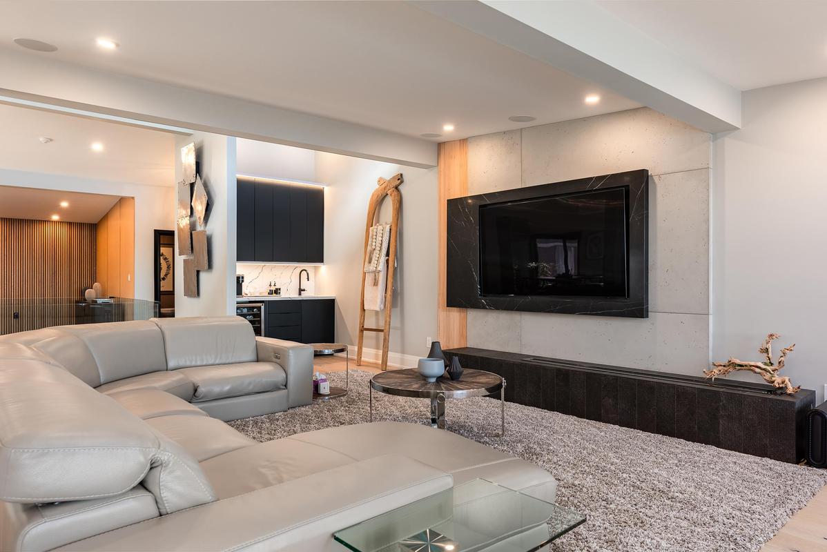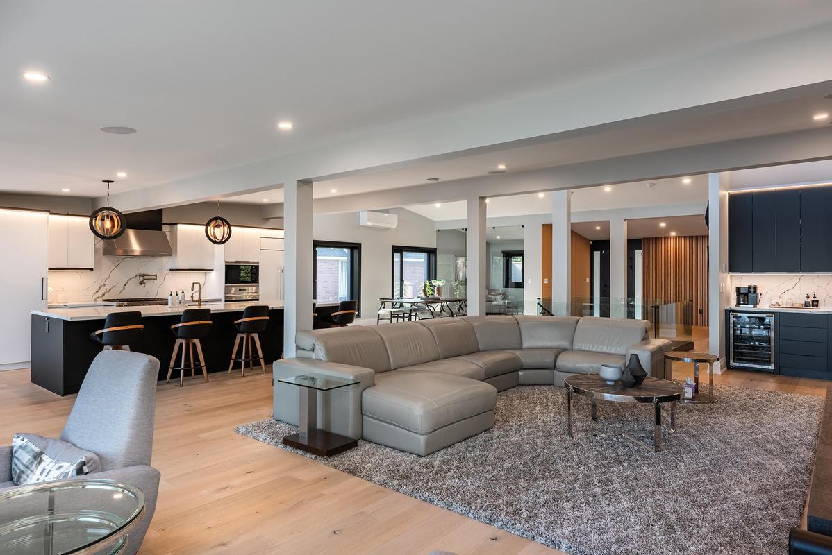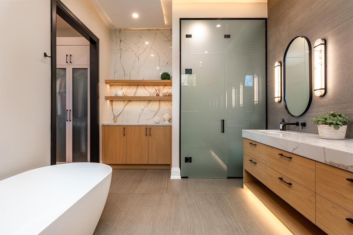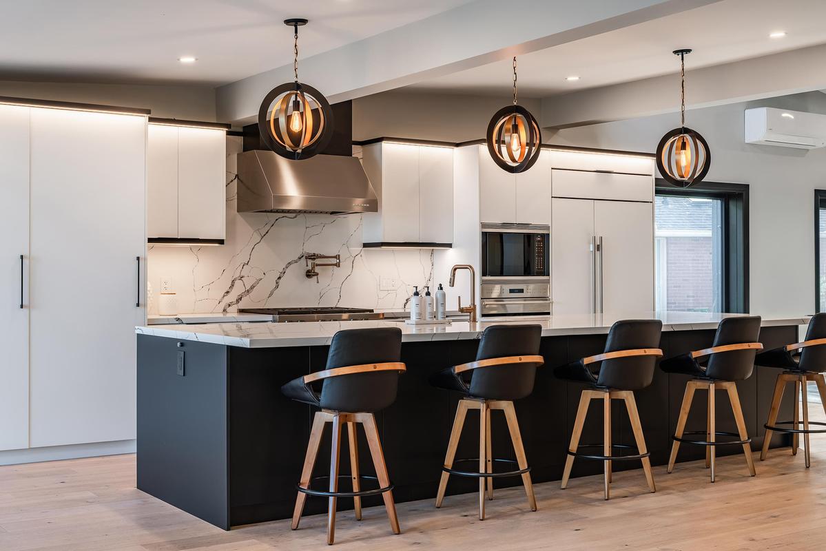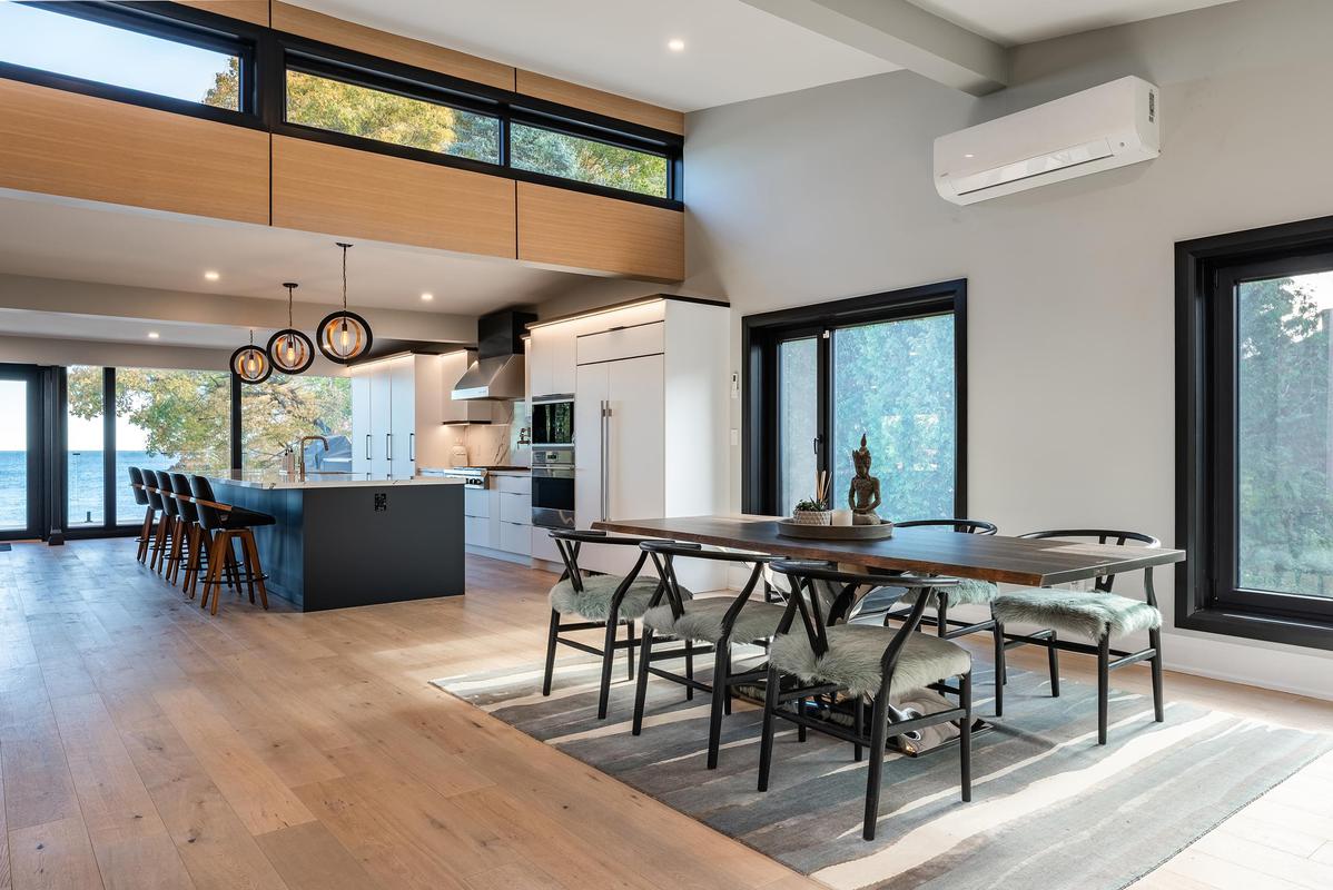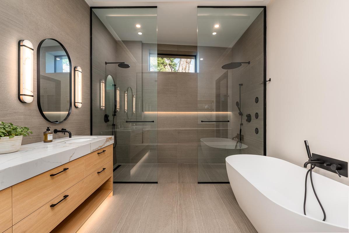 Natural serenity meets modern design at 121 Edgecliffe Place. Set on a rare 29,000 sq. ft. pie-shaped lakefront lot where Appleby Creek meets Lake Ontario, this exceptional property offers 105 feet of direct waterfront and 130 feet along the creek with riparian rights, creating an irreplaceable natural setting in the city. This fully renovated home offers over 5,200 sq. ft. of finished living space with floor-to-ceiling windows that draw the lake and landscape into every room. The open-concept main level features 12-foot peaked ceilings, engineered light hardwood, and dark-framed windows that frame panoramic southern views. A chef's kitchen anchors the space with a large island and top-tier appliances, ideal for entertaining. The walkout lower level accommodates four bedrooms, each with its own ensuite and ductless air conditioning unit. The primary suite opens directly to the lakeside deck, featuring a spa-inspired ensuite with dual rain showers and a massive walk-in closet with custom cabinetry. Radiant in-floor heating extends throughout the home for year-round comfort. Multiple outdoor living spaces blur the line between indoors and out. A covered lower deck and expansive upper terrace with built-in BBQ maximize lakefront enjoyment and capture the home's stunning setting. Modern. Peaceful. One of a kind on the water.