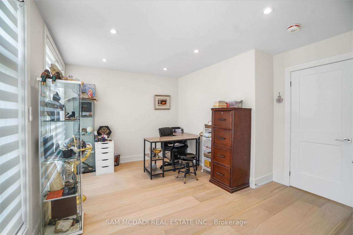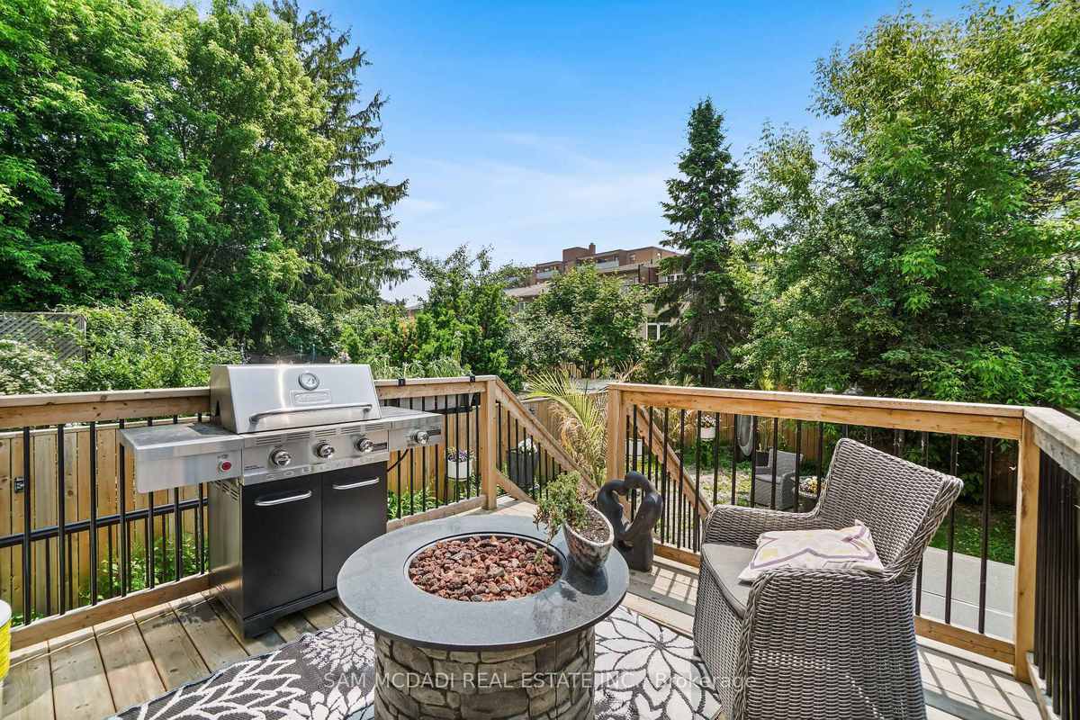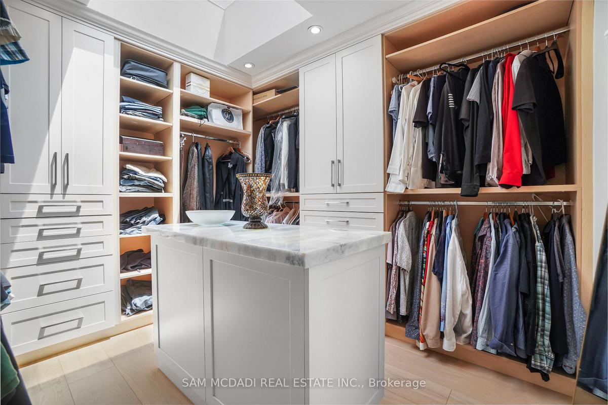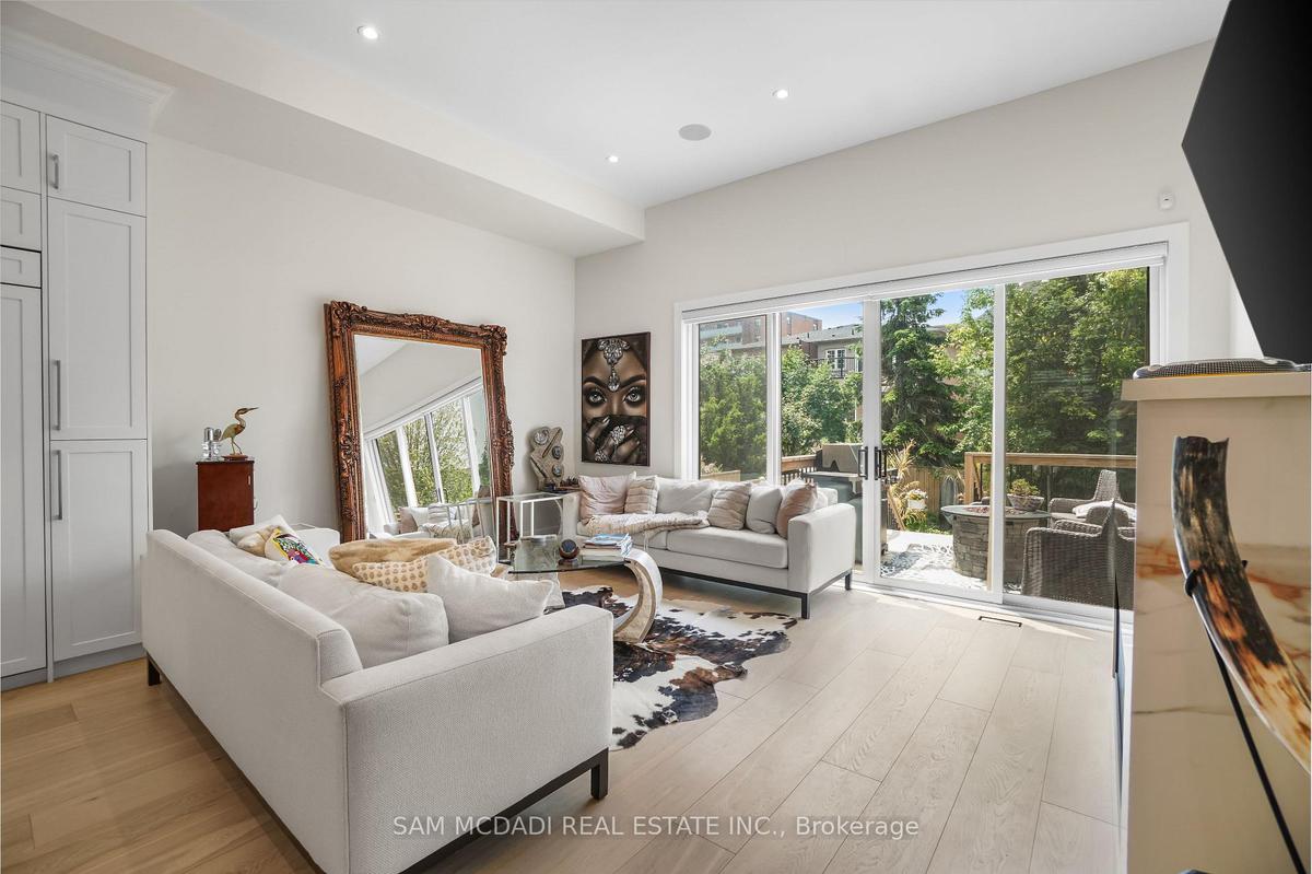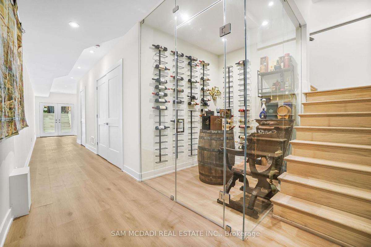Calling all Blue Chip Tenants! Set in one of Mississauga's most sought-after and evolving neighbourhoods, 1036 Enola Avenue isn't just a home, it's a daily escape into luxury and modern living. Just minutes from the upcoming Lakeview Village, Port Credit, and Lake Ontario's shoreline, this stunning residence blends sophistication with everyday functionality, offering over 3,600 sq ft of meticulously finished space. With no detail overlooked, this custom showpiece features 11-ft ceilings on the main level, open-tread staircases, and sleek glass railings that create effortless flow and sophistication. At the heart of the home, the chef's kitchen is outfitted with built-in premium appliances, custom hood, and a showstopping illuminated imported marble island. Pot lights, wide-plank flooring, and integrated speakers enhance the modern aesthetic. The adjoining living area is anchored by a sleek gas fireplace and full-length windows framing tranquil, green views. The spa-inspired primary suite offers a sculptural soaking tub, dual rainfall shower towers, and a custom walk-in closet. Additional bedrooms are generously sized with designer finishes, and a skylight above the upper hallway floods the space with natural light. The fully finished lower level elevates the living experience with a glass-enclosed wine cellar, private sauna, and a separate walk-up entrance, ideal for extended family or a home office. A modern bathroom with double vessel sinks completes the space. Each level features built-in iPad screens connected to the door camera system for secure, voice-enabled entry, while integrated speakers throughout the home are powered by a premium Onkyo audio system perfect for immersive, whole-home sound. Outside, a fenced yard and deck create a private setting for summer entertaining. Just steps from lakefront parks, golf, top-tier schools, and with easy access to the QEW, Highway 403, and the GO Station, this is luxury living in Lakeview at its finest.
