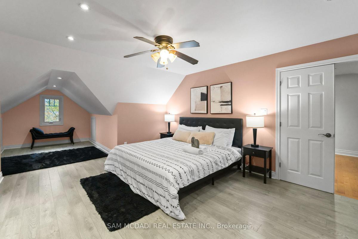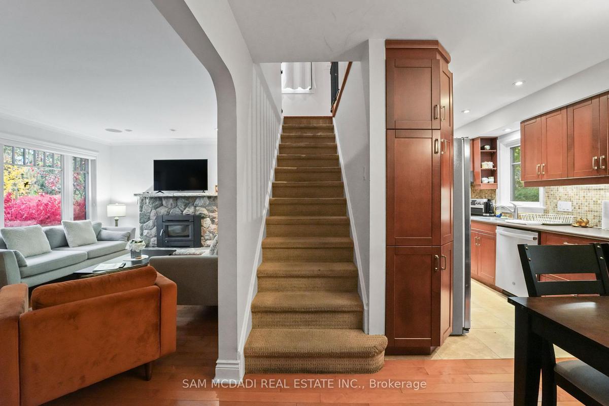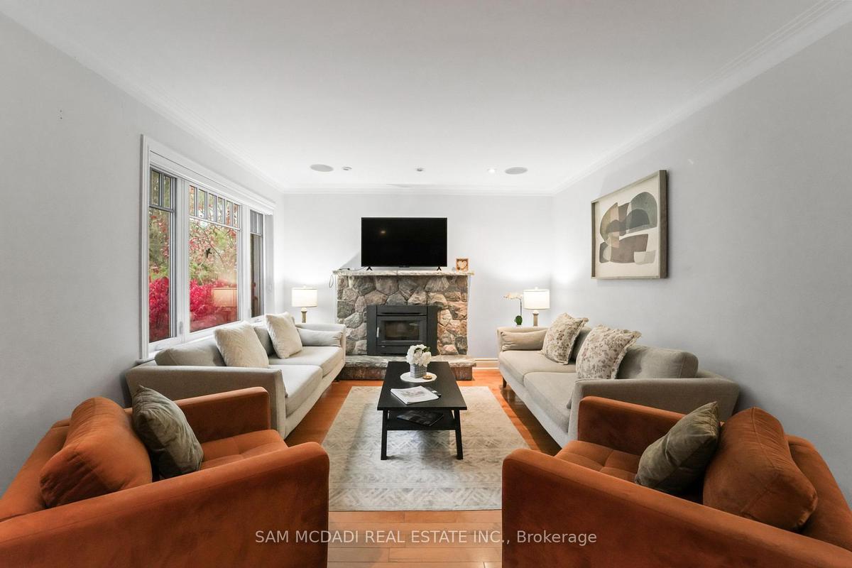 Beautifully updated detached home in the heart of Port Credit. This spacious 3+1 bedroom, 3-bath home features an open-concept main floor with hardwood floors, large windows, and a cozy fireplace. The modern kitchen offers stainless steel appliances, pot lights, and a walkout to a deck overlooking a fenced backyard. The primary bedroom includes a 4-piece ensuite and walk-in closet. Finished lower level with separate entrance, recreation room with gas fireplace, and additional bedroom. Detached 2-car garage with private driveway and parking for up to 8 cars. Close to schools, parks, transit, and Lake Ontario.