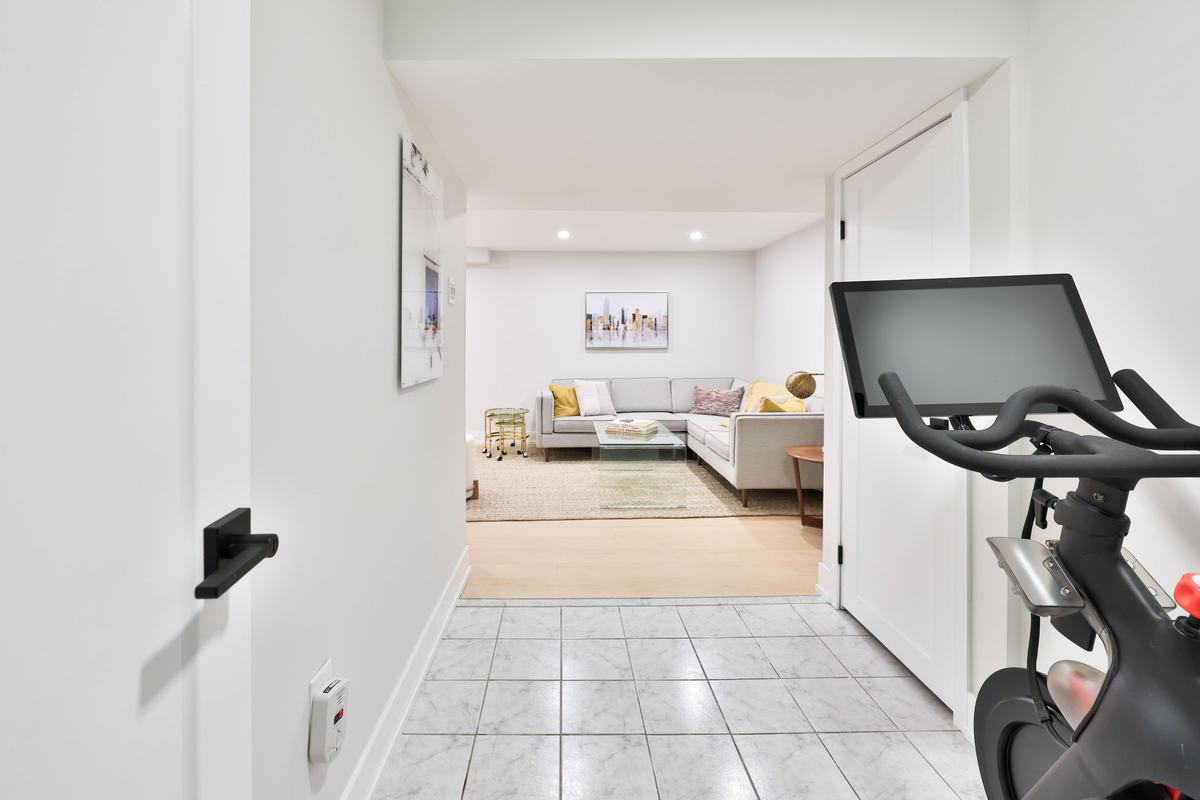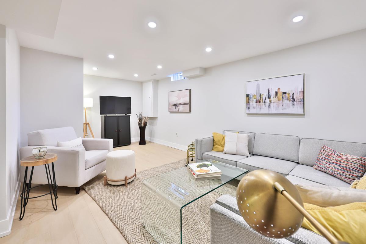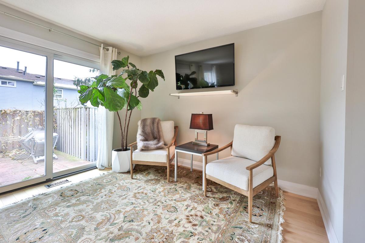 Welcome to this beautifully renovated and thoroughly updated 3-bedroom, 2-bath townhouse set in the heart of the vibrant community of Port Credit. Enjoy stylish finishes and modern appointments in the bright, open-concept main level which offers an inviting layout, highlighted by a stunning custom kitchen (2022) featuring bespoke cabinetry, under-cabinet lighting, quartz countertops, a zellige tile backsplash, island seating, stylish wood accents, and newer appliances including a 2023 fridge and microwave. Fresh paint, LED pot lights, new maple hardwood flooring, porcelain tile in the entry, and all-new doors and trim create a seamless modern feel. The spacious living area opens to a private rear garden, perfect for relaxing or entertaining, and is complemented by an adjoining dining area. A new exterior entry door adds a fresh, contemporary touch to the home's façade. Upstairs, the home offers three generous bedrooms with hardwood flooring throughout and ample closet space. The fully renovated (2019) 4-piece main bath exudes elegance with marble tile flooring, pot lights, porcelain wall tile, a quartz-topped vanity, and a Toto toilet. The fully renovated (2025) lower level provides exceptional versatility with a spacious rec room ideal as an additional living area or potential bedroom. This level showcases vinyl plank stairs and flooring, new trim and baseboards, LED pot lights, and fresh paint. Completing the space is a beautifully renovated (2019) 3-piece bath offering an oversized glass framed shower, basketweave tile flooring, pot lights, custom vanity, and a Toto toilet. The utility room features a newer furnace & A/C (2021), laundry area, ample storage and convenient separate entrance from the garage. Just minutes from Port Credit village, the GO Train, major highways, top-rated schools, parks, Lake Ontario, and the waterfront trail, this home perfectly blends modern luxury with everyday convenience. Don't miss this exceptional opportunity.