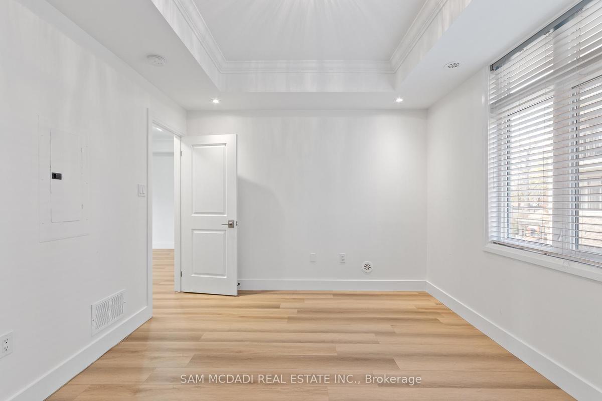 Luxury executive townhome, fully renovated and ideally located in the highly desirable Cawthra & Dundas pocket of Applewood. Renovated with top-quality materials and fine craftsmanship, this home offers a stunning gourmet kitchen featuring quartz countertops, stainless steel appliances, pot lights, crown moulding, and a dedicated dining area with a walkout to a private balcony. Spacious rooms, large windows, and abundant natural light fill the unit with a bright and welcoming atmosphere. Relax in the generous primary bedroom complete with a walk-in closet and additional crawl-space storage, paired with a beautifully renovated 4-piece bathroom. No carpet-premium vinyl and ceramic flooring throughout. This rare unit includes two parking spaces (one indoor and one outdoor), plus visitor parking. Perfectly situated steps from shopping, plazas, public transit, schools, community centres, parks, and major highways. This home offers the ideal combination of comfort and convenience. Don't miss the opportunity to make this exceptional property your home!